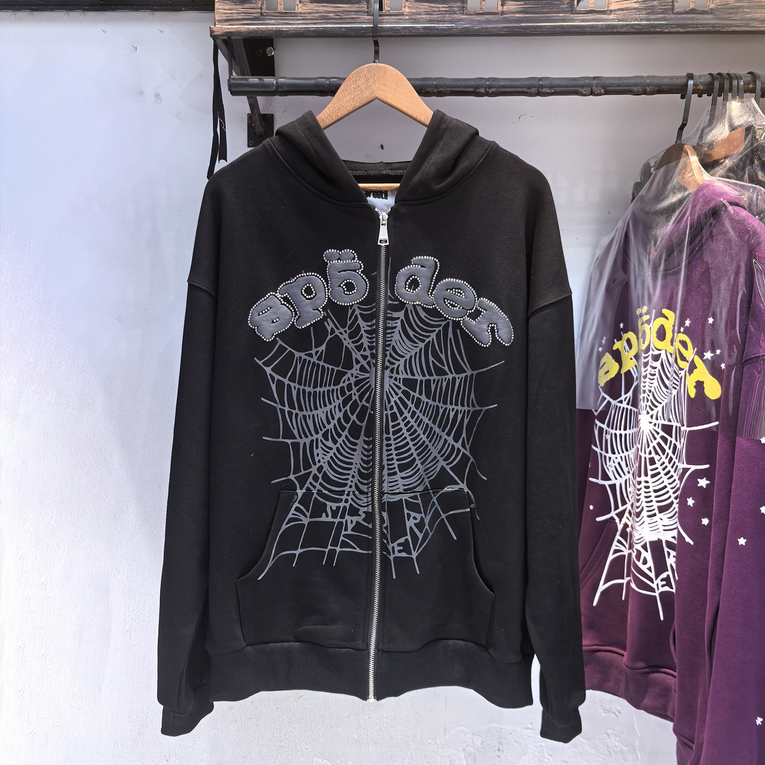 거미줄 프린트 후드티 유럽 및 미국 트렌디 브랜드 오버사이즈 루즈핏 55555 스웨트셔츠스토어 가기