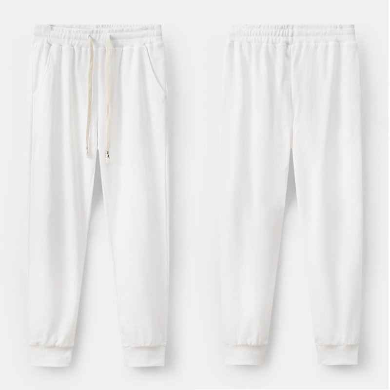 플러스 사이즈 학생 소년 소녀 순수 코튼 화이트 바지 봄과 여름 얇은 청소년 탄성 허리 스포츠 테리 스웨트 팬츠