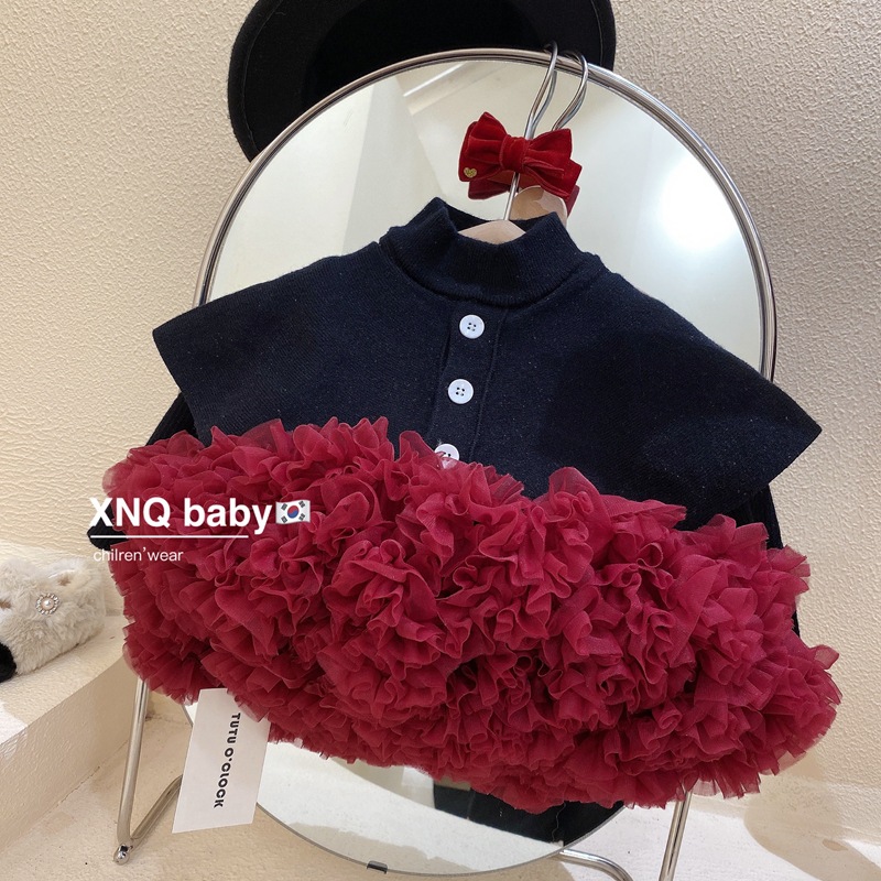 라임 아동복 투투 스커트 소녀의 푹신한 치마 어린이 스커트 세트 스웨터 봄과 가을 소녀의 아기 공주 스커트
