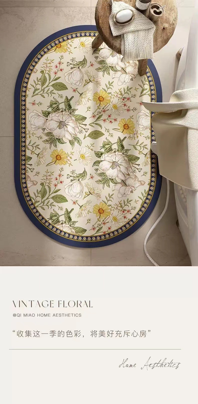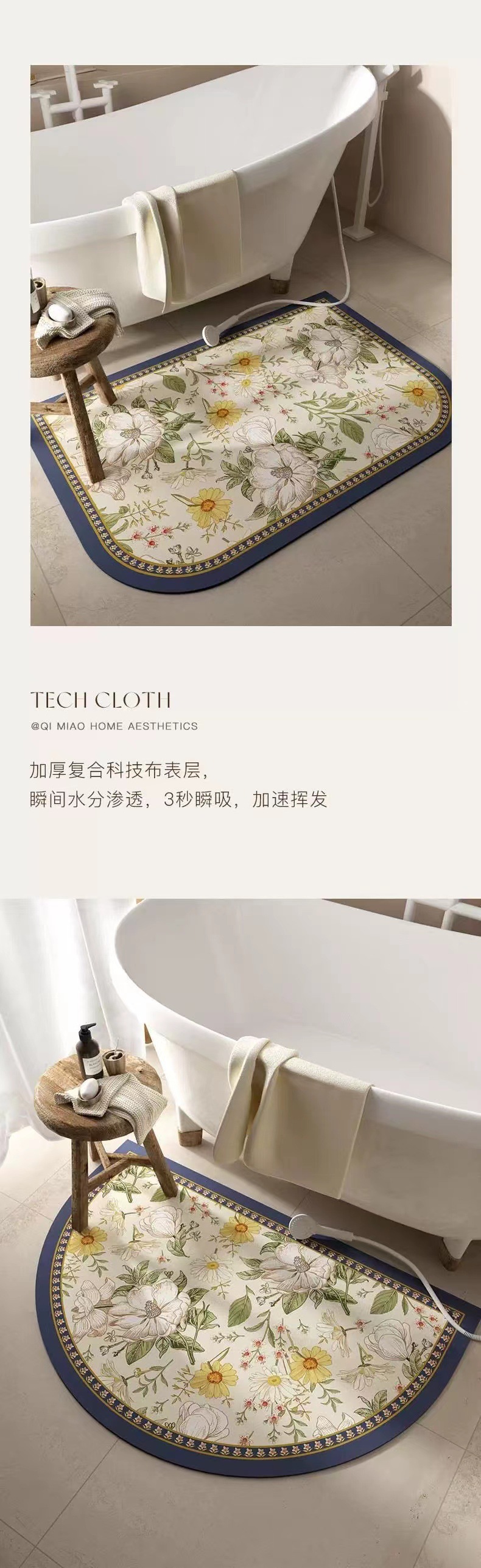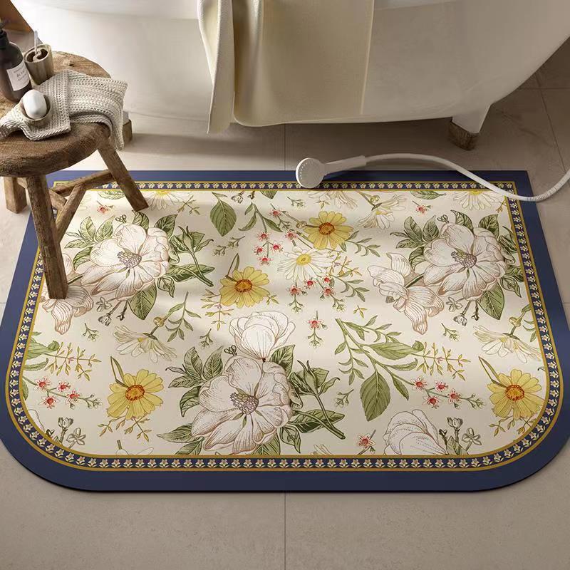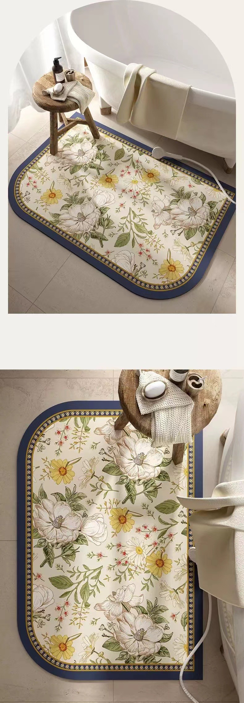 아메리칸 스타일 라이트 럭셔리 꽃 부드러운 규조 진흙 화장실 욕실 흡수성 미끄럼 방지 속건 문 입구 가정용 바닥 매트