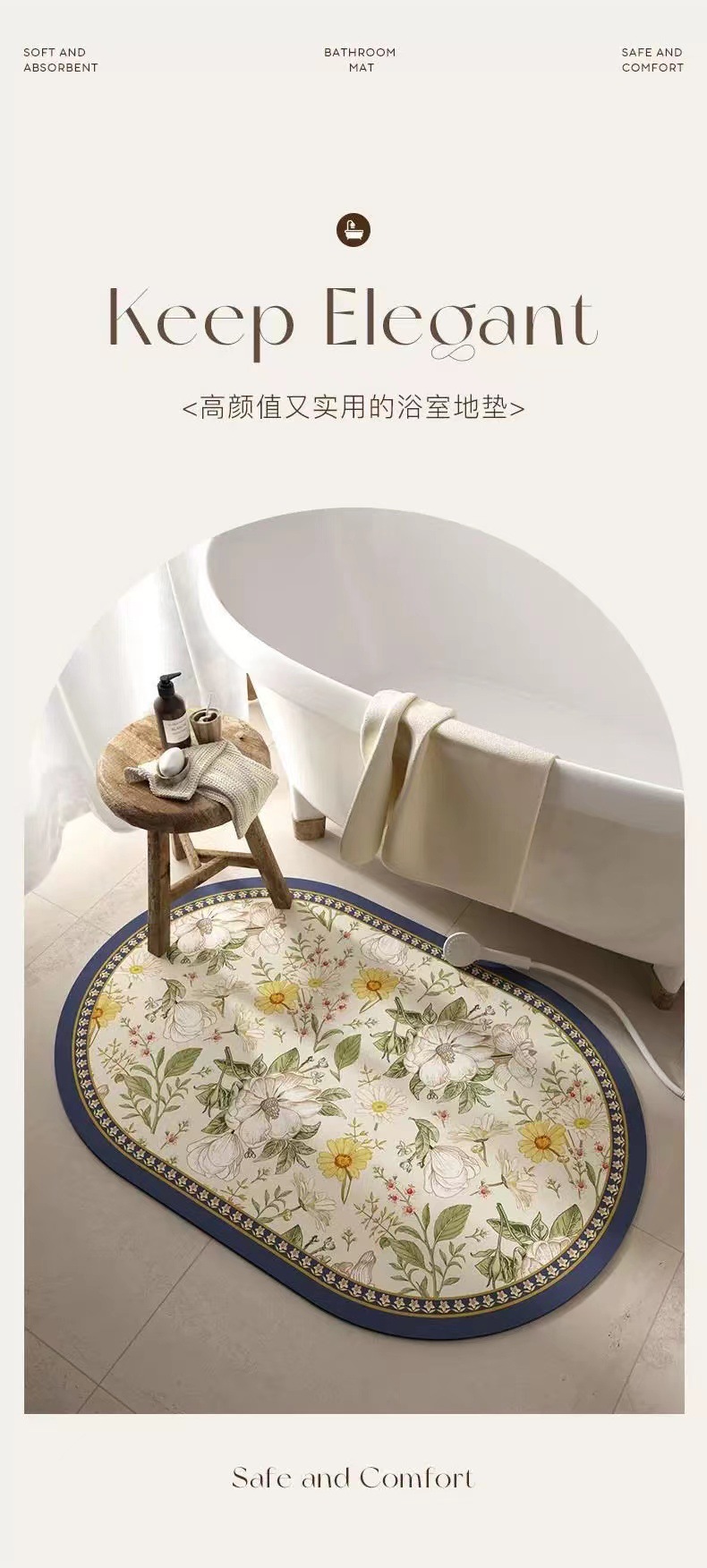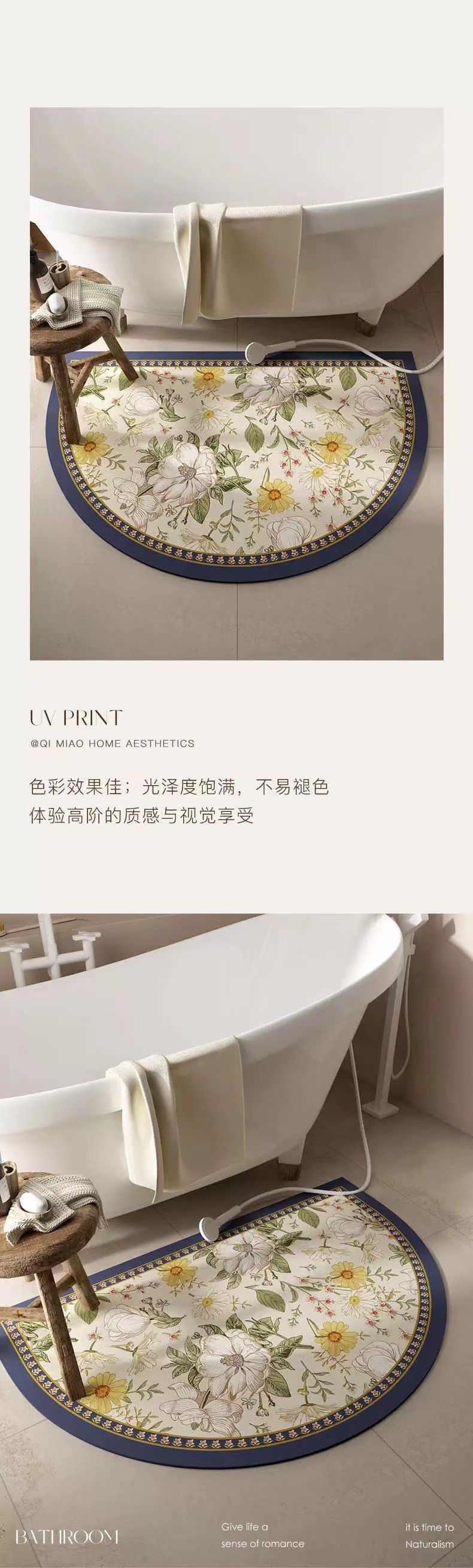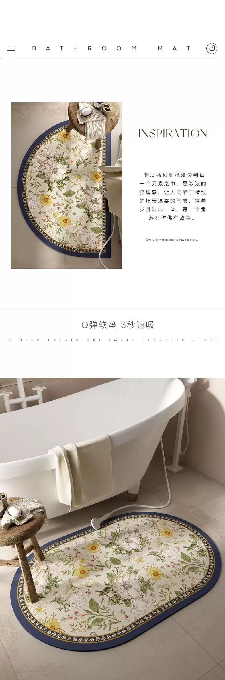 아메리칸 스타일 라이트 럭셔리 꽃 부드러운 규조 진흙 화장실 욕실 흡수성 미끄럼 방지 속건 문 입구 가정용 바닥 매트