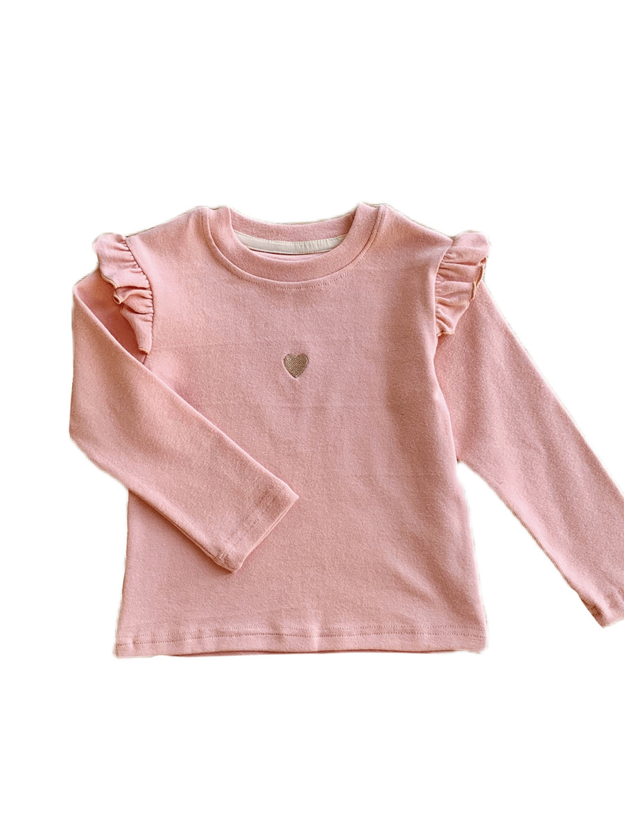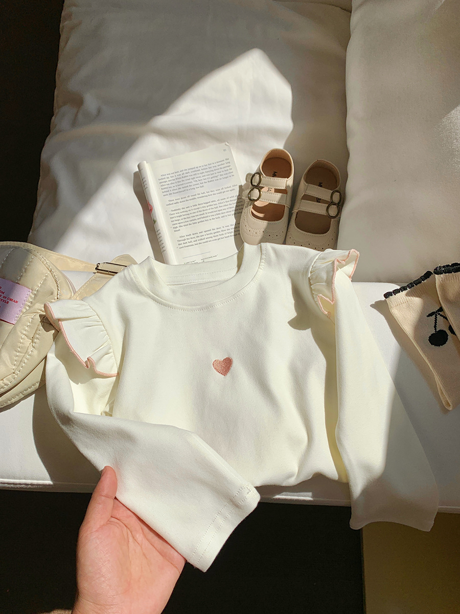 한국 스타일 서양식 소녀 순수 코튼 바닥 셔츠 어린이 사랑 수 놓은 긴팔 티셔츠 아기 바닥 셔츠 가을 탑