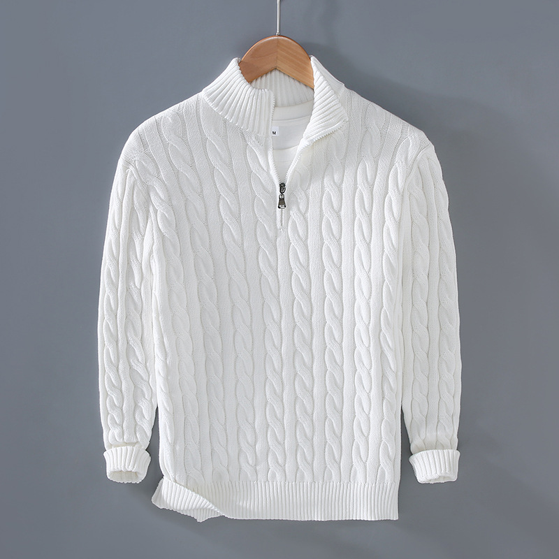 8509 가을과 겨울 새로운 하프 하이 넥 두꺼운 바늘 남성용 스웨터 지퍼 느슨한 풀오버 니트 스웨터 재킷 남성용
