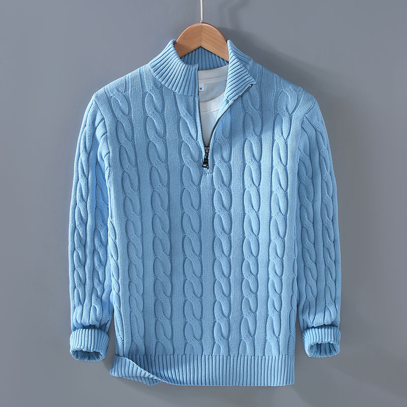 8509 가을과 겨울 새로운 하프 하이 넥 두꺼운 바늘 남성용 스웨터 지퍼 느슨한 풀오버 니트 스웨터 재킷 남성용스토어 가기