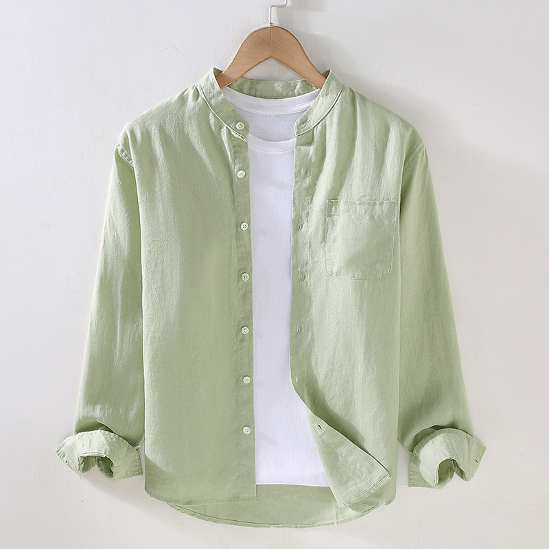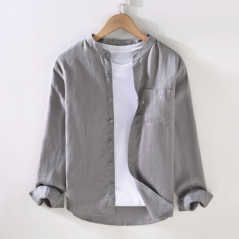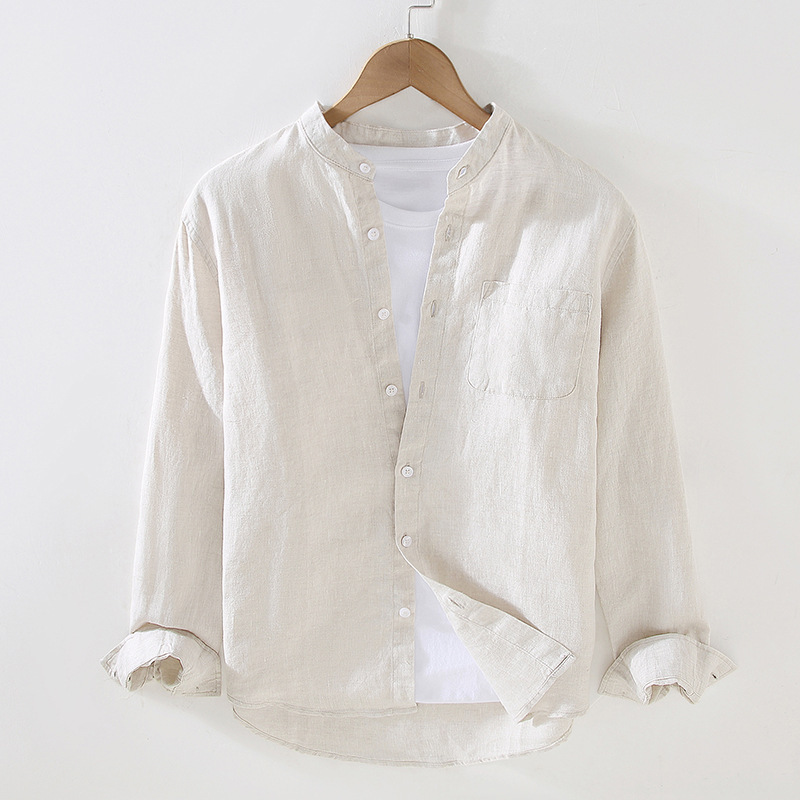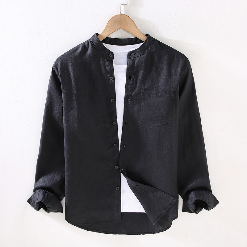 9702 퓨어 린넨 셔츠 남성용 칼라 포켓 느슨한 캐주얼 긴팔 셔츠 중국 스타일 빈티지 코튼 린넨 셔츠스토어 가기
