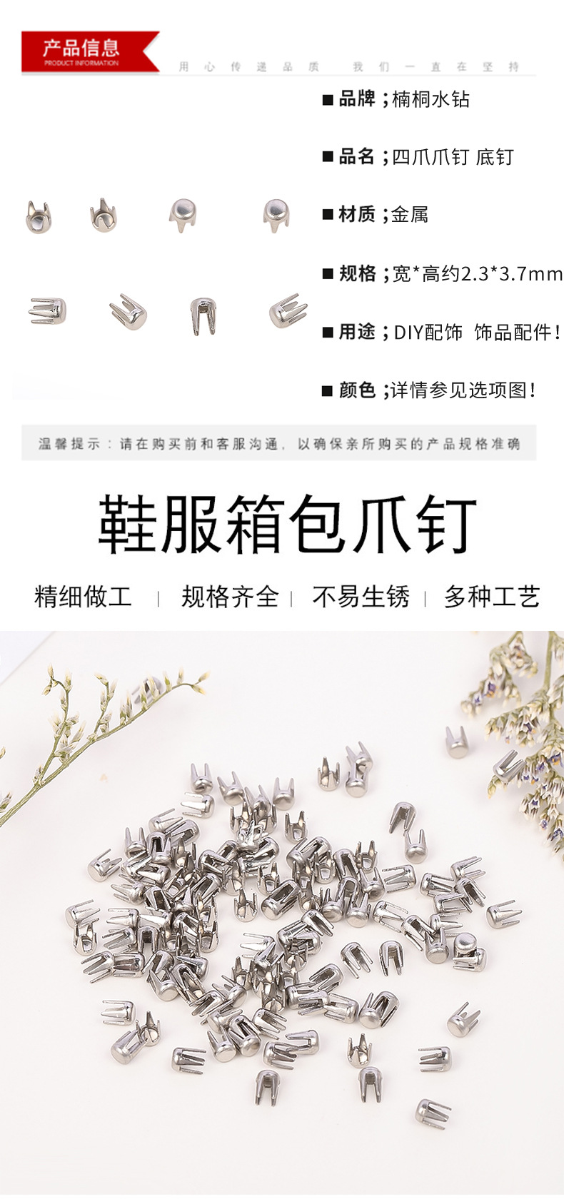 구멍이없는 진주 금속 4 발톱 네일 신발 의류 가방 하단 네일 머신 액세서리 라운드 헤드 표준 DIY 액세서리스토어 가기