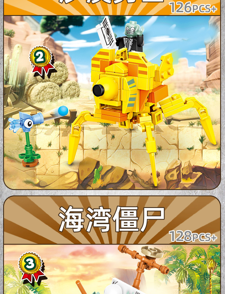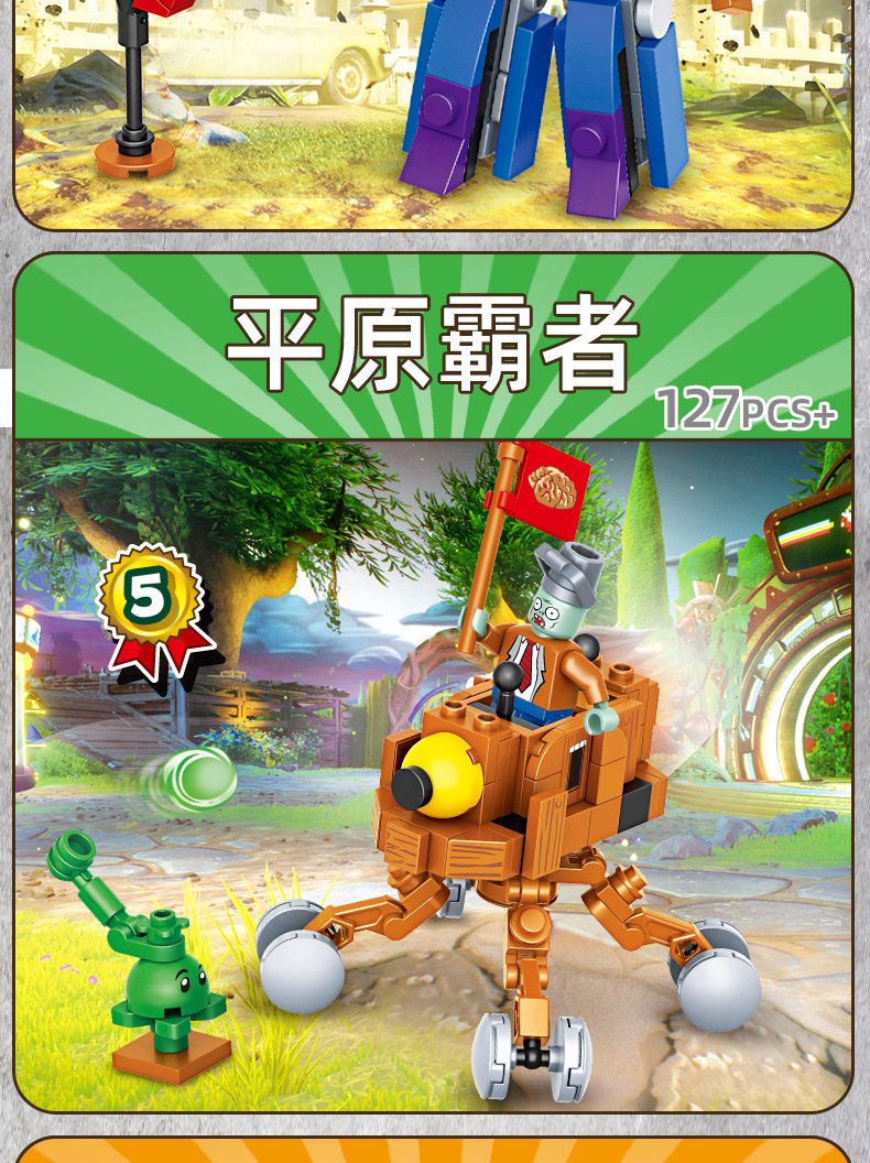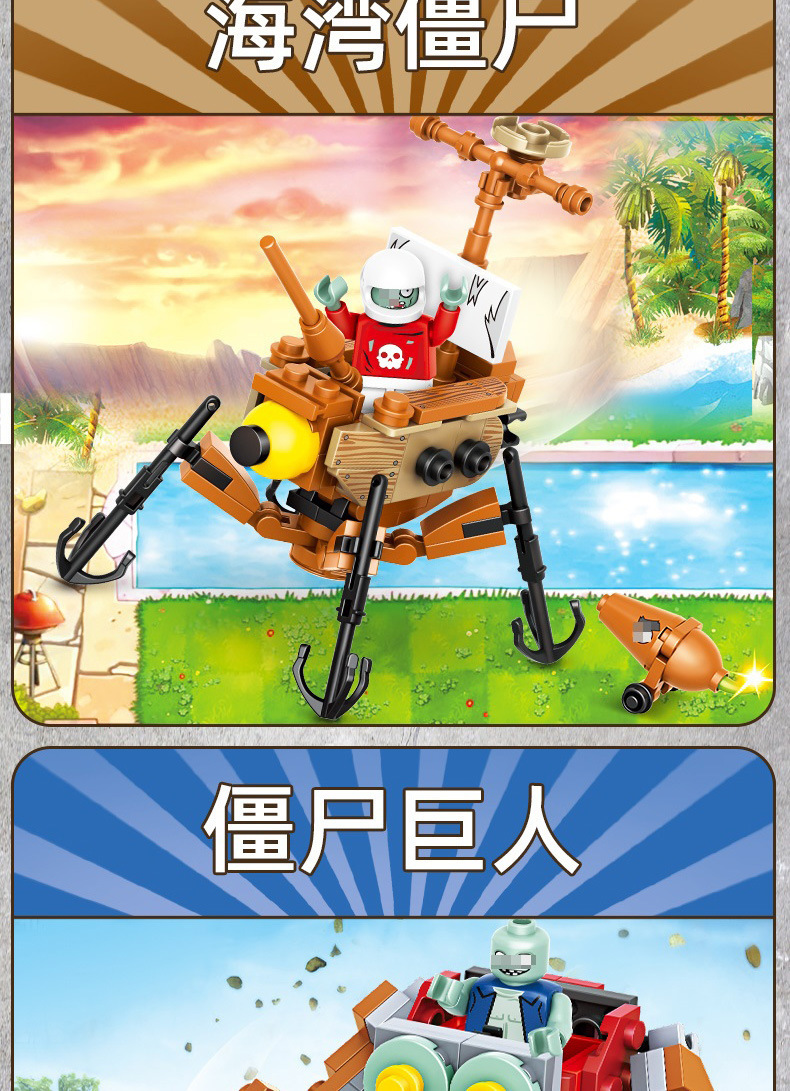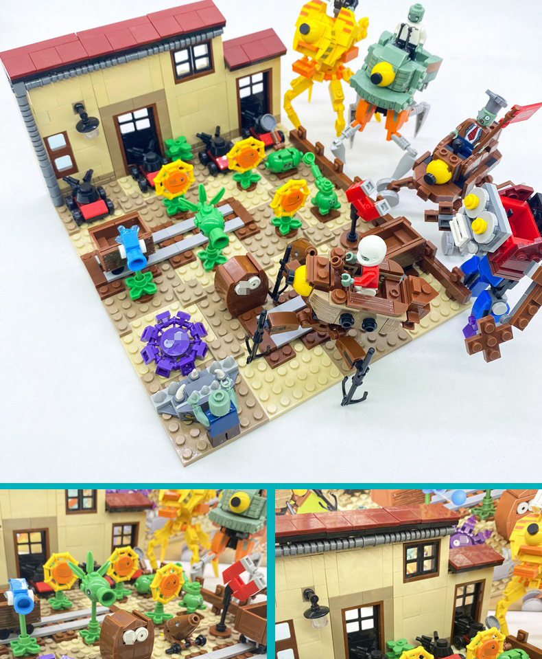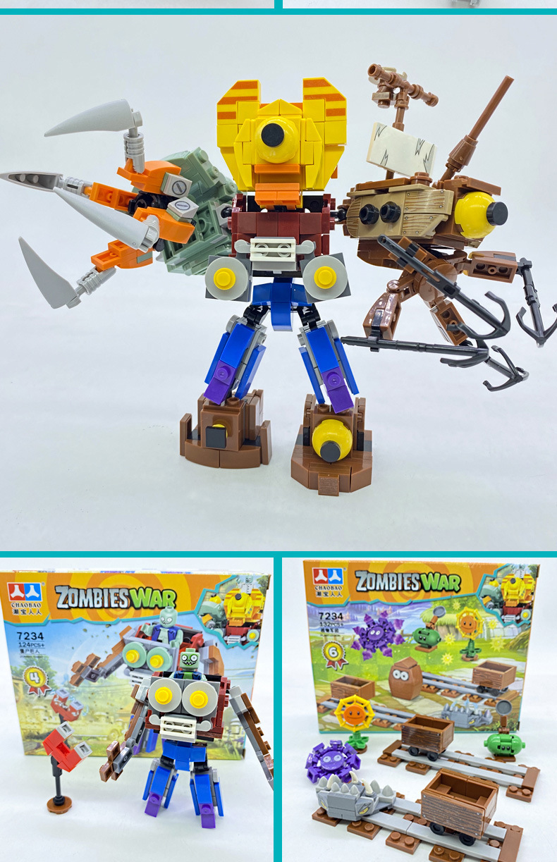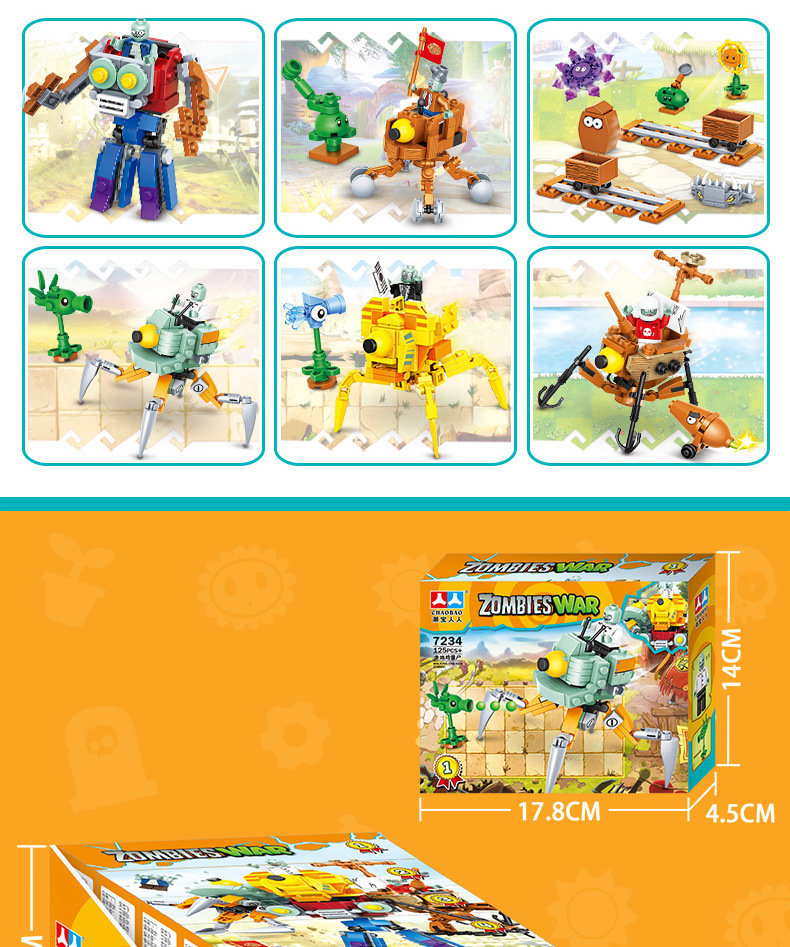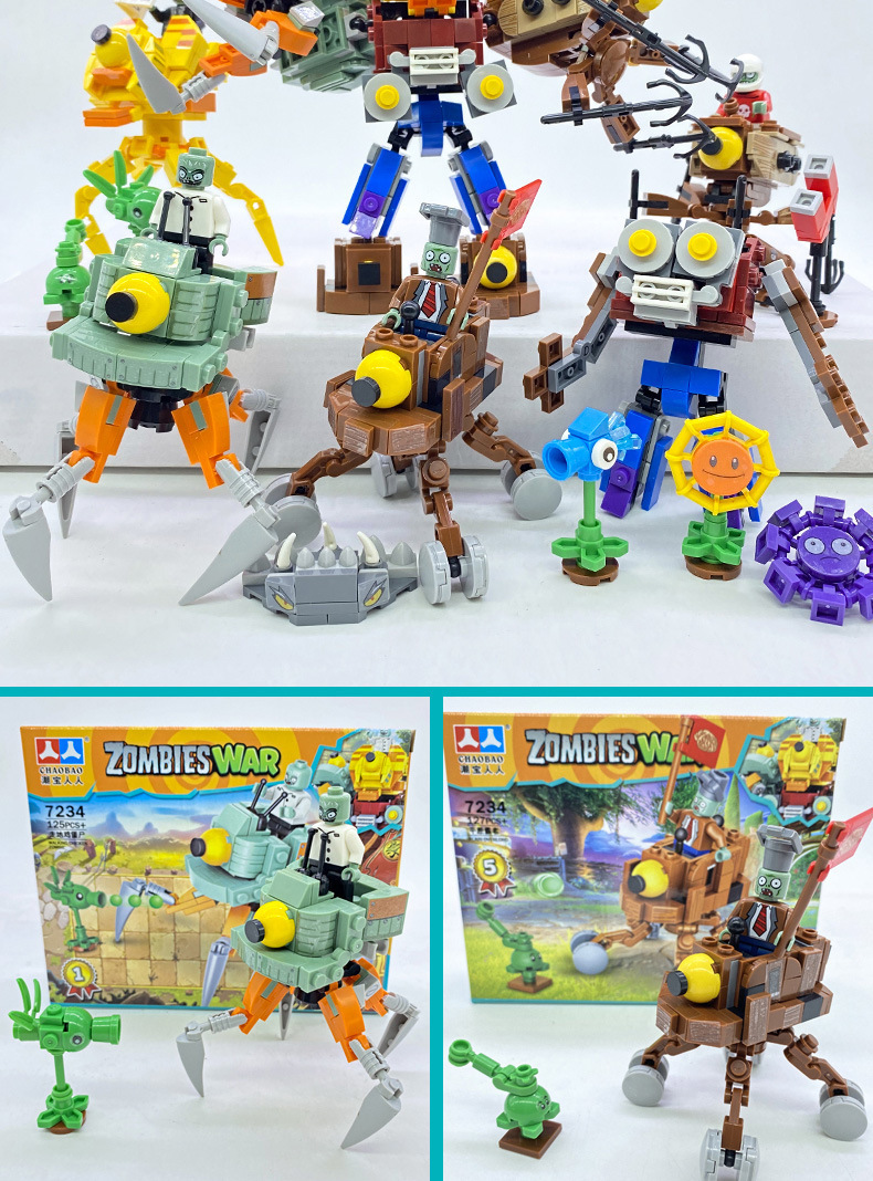 크로스 보더 Chaobao 7235 식물 좀비 군단 전쟁 좀비 메카 어린이 변형 맞춤 조립 퍼즐 빌딩 블록스토어 가기