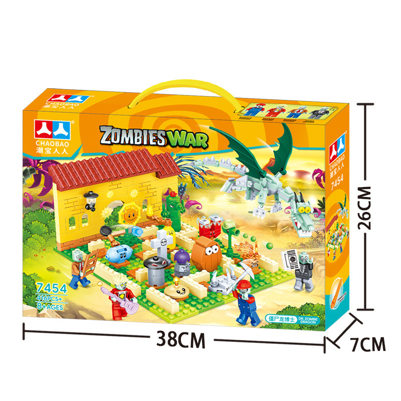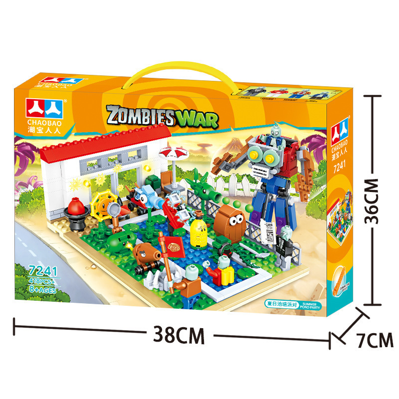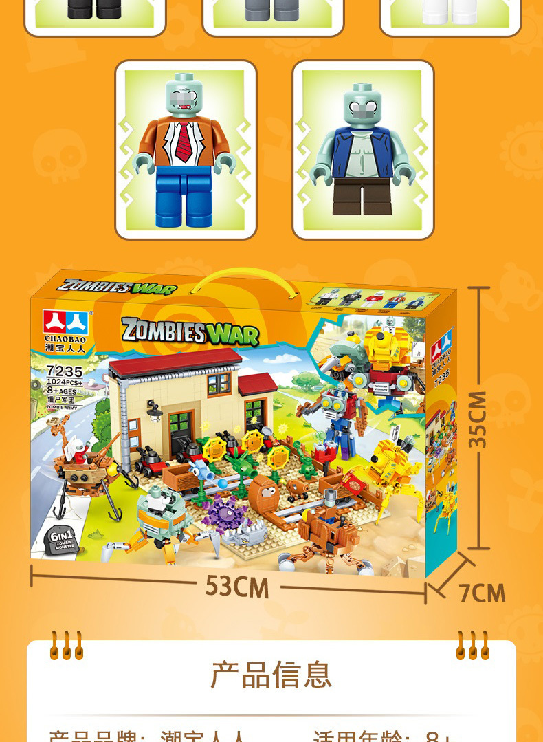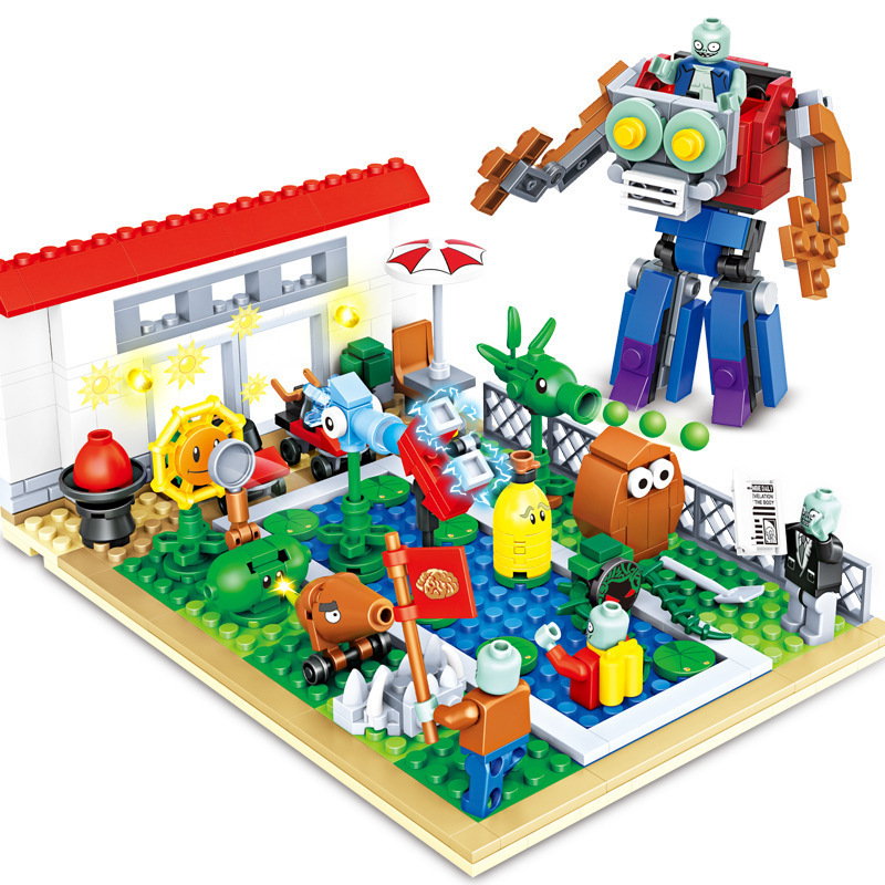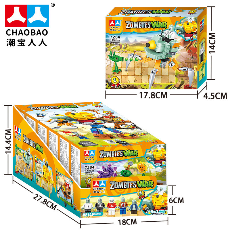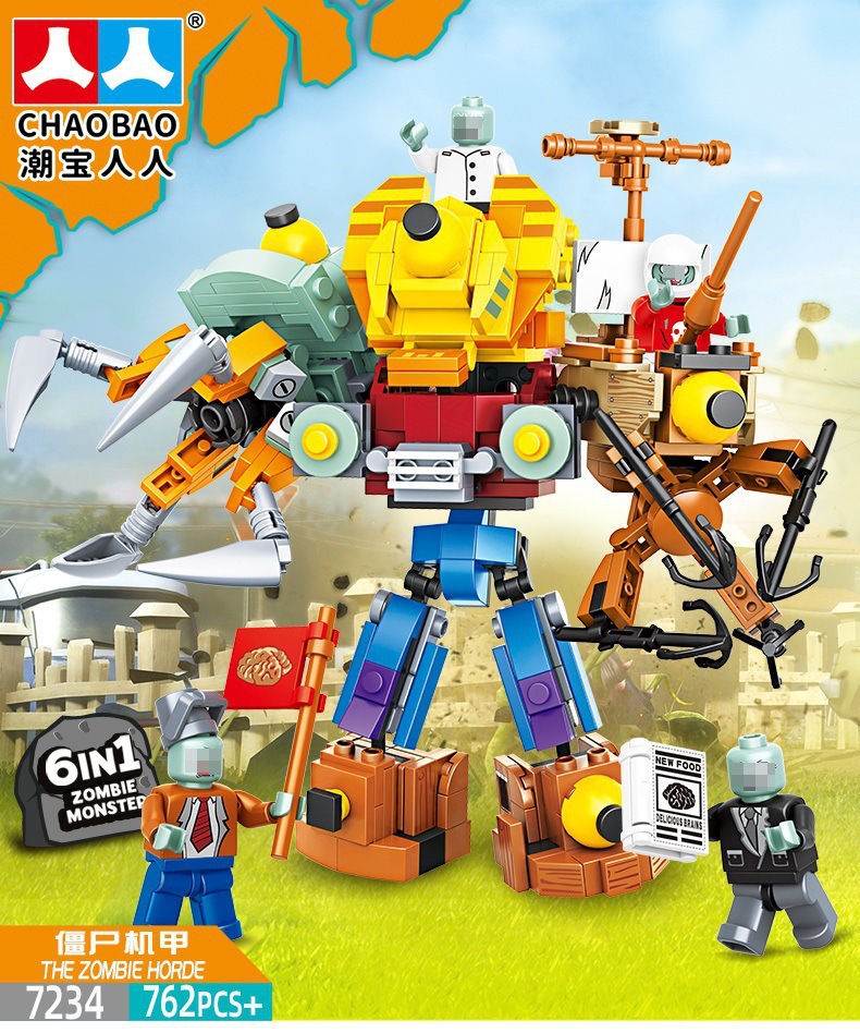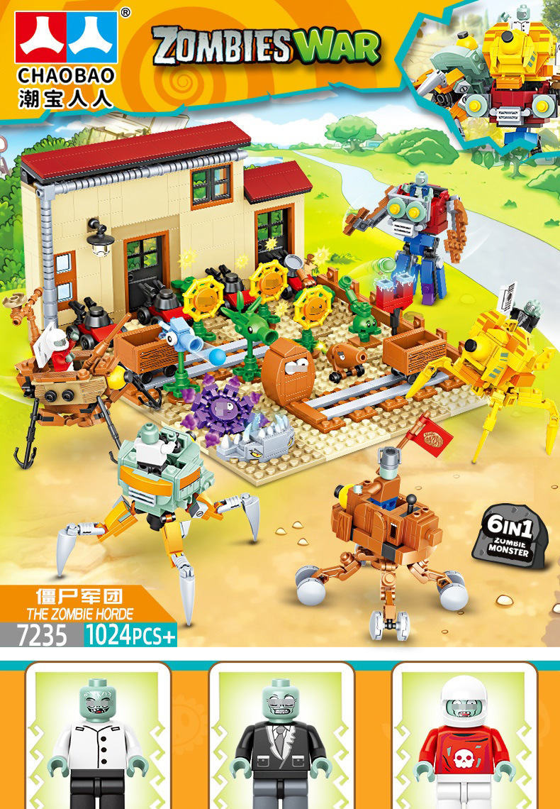 크로스 보더 Chaobao 7235 식물 좀비 군단 전쟁 좀비 메카 어린이 변형 맞춤 조립 퍼즐 빌딩 블록