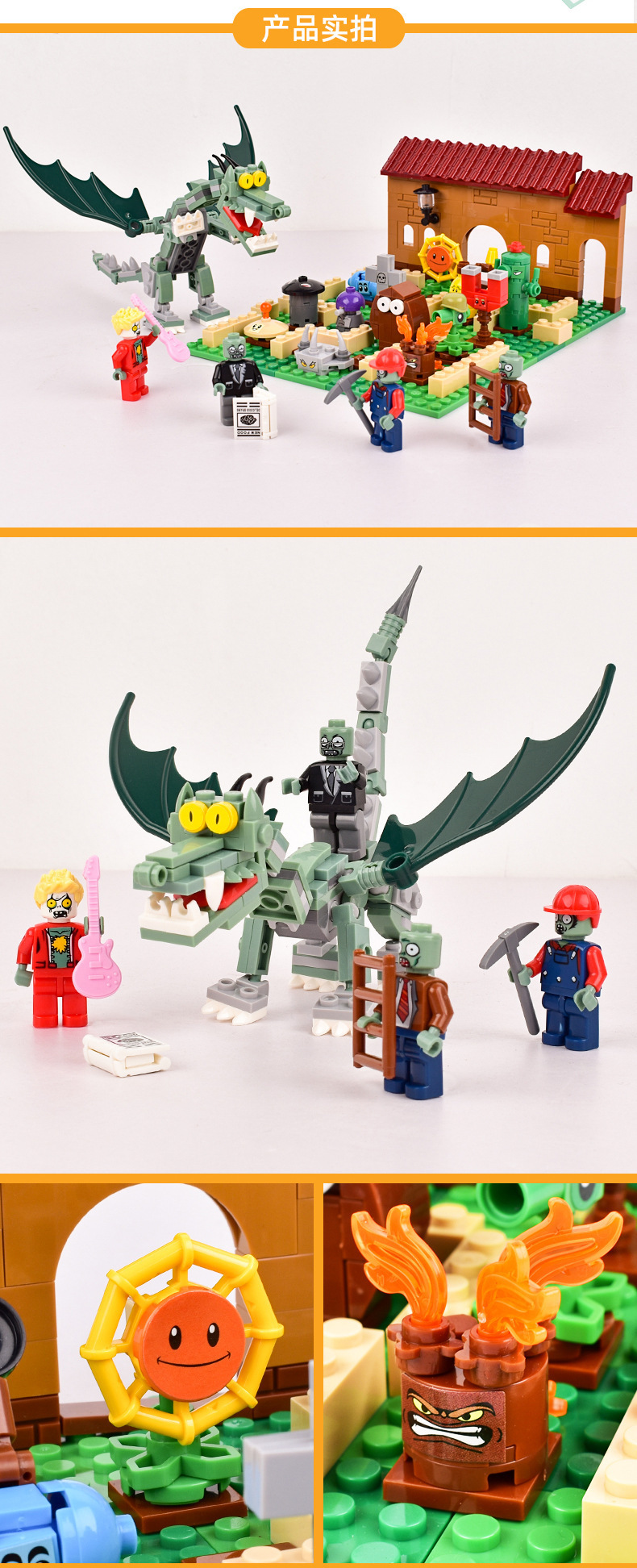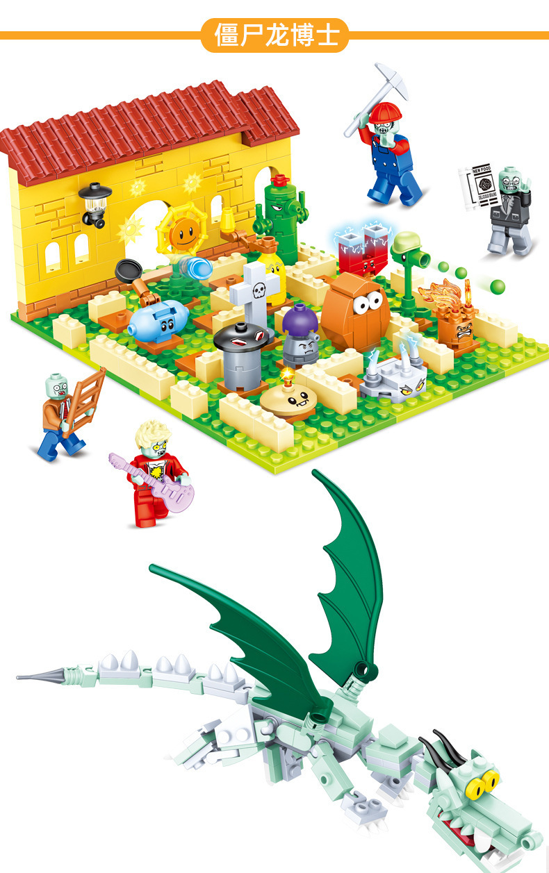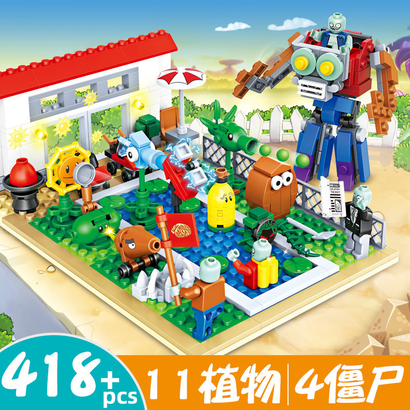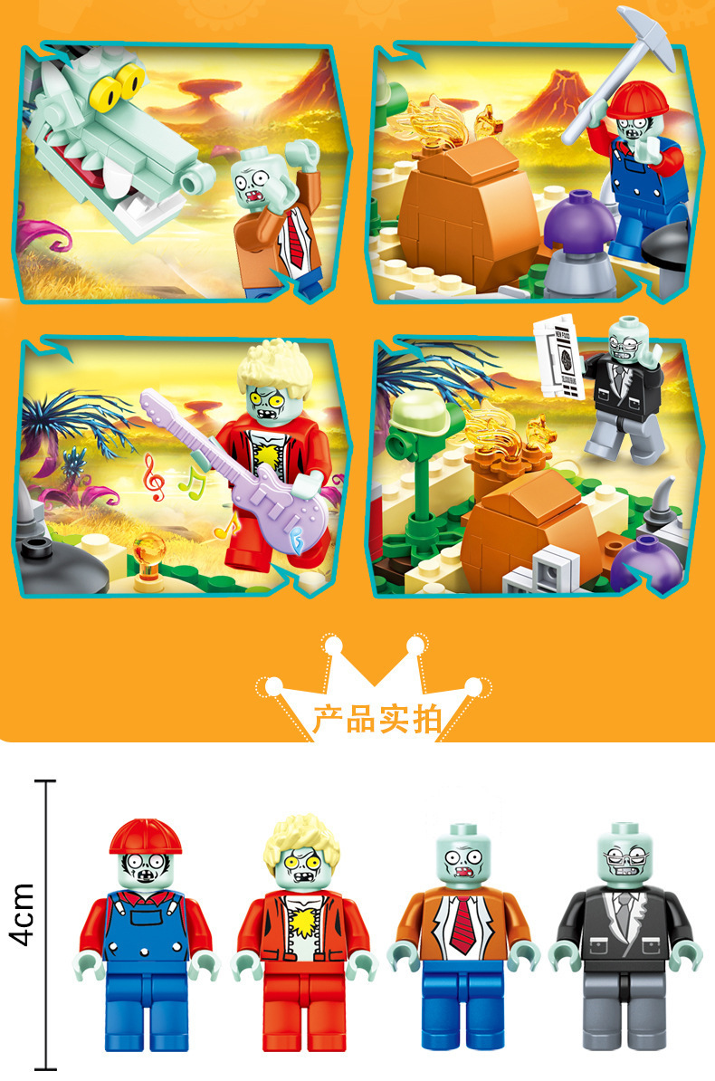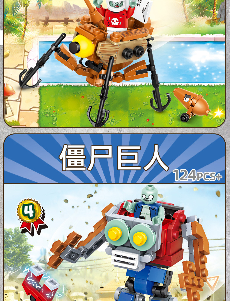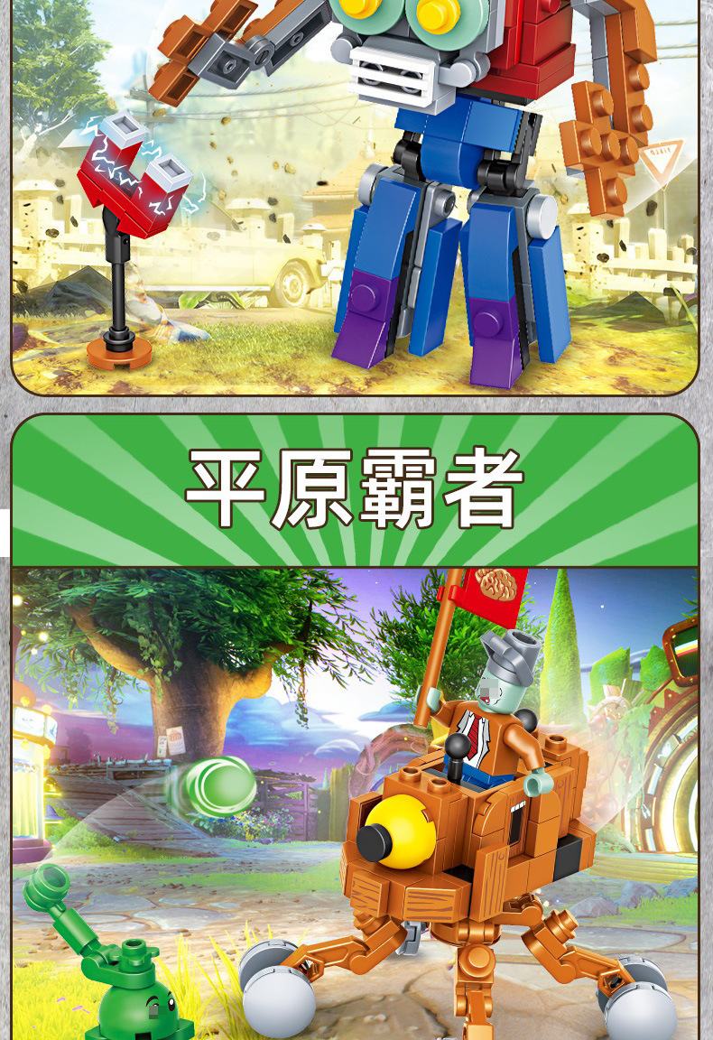 크로스 보더 Chaobao 7235 식물 좀비 군단 전쟁 좀비 메카 어린이 변형 맞춤 조립 퍼즐 빌딩 블록