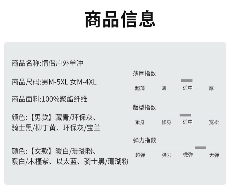 충전 의류 봄과 가을 커플 따뜻한 재킷 남성과 여성의 방풍 방수 단일 스트로크 속건 얇은 패션 재킷