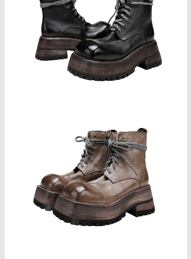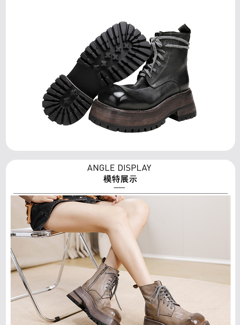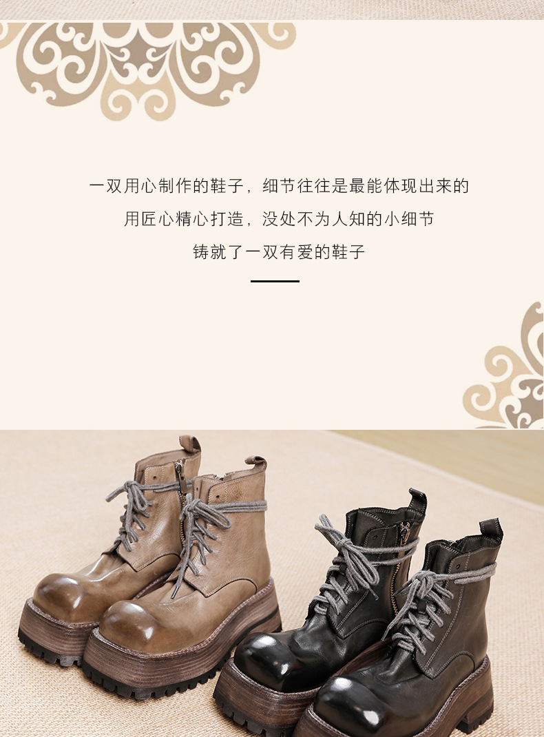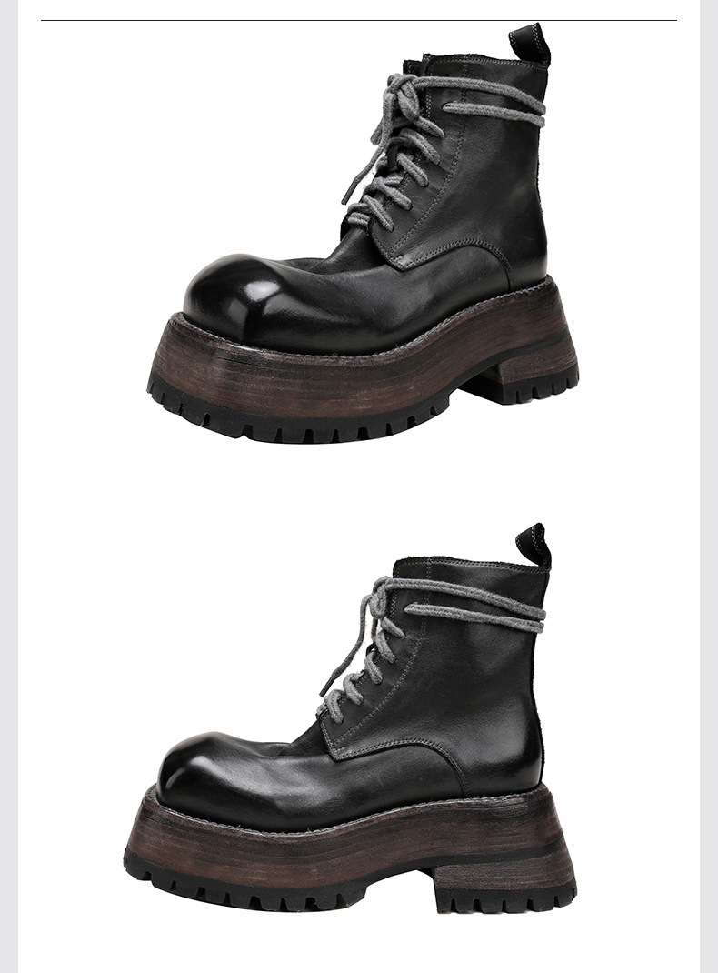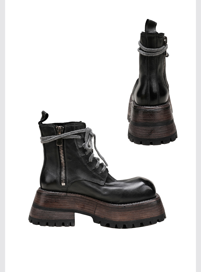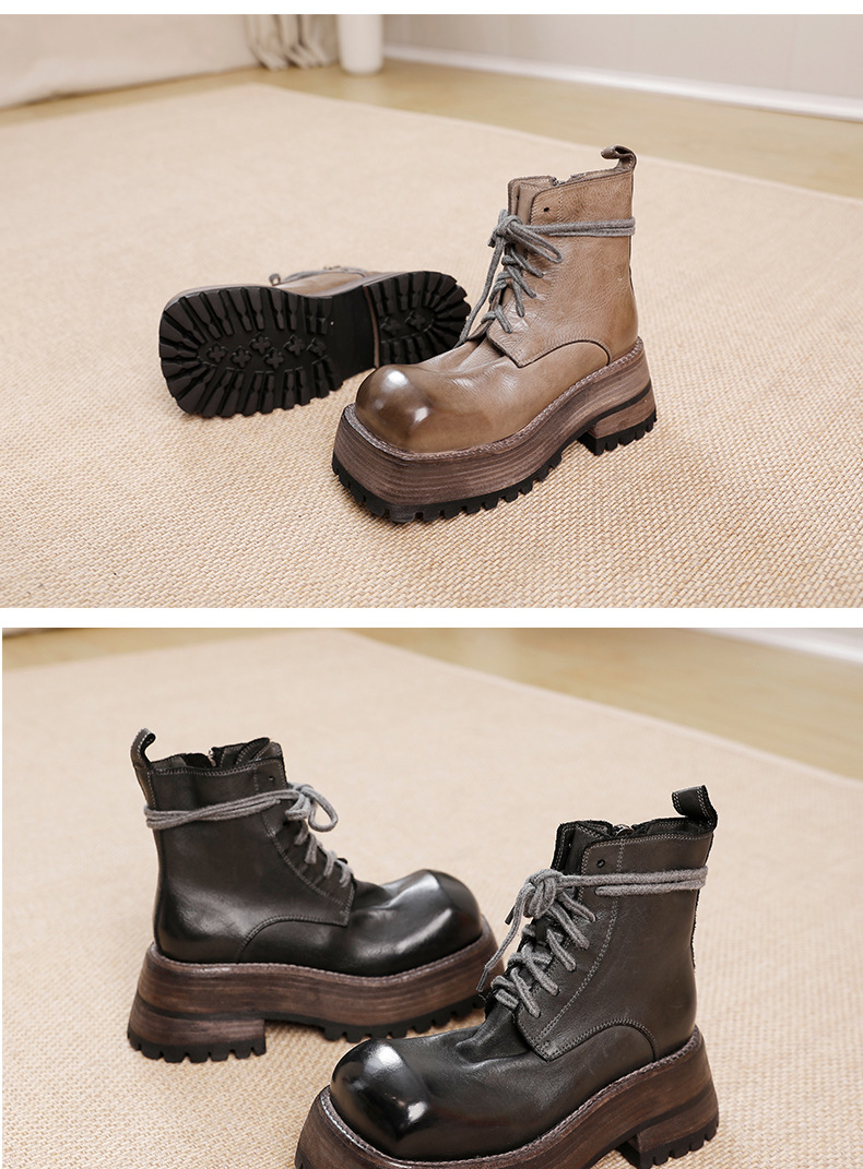 워싱 소가죽 플랫폼 신발 여성의 원래 가을과 겨울 2023 새로운 정품 가죽 빅 솔 영국 스타일 마틴 부츠