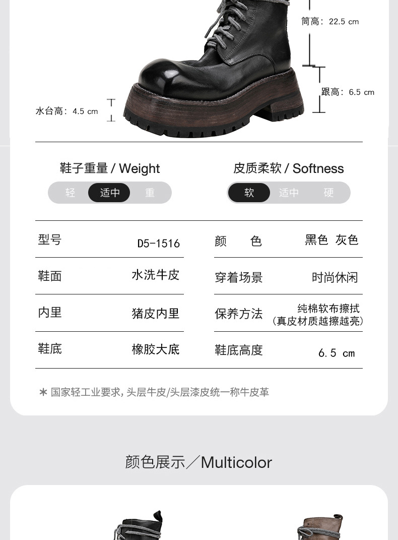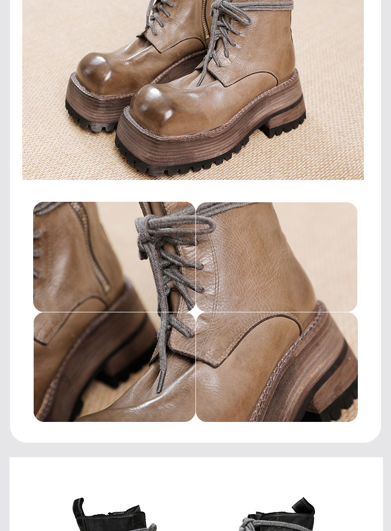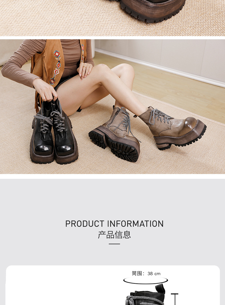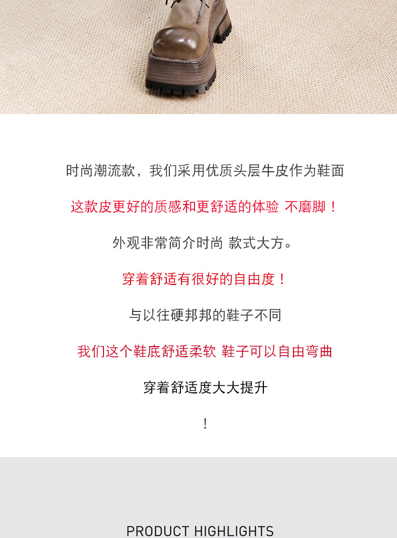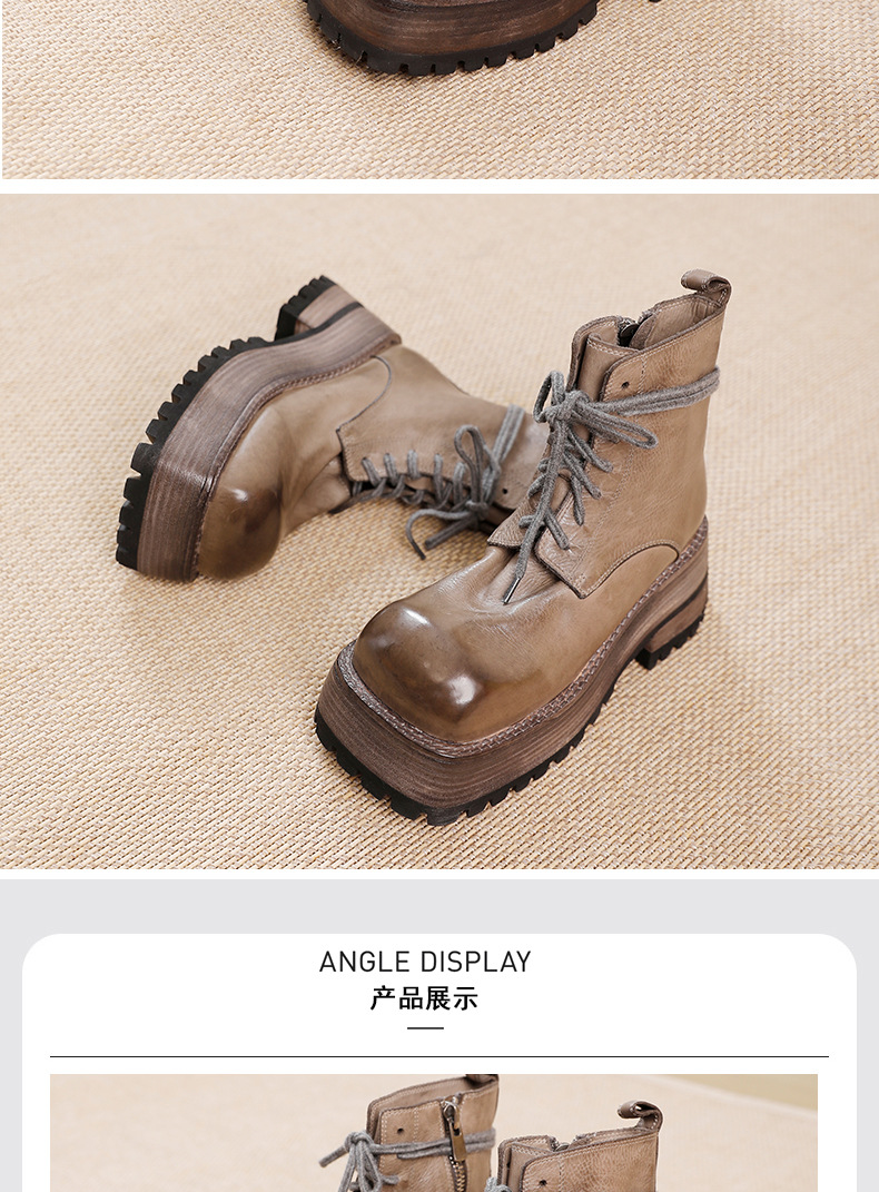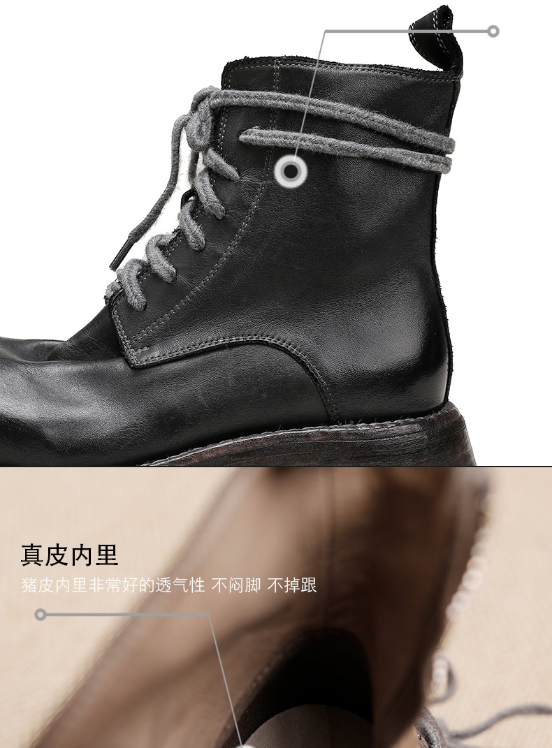 워싱 소가죽 플랫폼 신발 여성의 원래 가을과 겨울 2023 새로운 정품 가죽 빅 솔 영국 스타일 마틴 부츠