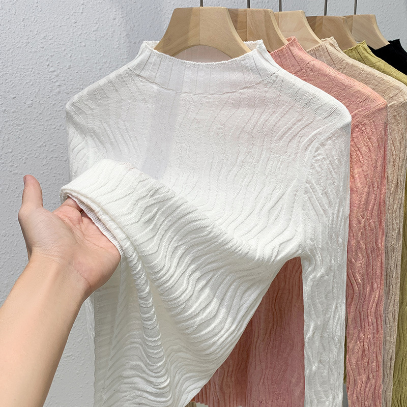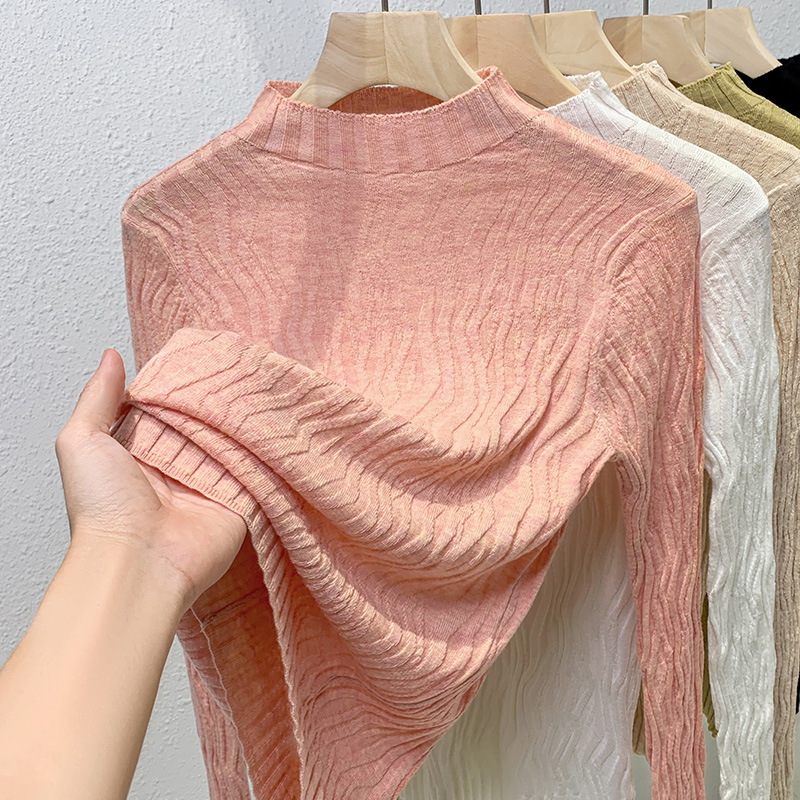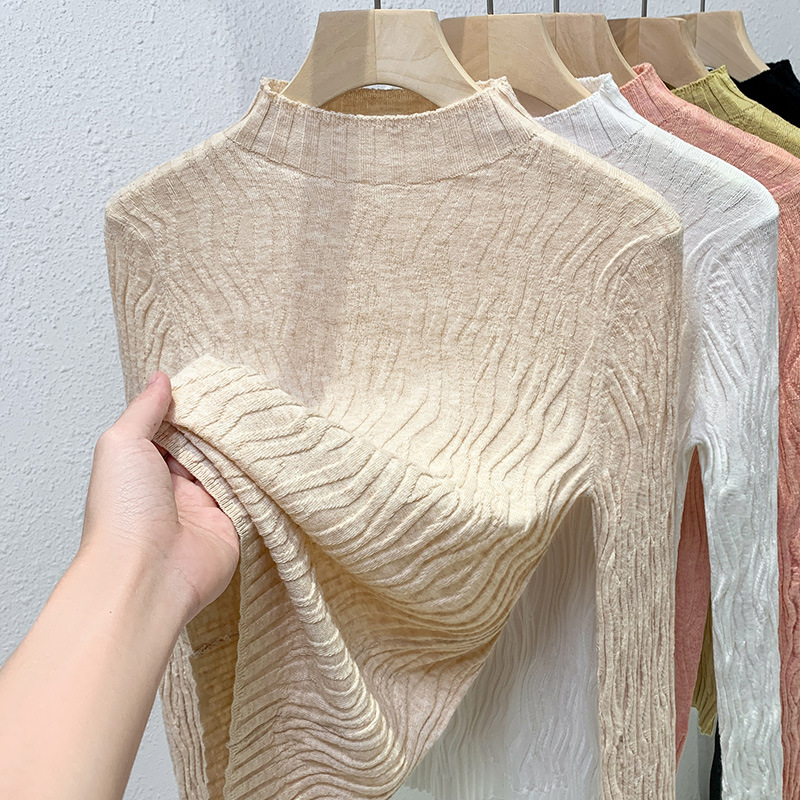 니트 베이스 셔츠 여성용 2024 신상 여성복 우아한 반하이넥 풀오버 울 스웨터 허리 조임 이너웨어 신축성 있는 상의스토어 가기