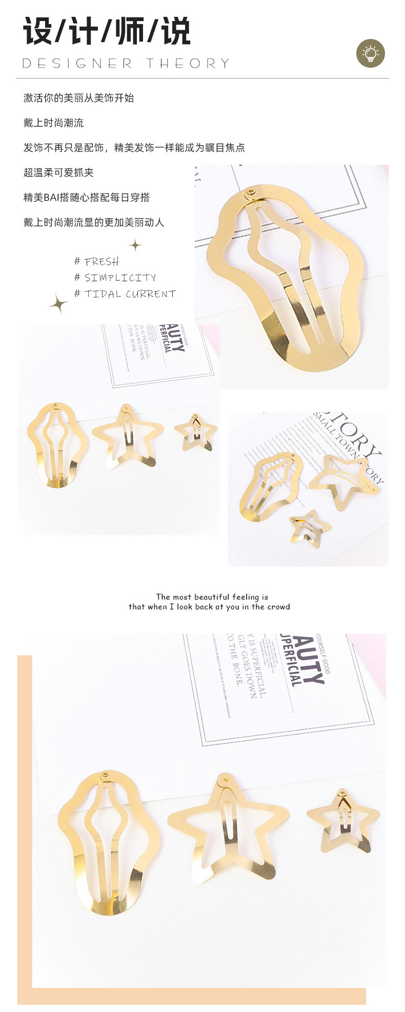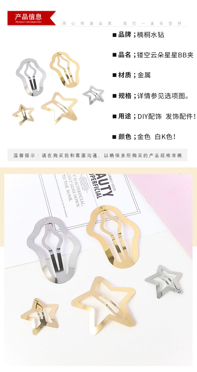 한국 스타일 간단한 중공 별 모양의 부러진 머리 BB 클립 여성용 옆머리 옆머리 클립 뒷머리 작은 클립 모자 헤어 액세서리