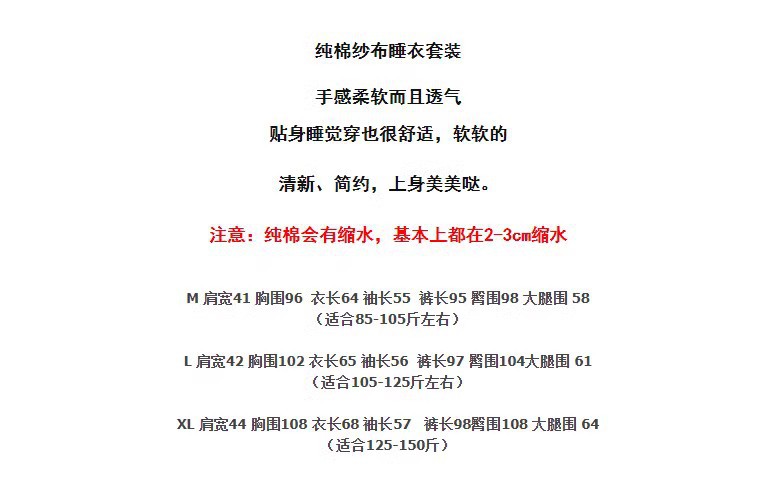 한국 스타일 달콤한 봄과 가을 순면 거즈 잠옷 여자의 얇은 면사 가정 옷 긴 소매 바지 세트 겉옷스토어 가기