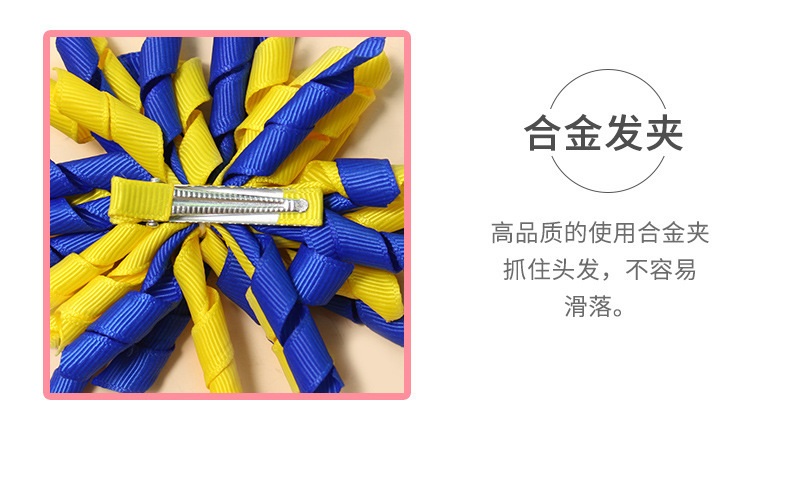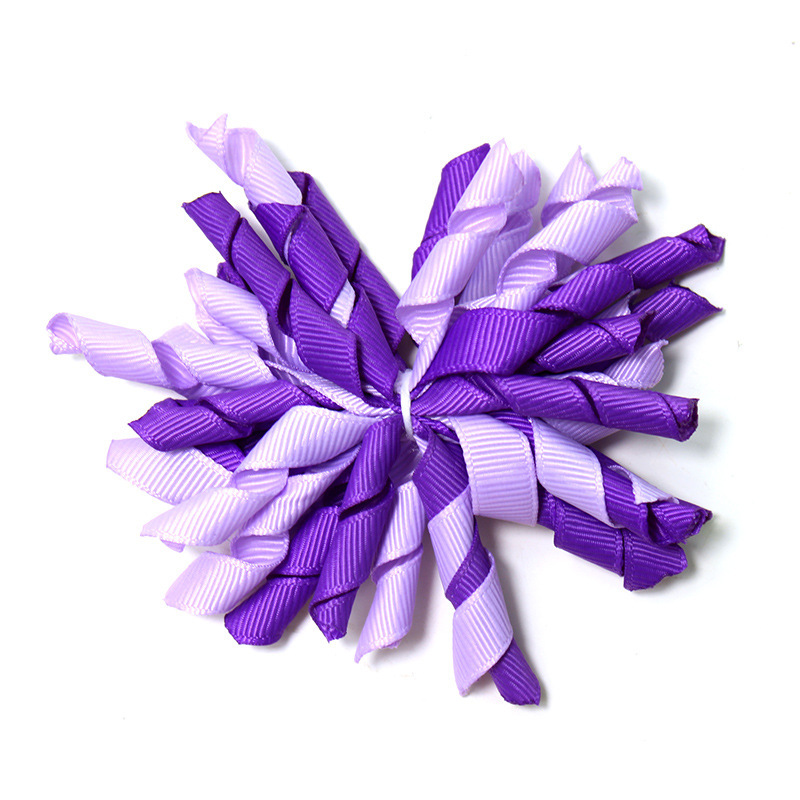 【名称】新款热销外贸手工儿童卷发装饰罗纹缎带纯 色发夹发饰跨境儿童头饰