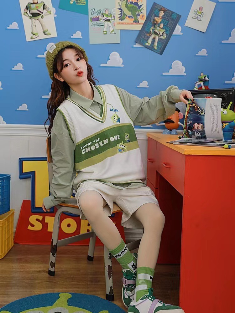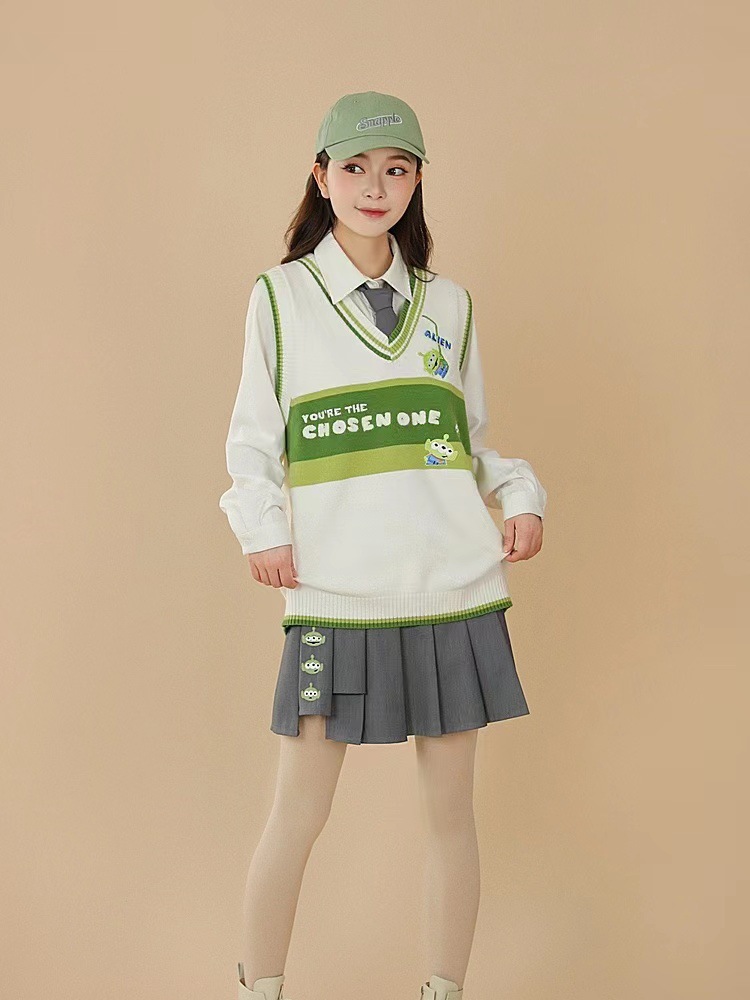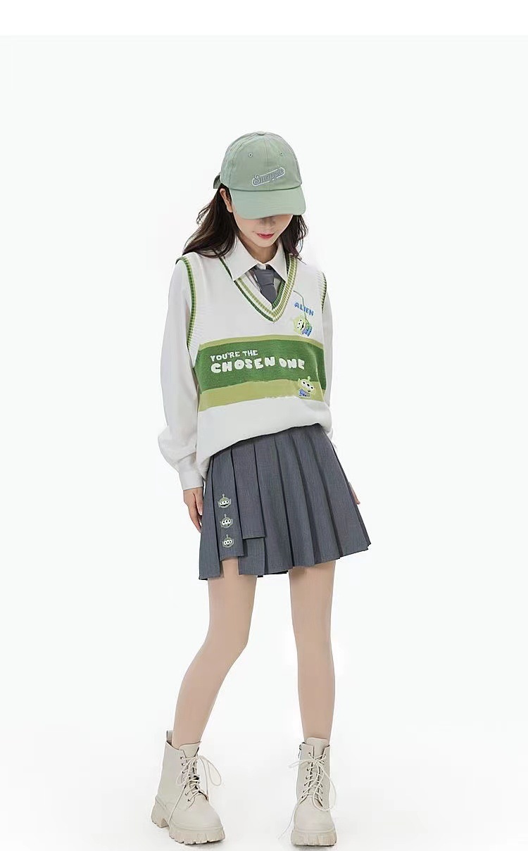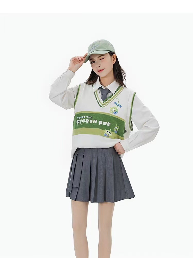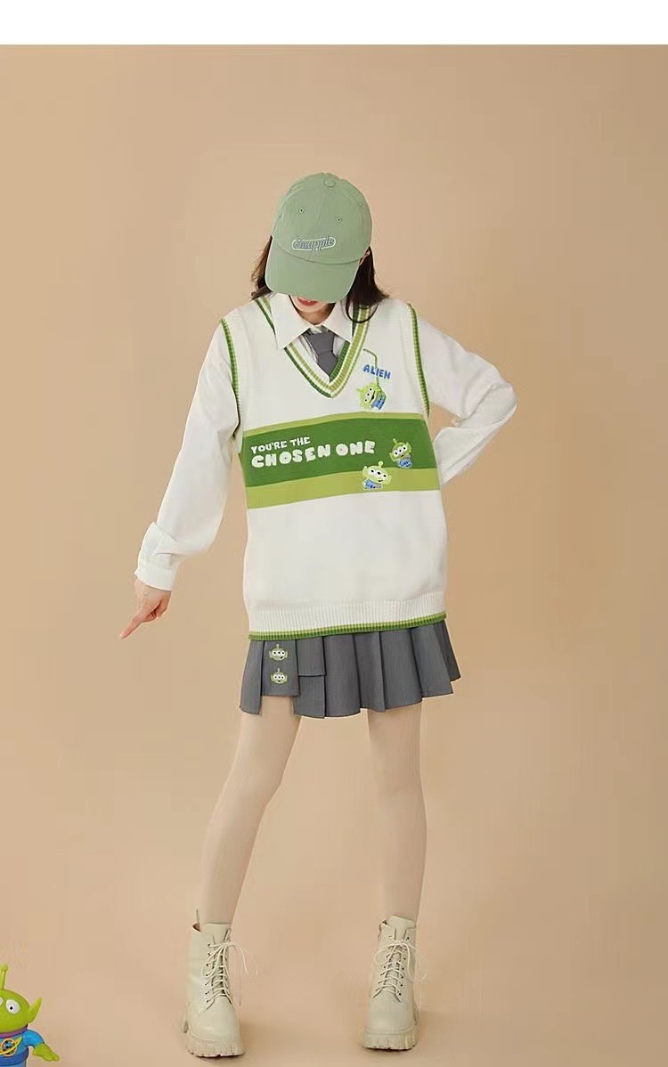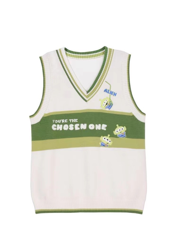 만화 세 눈 괴물 모리 V-넥 니트 조끼 여자 대학 스타일 귀여운 봄과 가을 민소매 스웨터 오버웨어스토어 가기