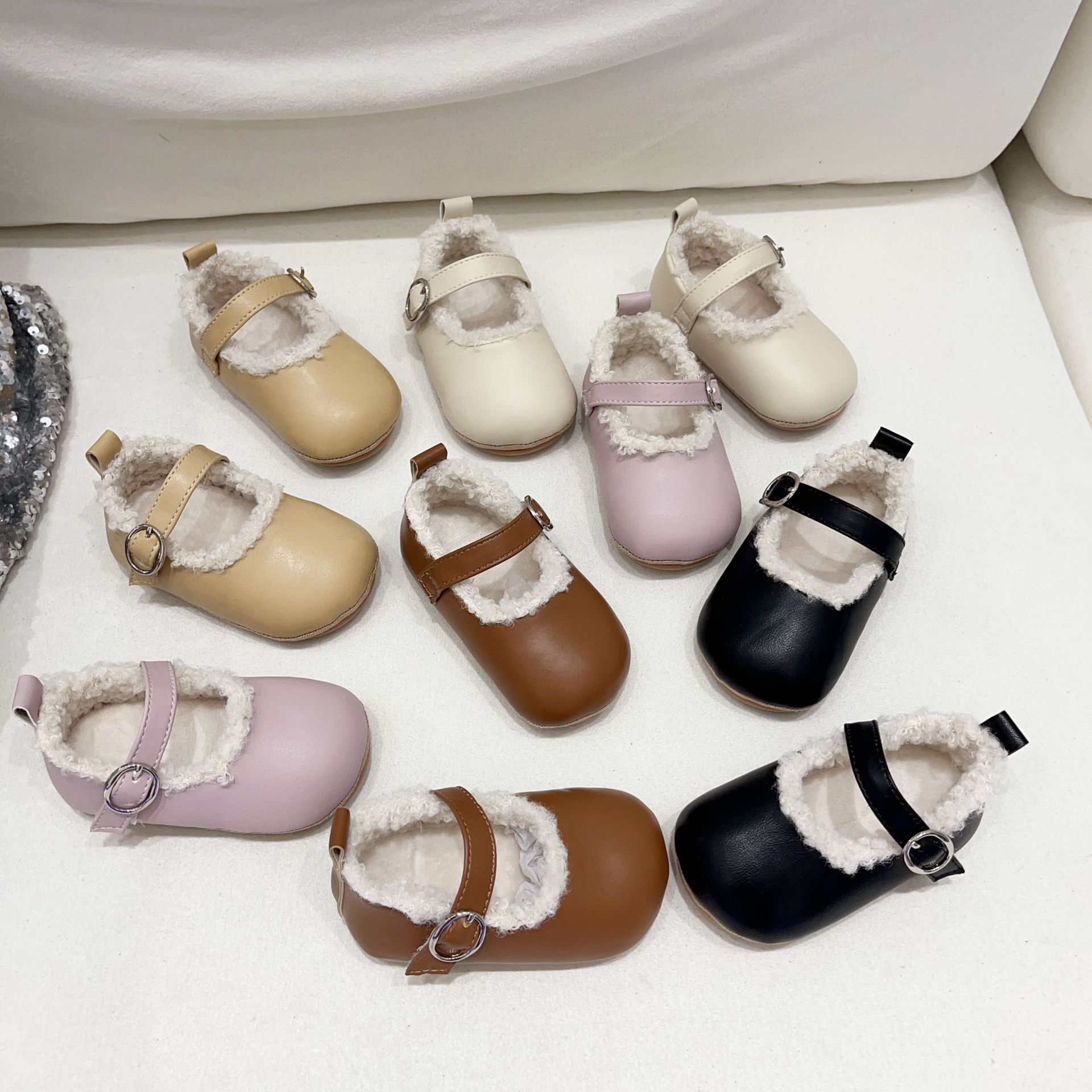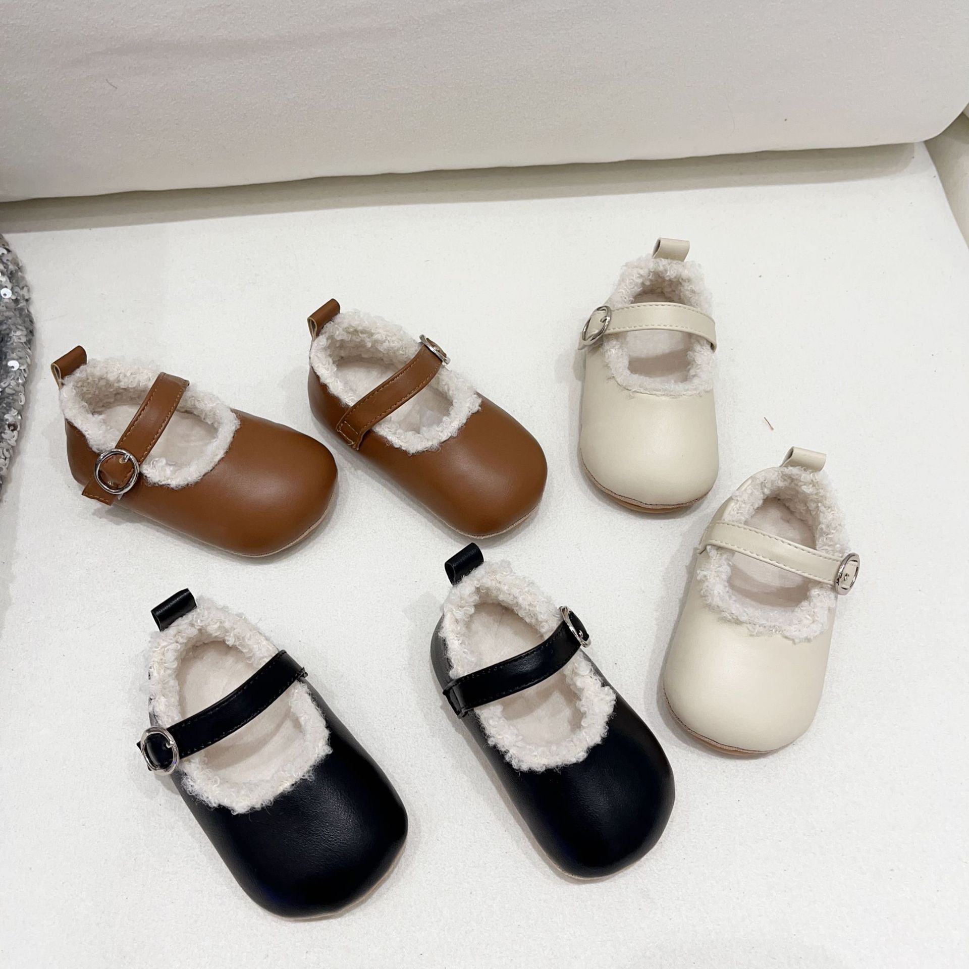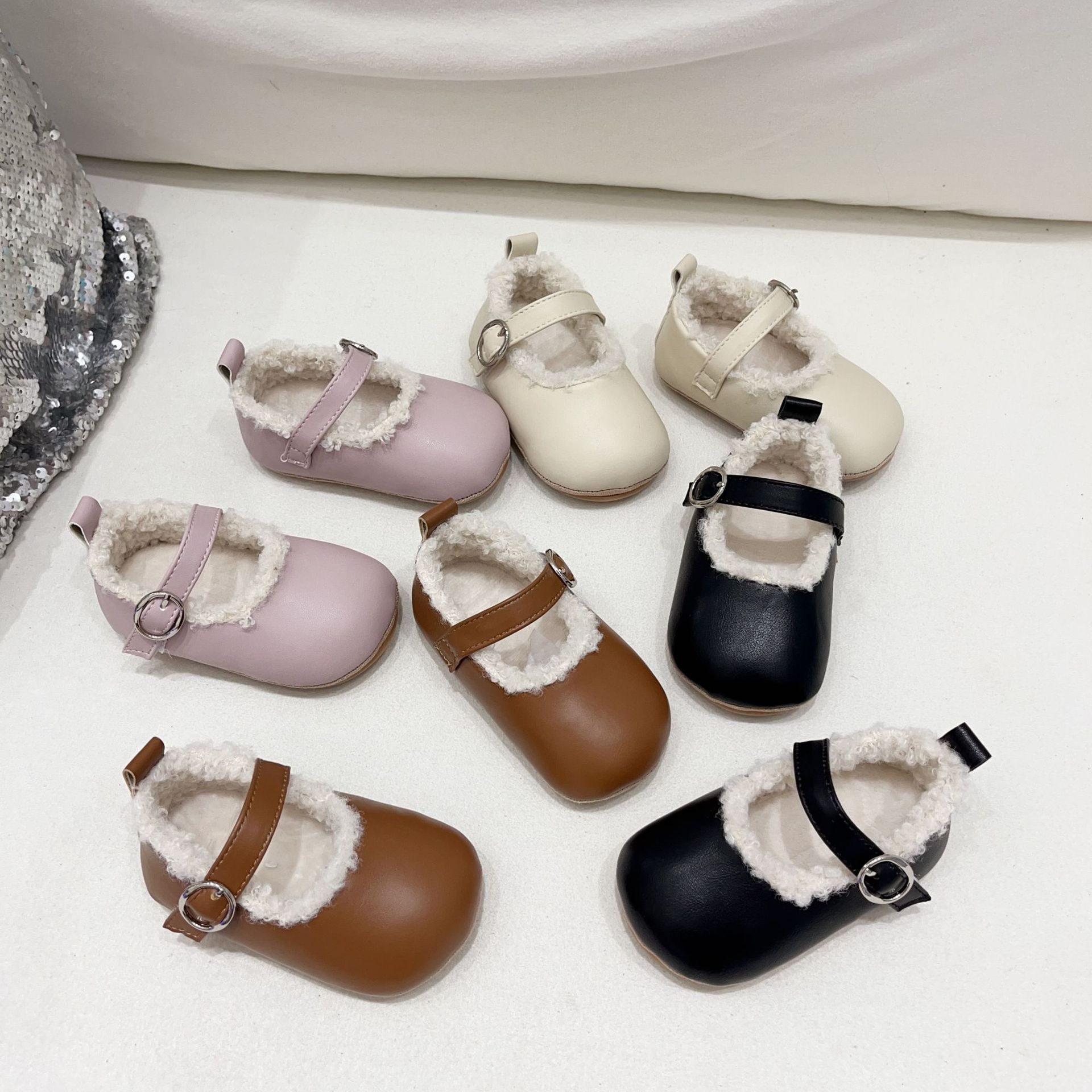 공장 직송 해외판 한국형 유아용 부드러운 밑창 플러스 벨벳 보행기 신발 아기 실내 미끄럼 방지 면화 신발 미끄럼 방지 및 보온스토어 가기