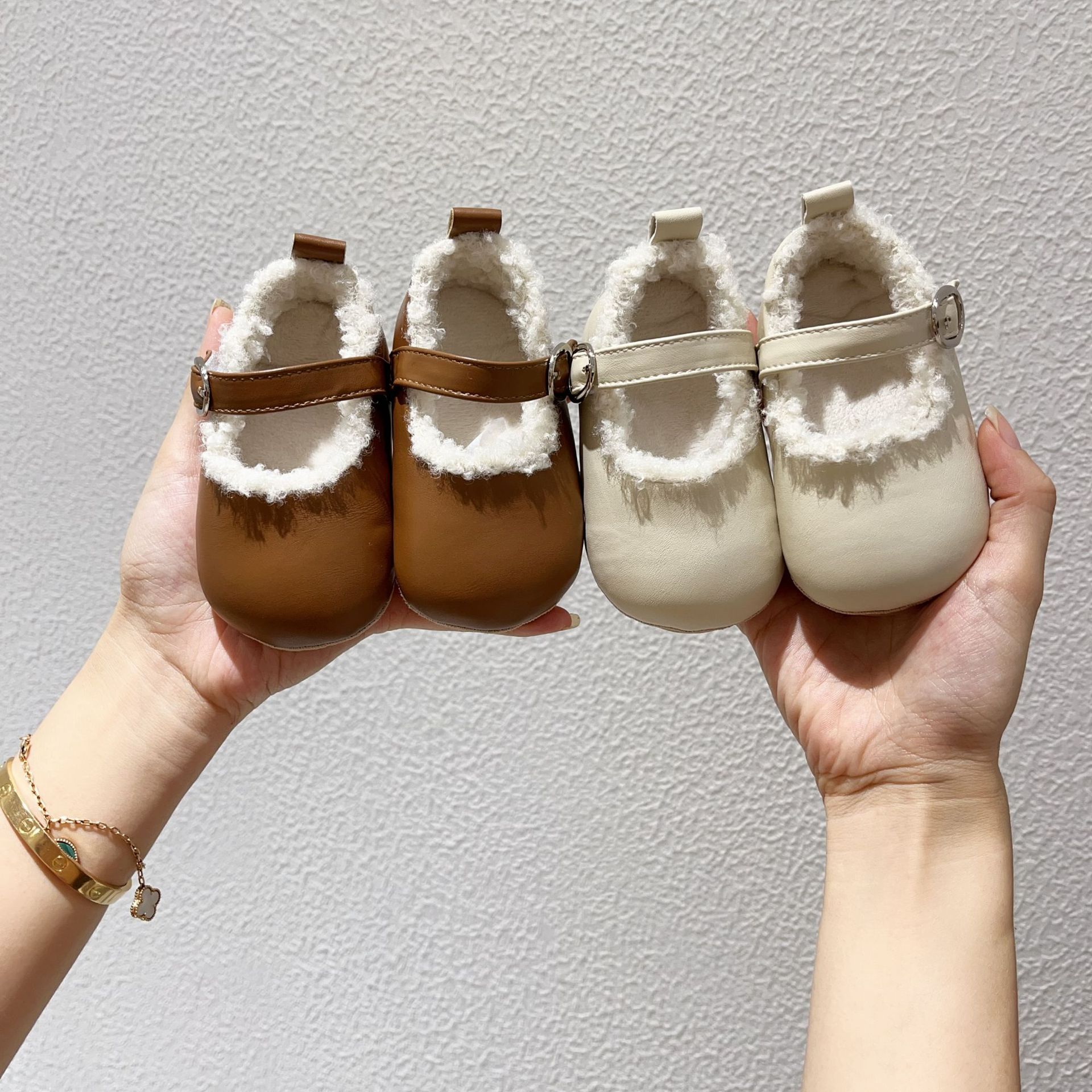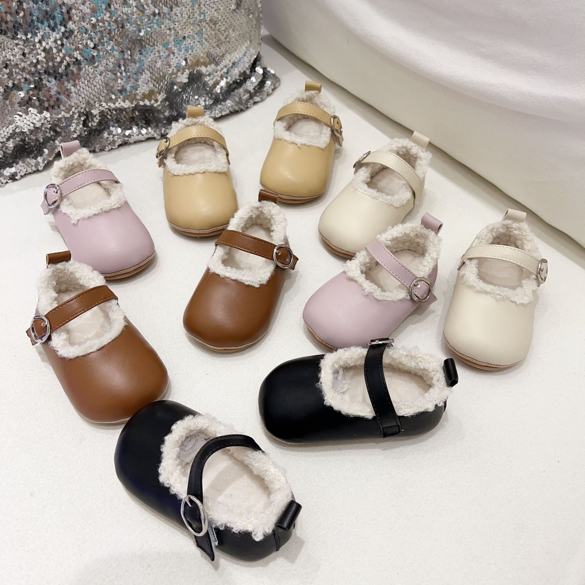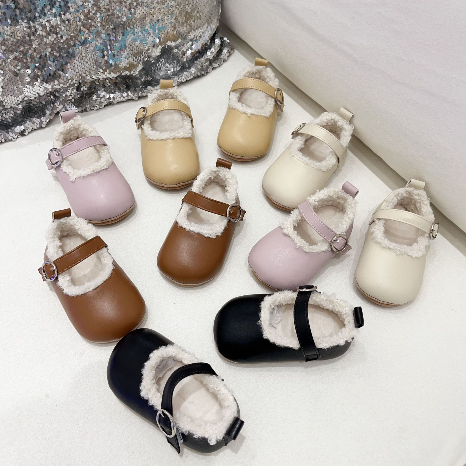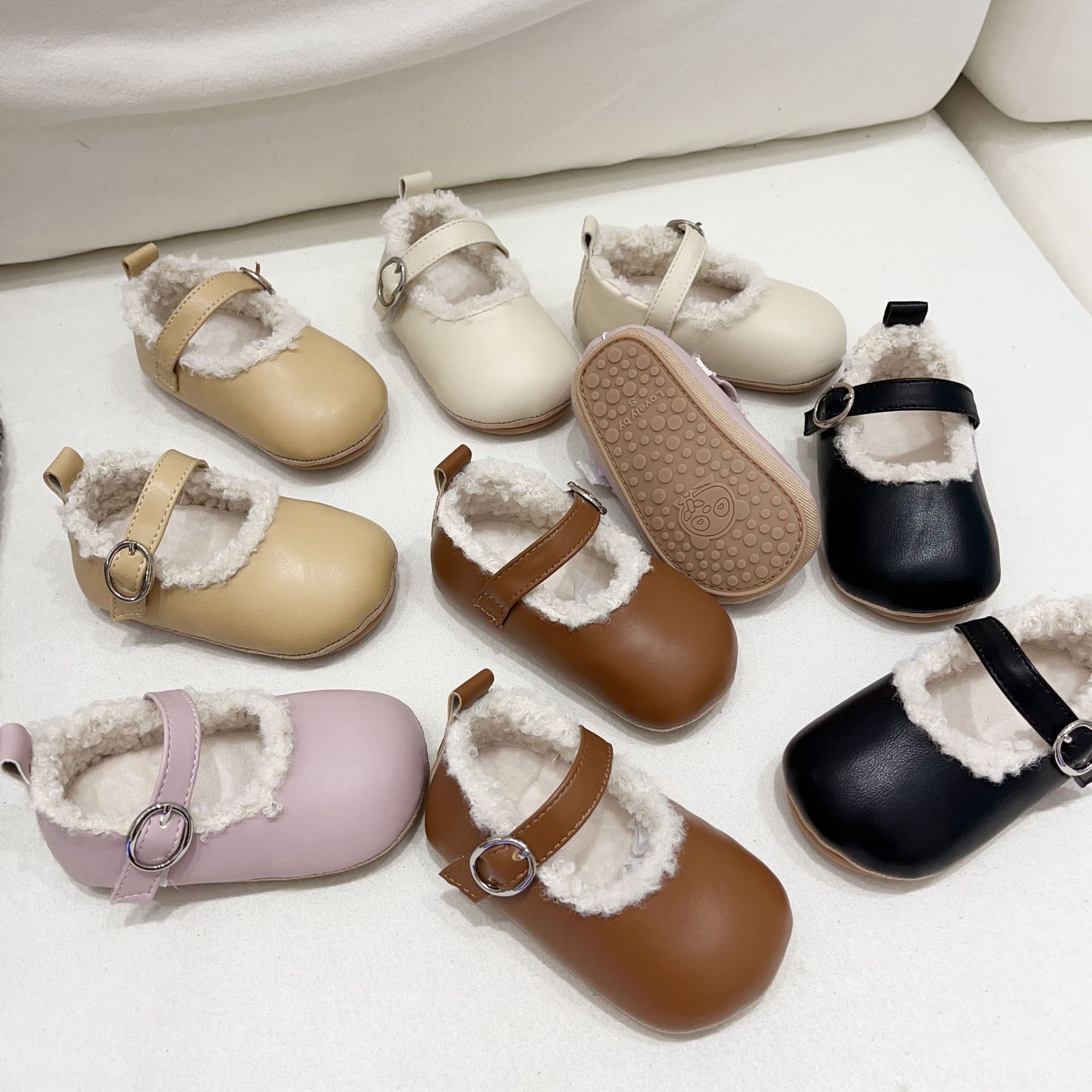 공장 직송 해외판 한국형 유아용 부드러운 밑창 플러스 벨벳 보행기 신발 아기 실내 미끄럼 방지 면화 신발 미끄럼 방지 및 보온스토어 가기