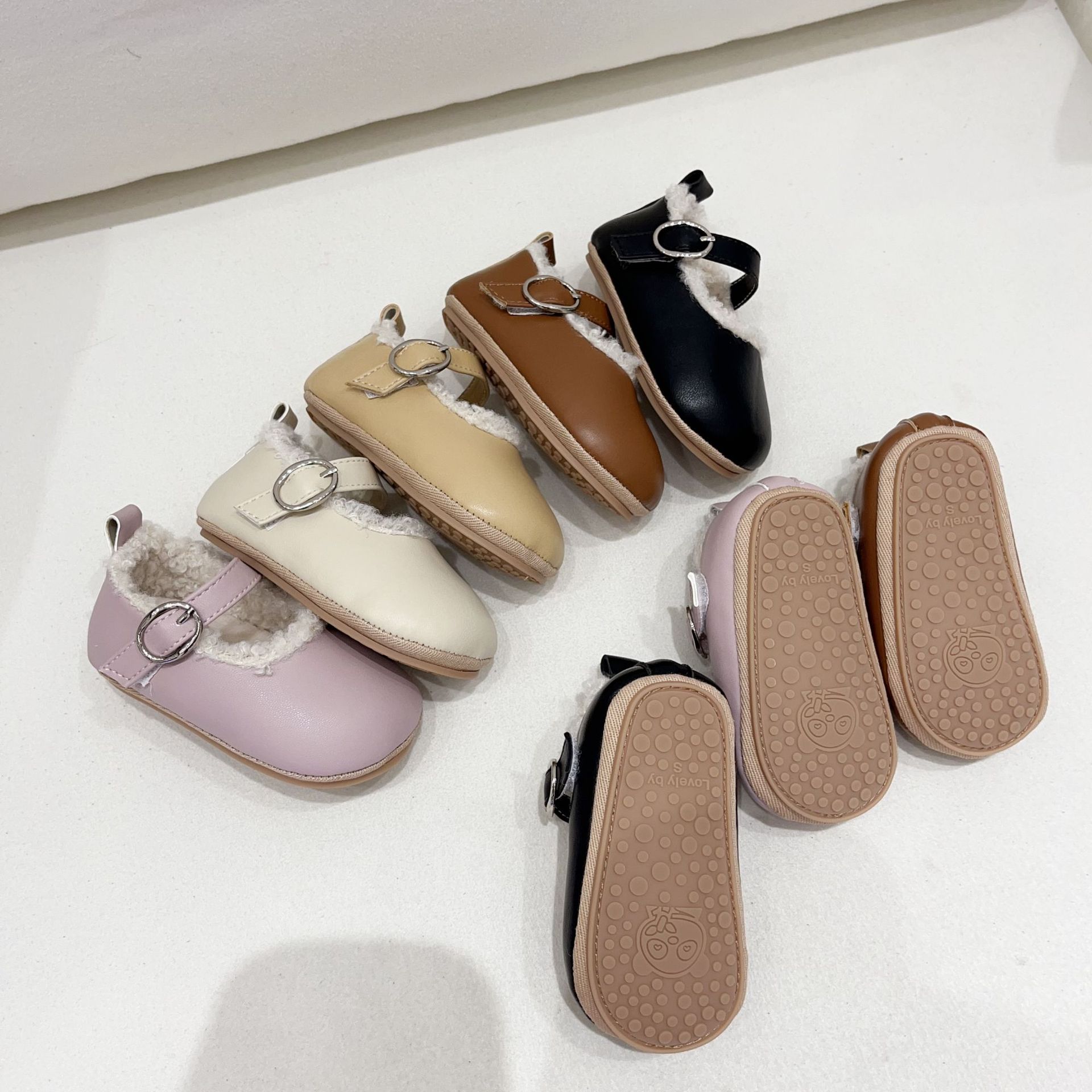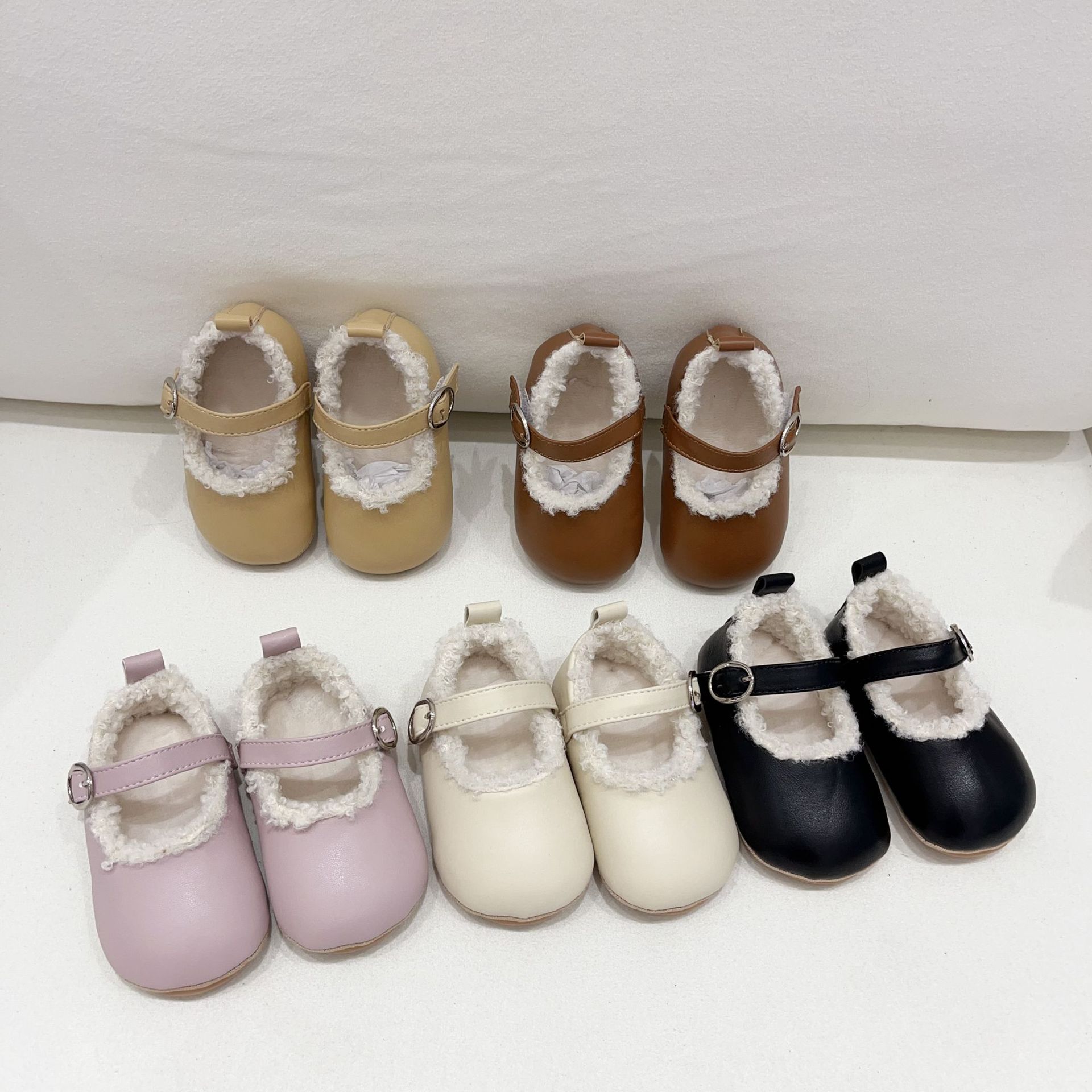 공장 직송 해외판 한국형 유아용 부드러운 밑창 플러스 벨벳 보행기 신발 아기 실내 미끄럼 방지 면화 신발 미끄럼 방지 및 보온