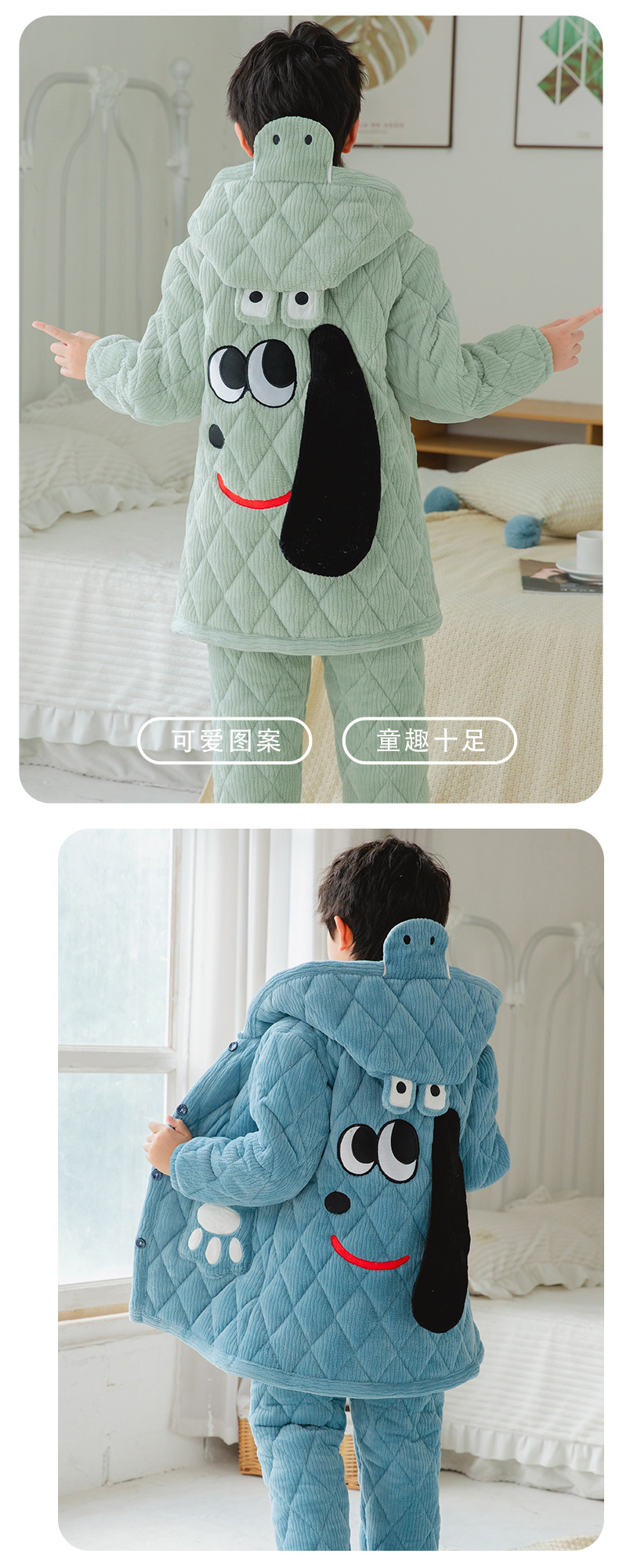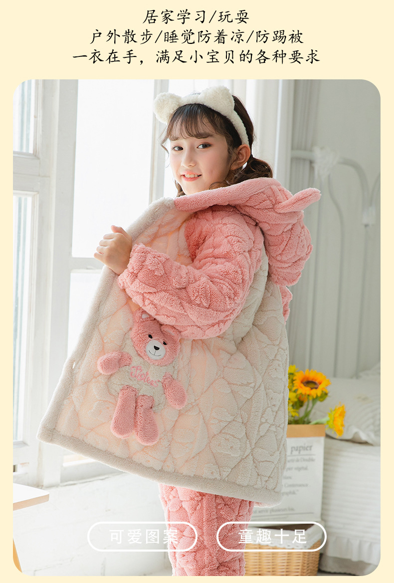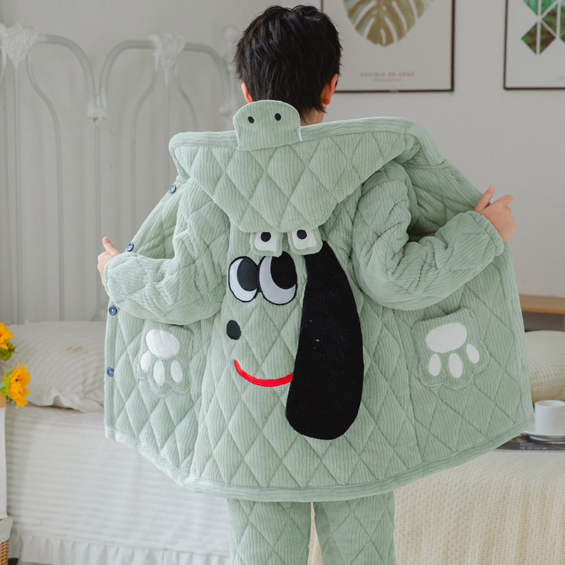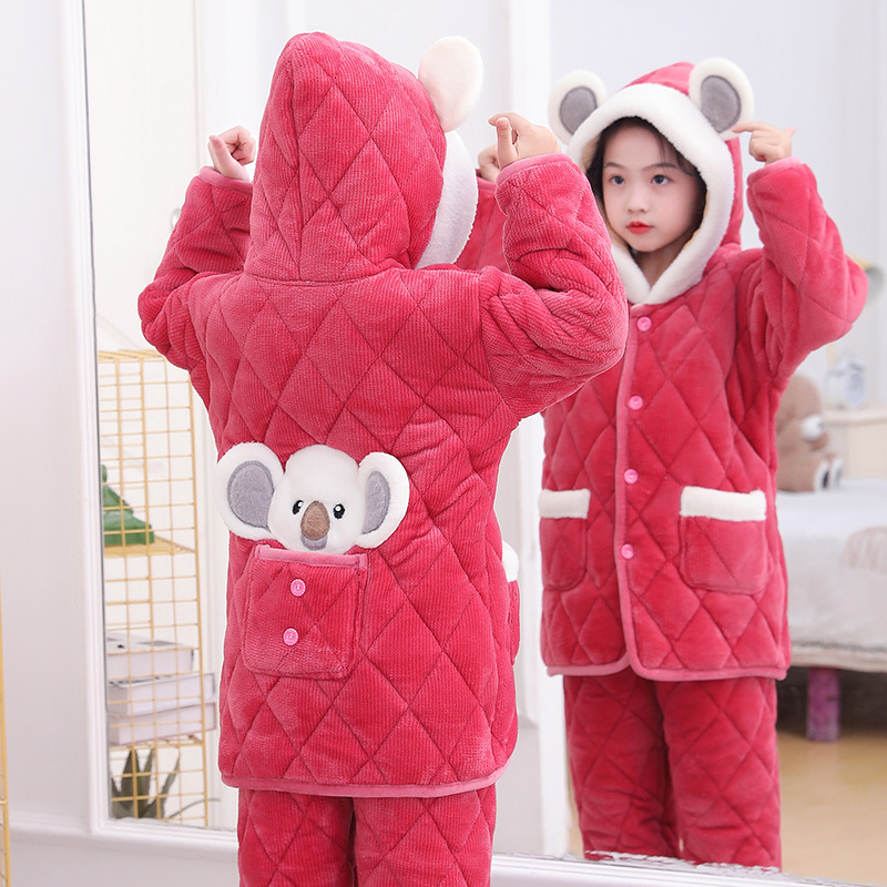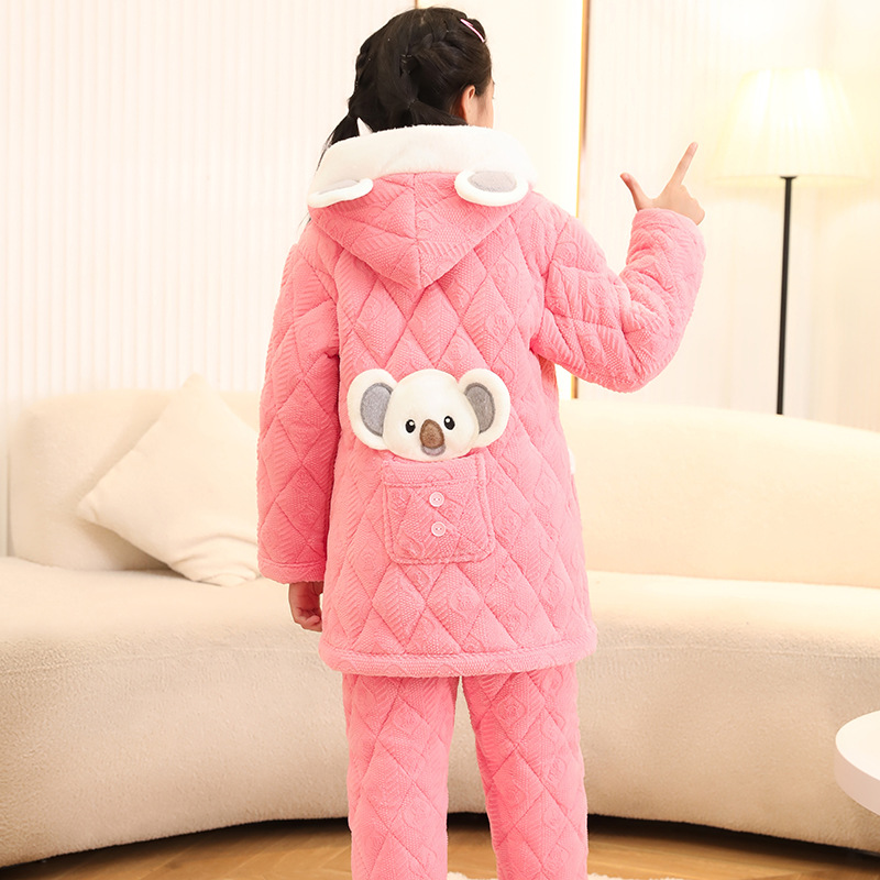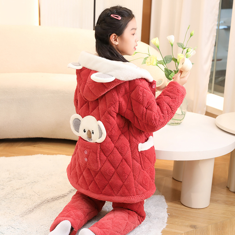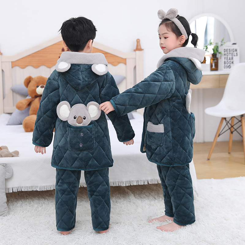 새로운 귀여운 곰 3 층 누비 이불 잠옷 두꺼운 플란넬 가정 옷 세트 기모 후드 강아지 세트