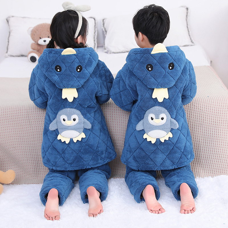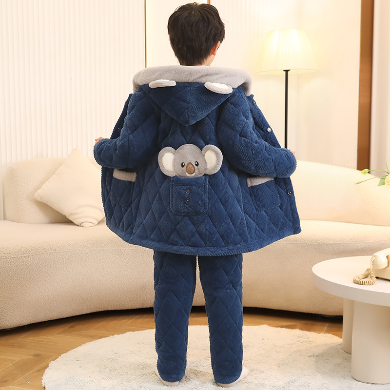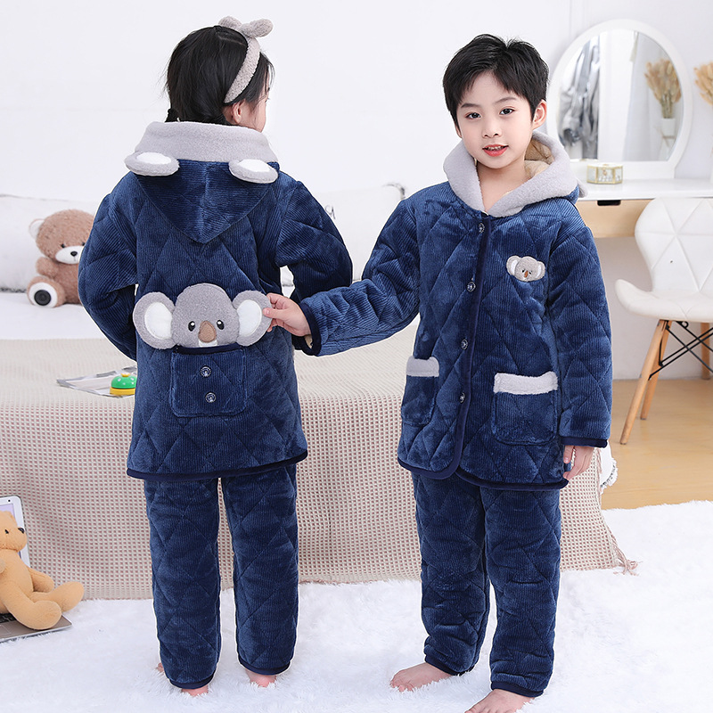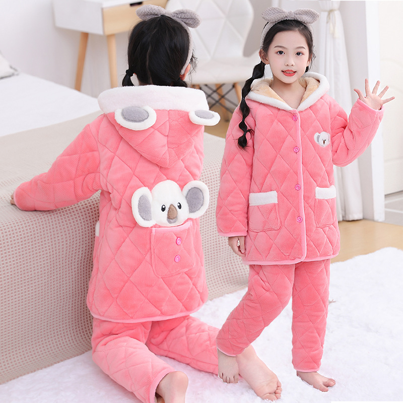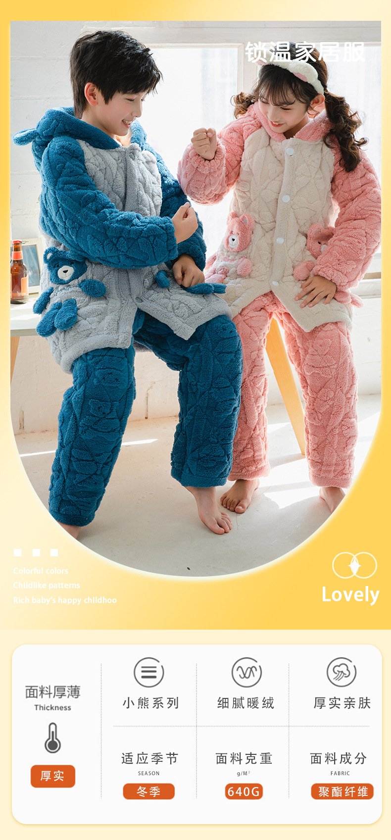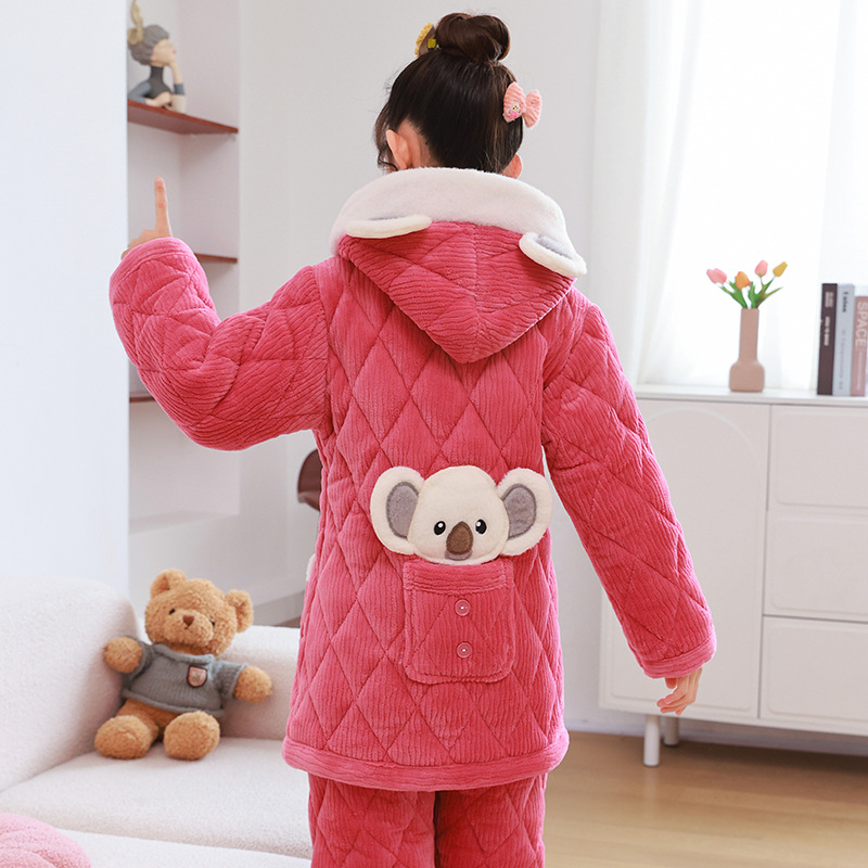 새로운 귀여운 곰 3 층 누비 이불 잠옷 두꺼운 플란넬 가정 옷 세트 기모 후드 강아지 세트