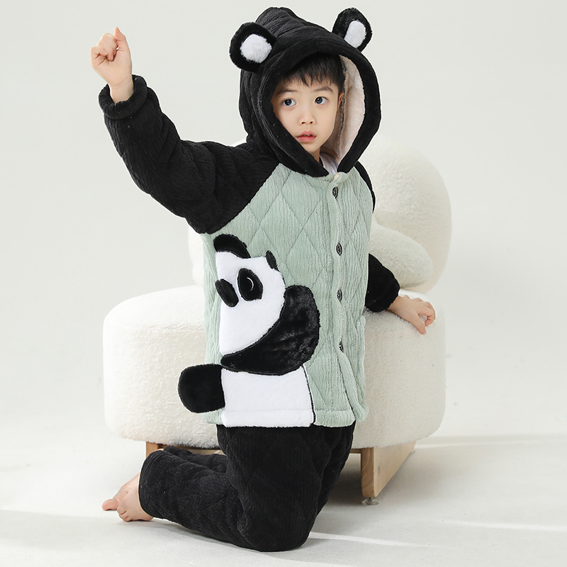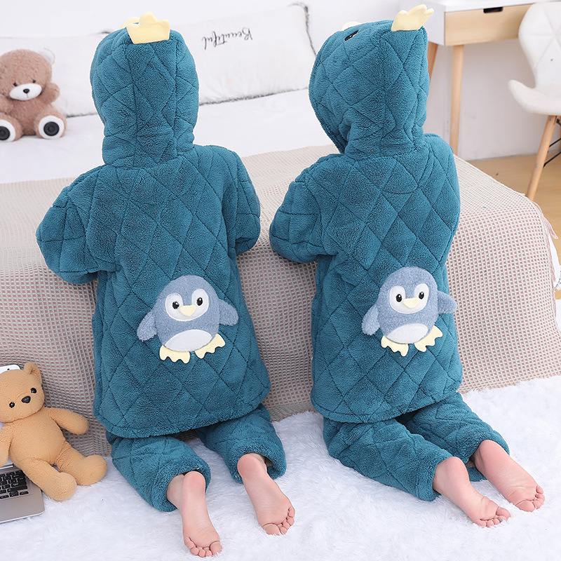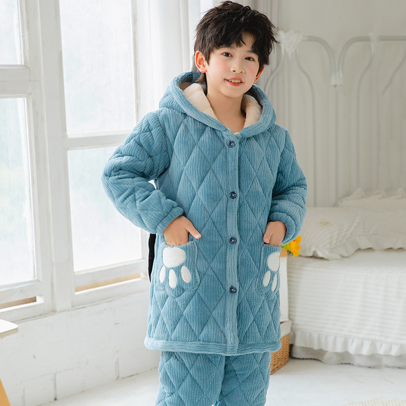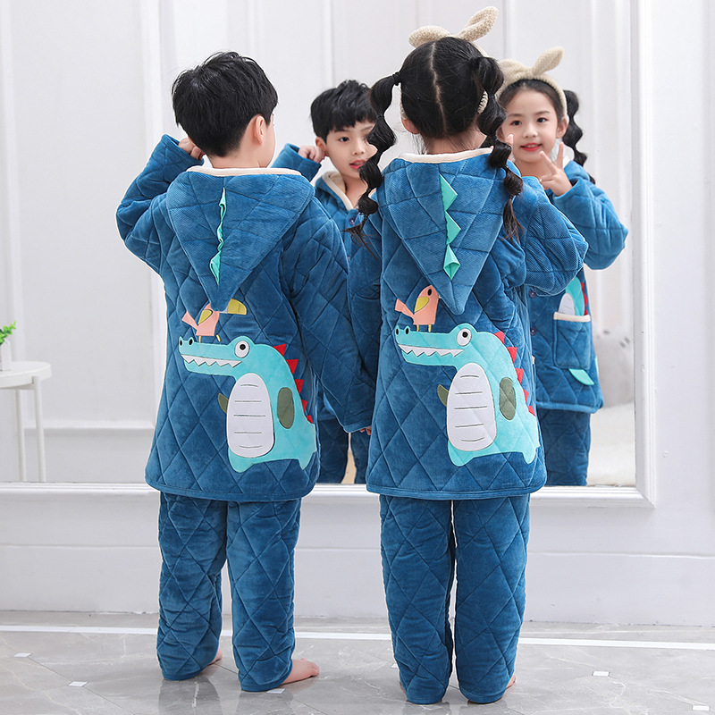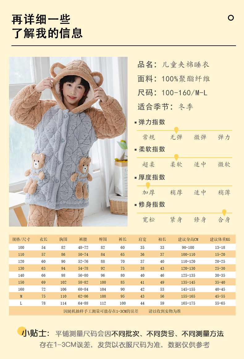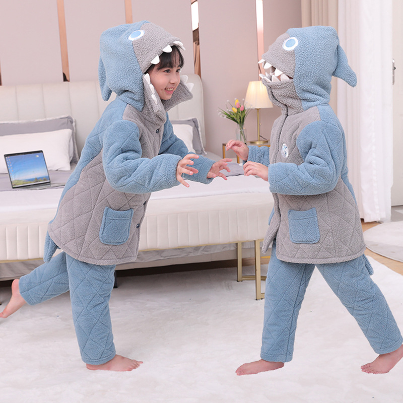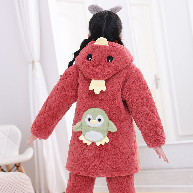 새로운 귀여운 곰 3 층 누비 이불 잠옷 두꺼운 플란넬 가정 옷 세트 기모 후드 강아지 세트