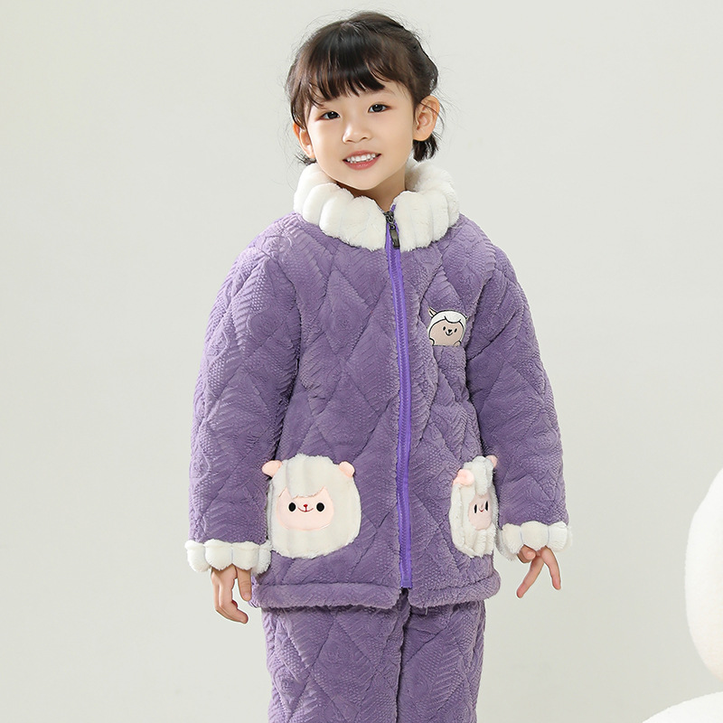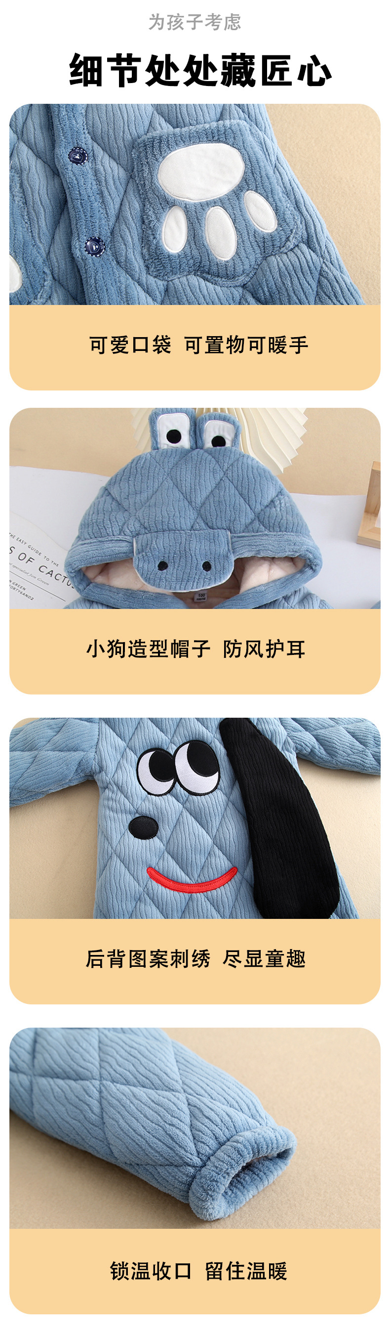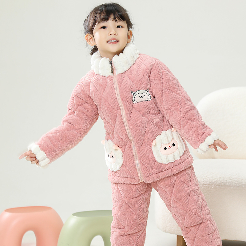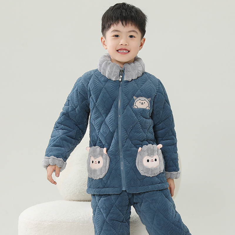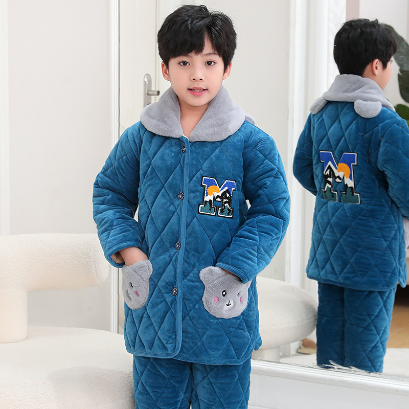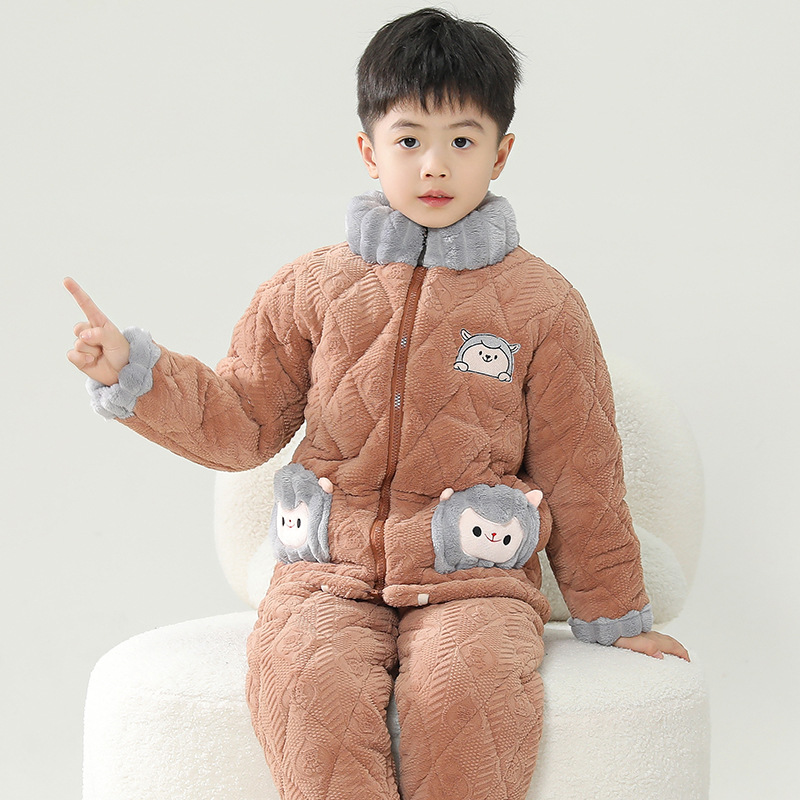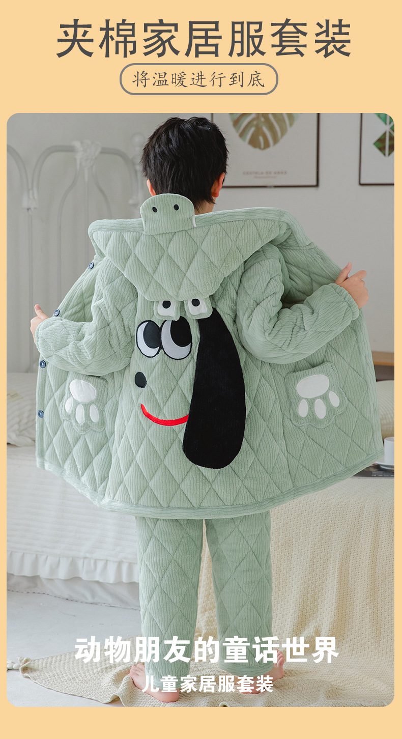 새로운 귀여운 곰 3 층 누비 이불 잠옷 두꺼운 플란넬 가정 옷 세트 기모 후드 강아지 세트