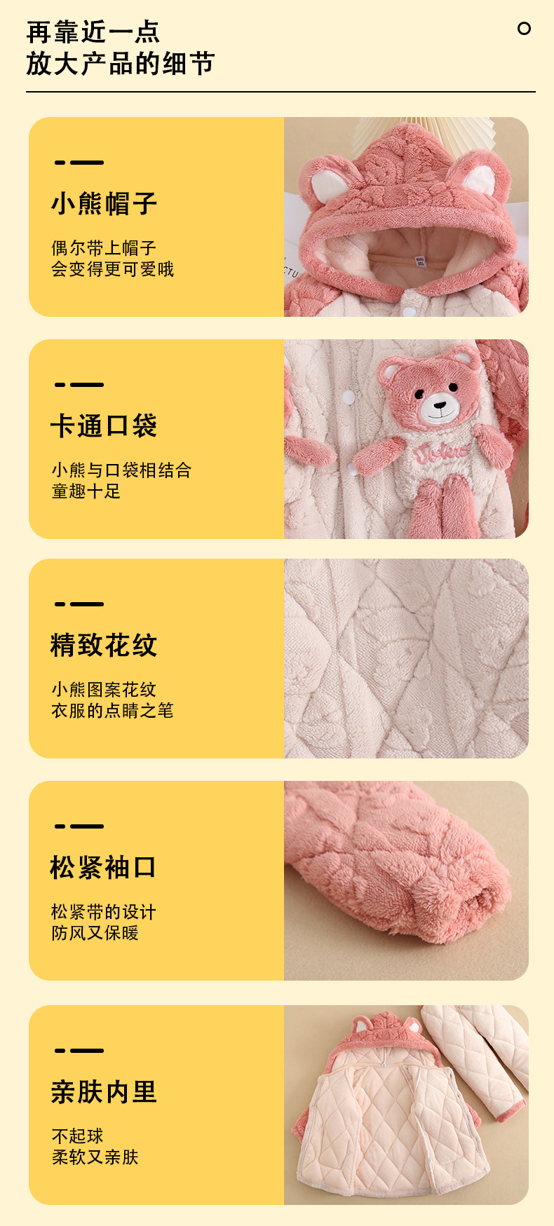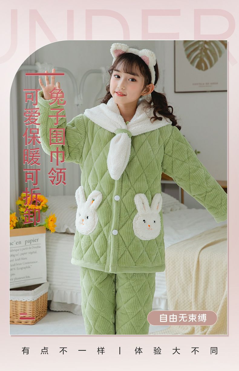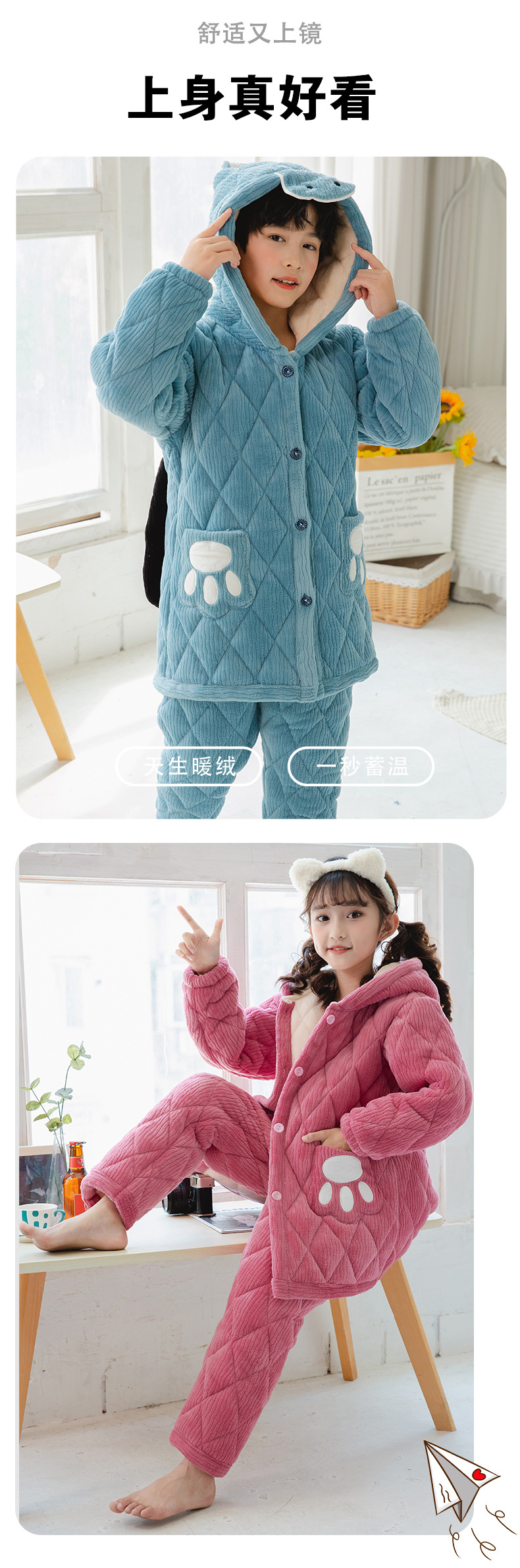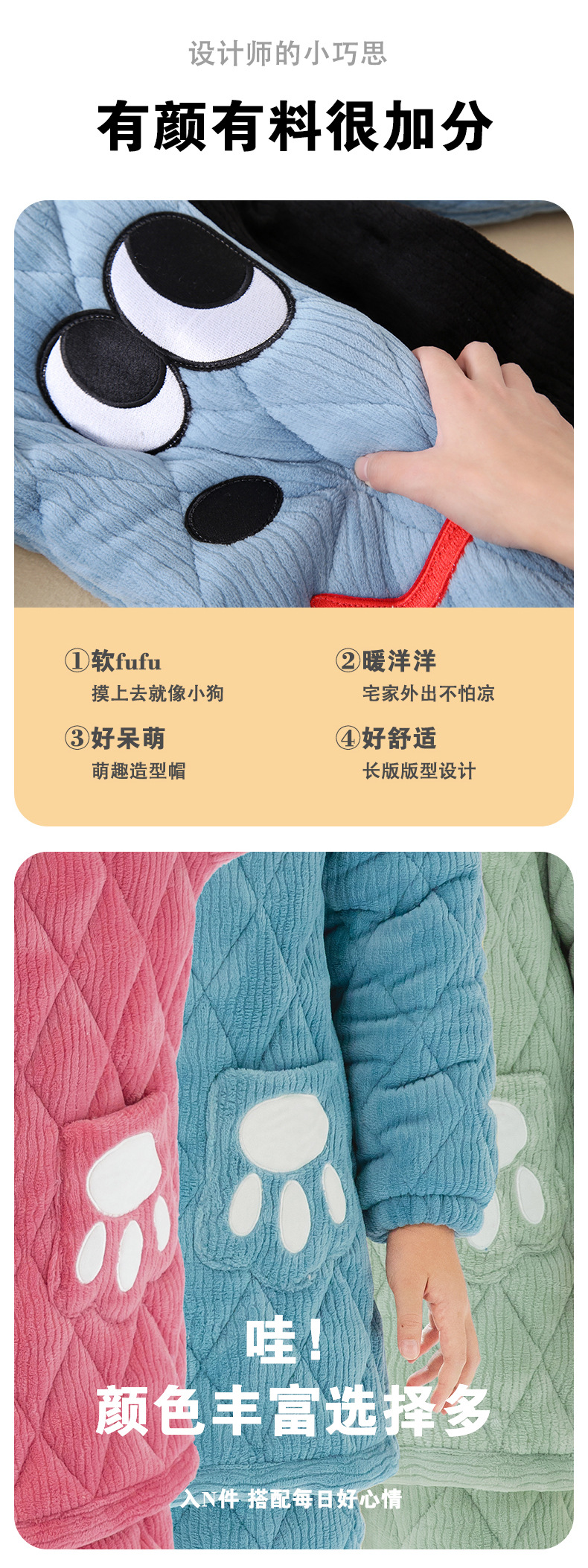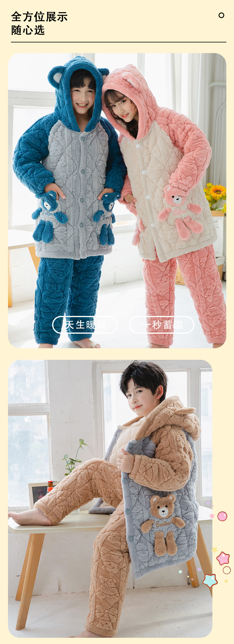 새로운 귀여운 곰 3 층 누비 이불 잠옷 두꺼운 플란넬 가정 옷 세트 기모 후드 강아지 세트스토어 가기