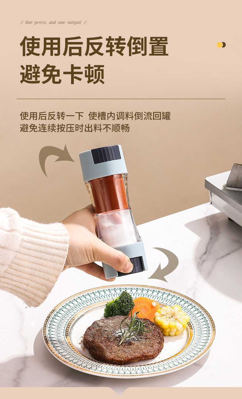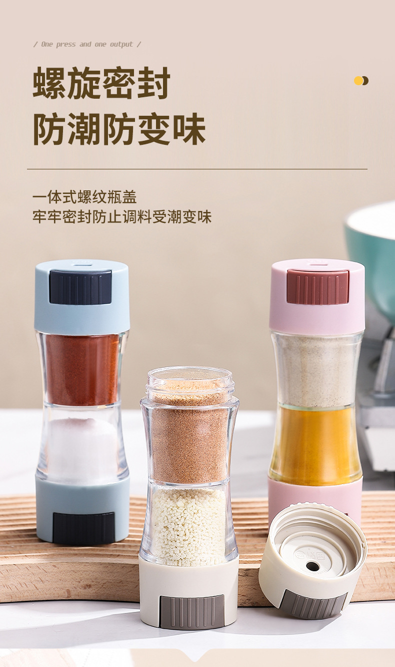 정량적 소금 병 더블 헤드 조미료 탱크 제어 소금 조미료 병 밀봉 방습 소금 상자 주방 가제트 소금 뿌리 탱크 조미료