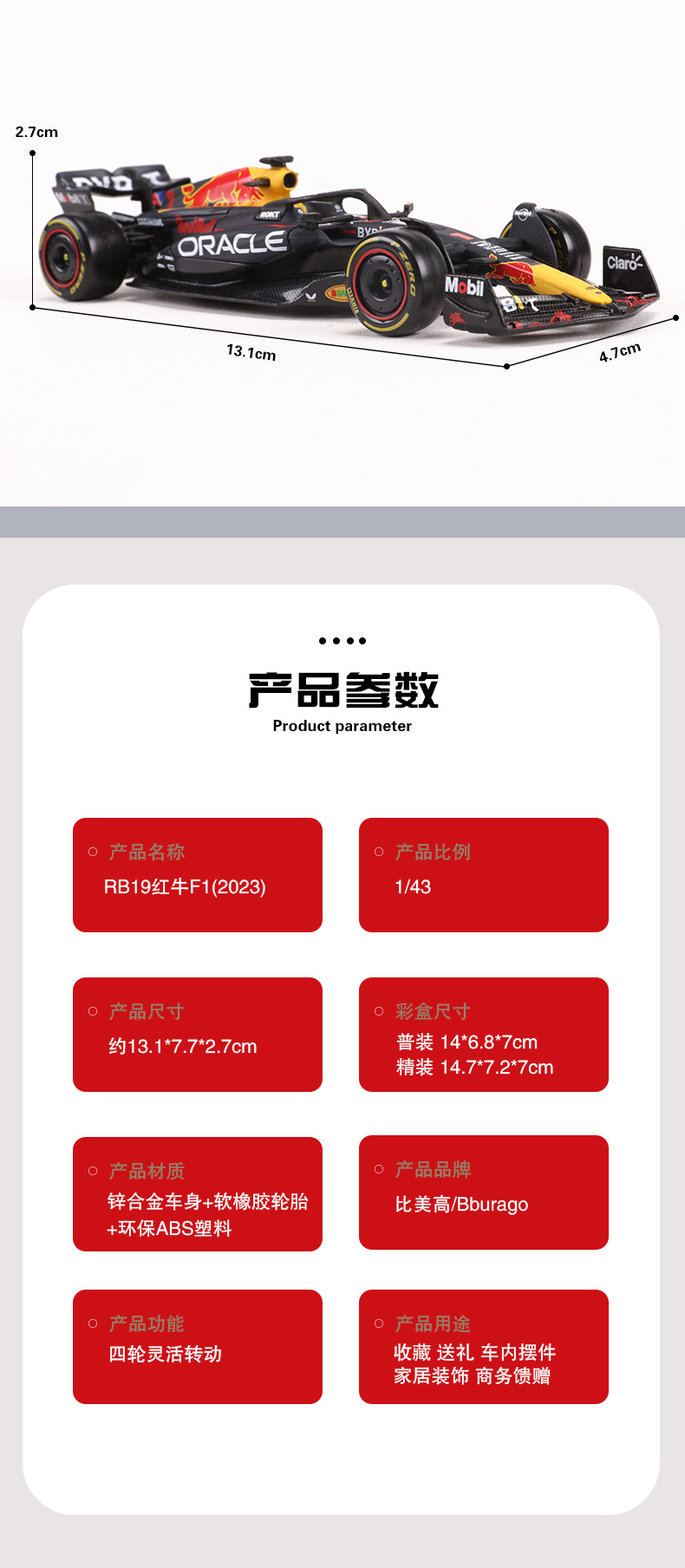 비메오 1:43 레드 불 포뮬러 F1 레이싱 2023 레드 불 F1 RB19 레이싱 모델 Verstappen