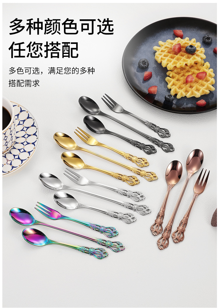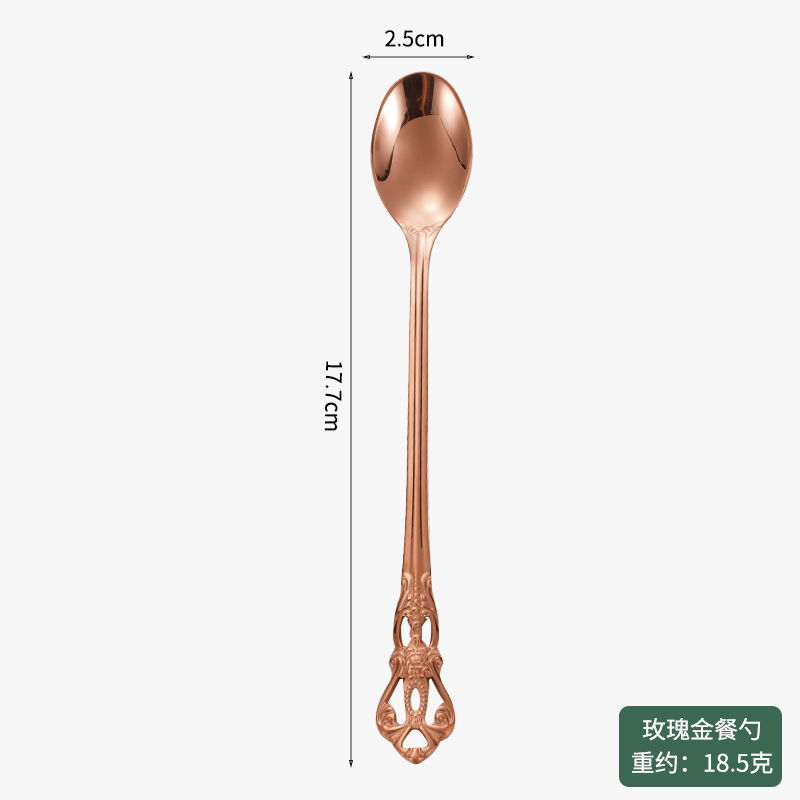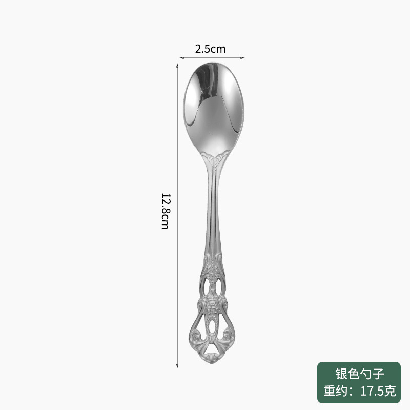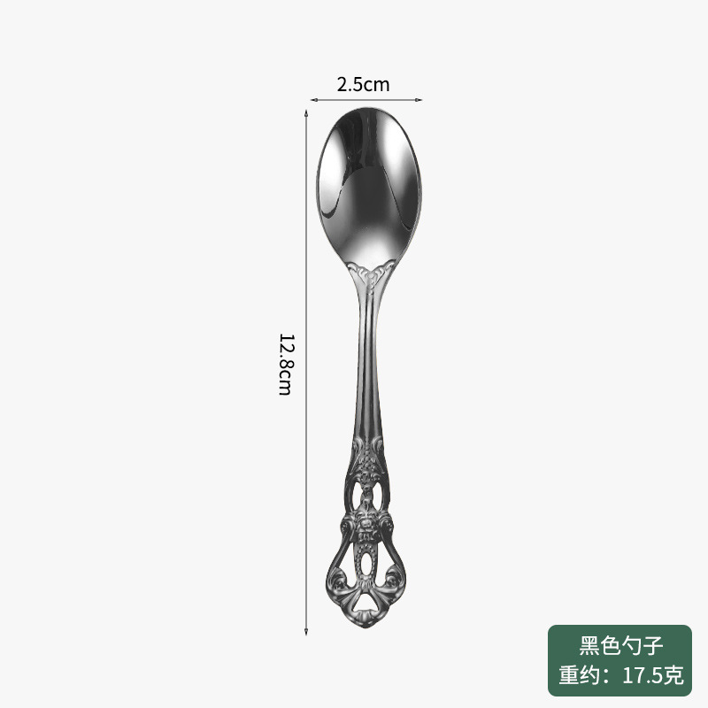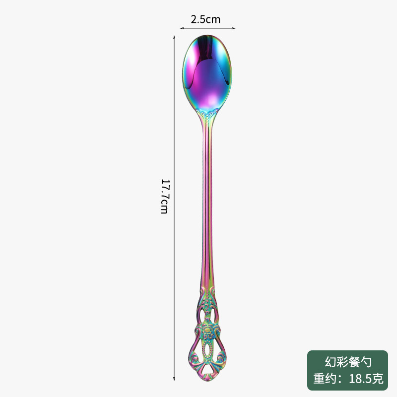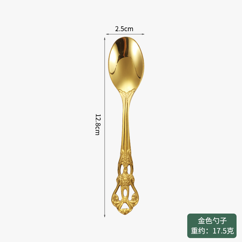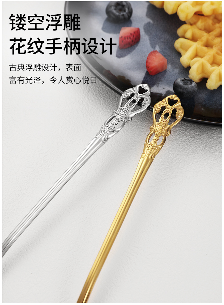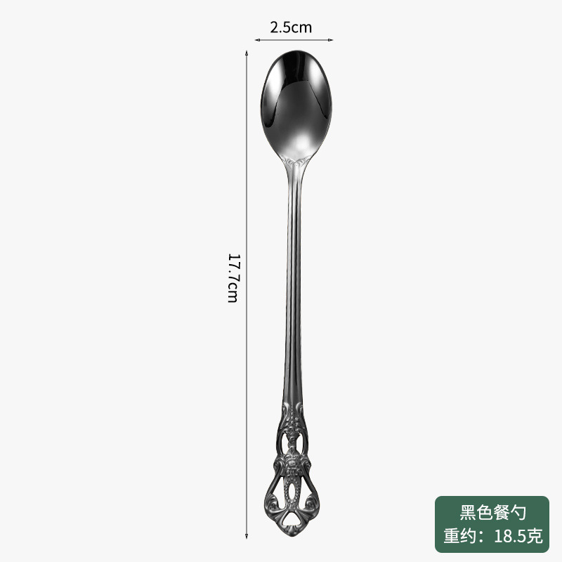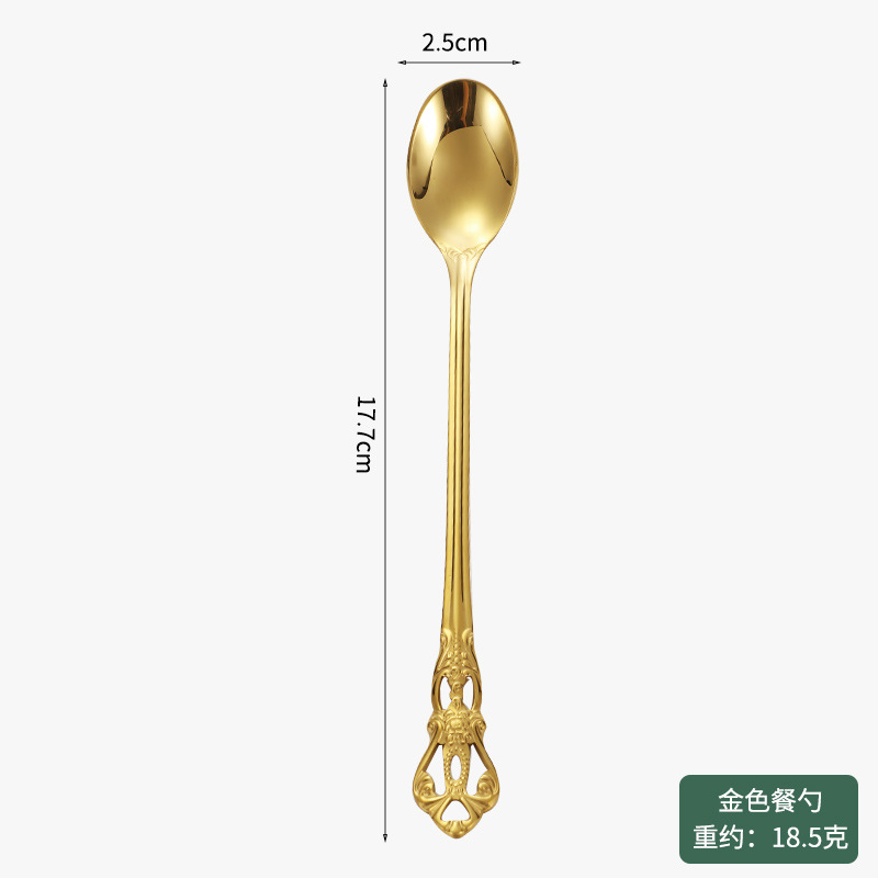 크로스보더 황정 스테인리스 스푼 레트로 레터링 긴 손잡이 아이스크림 스푼 커피 스푼 믹싱 스푼 과일 포크 식기