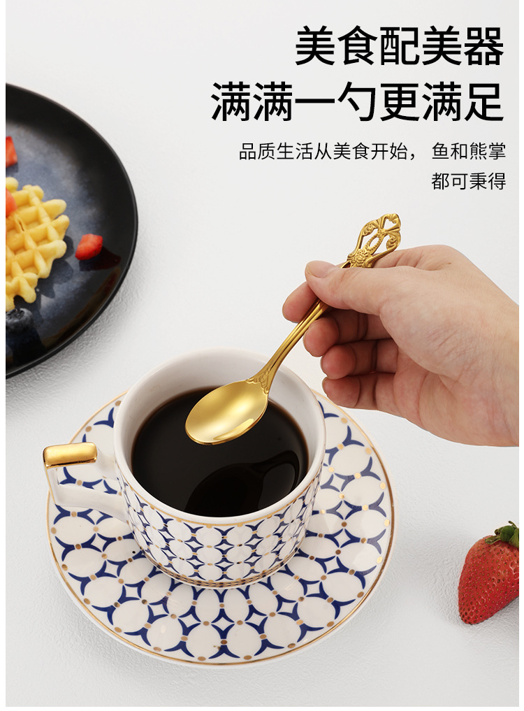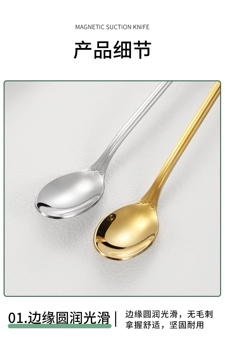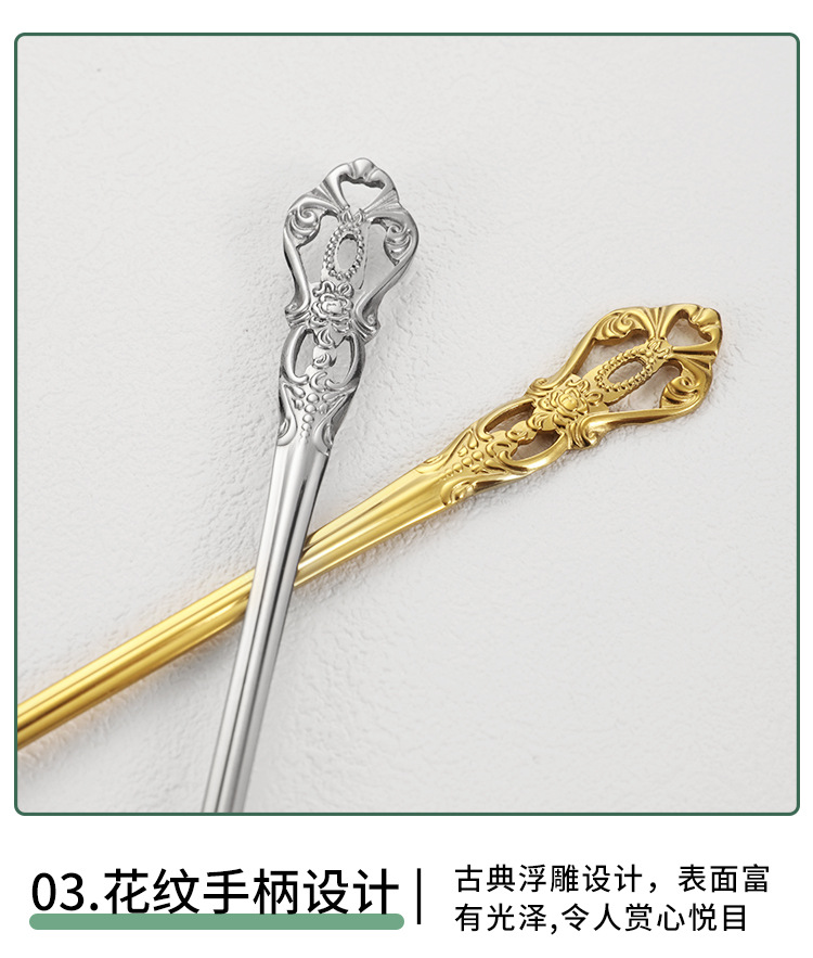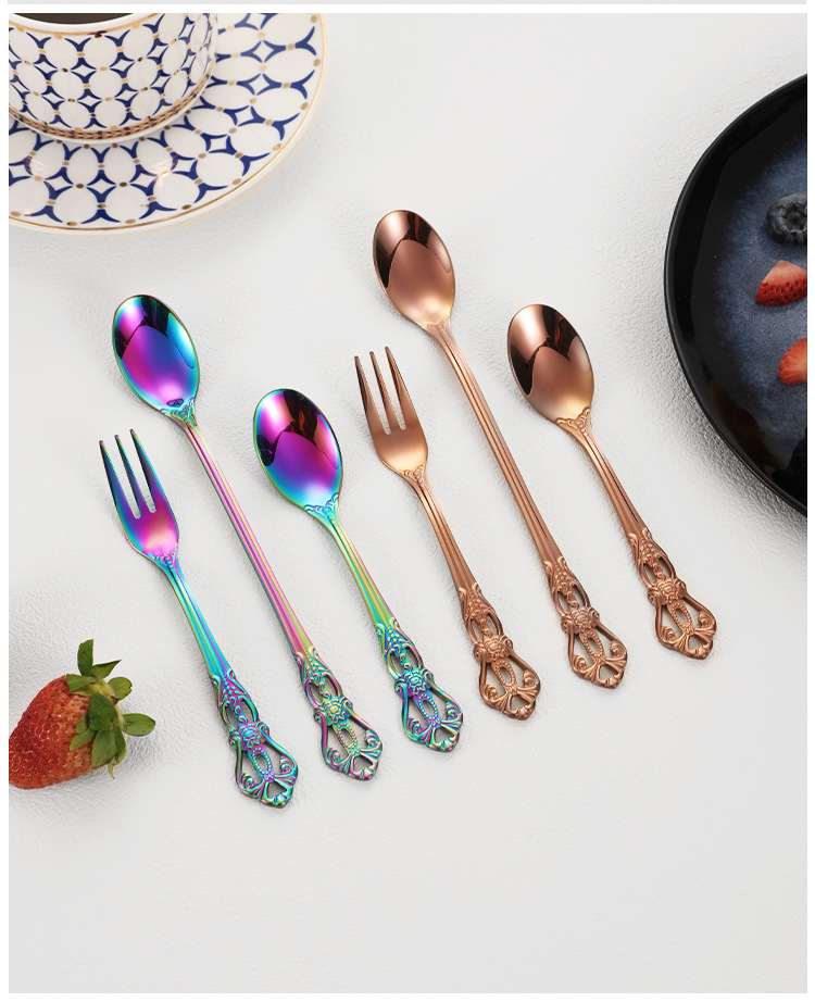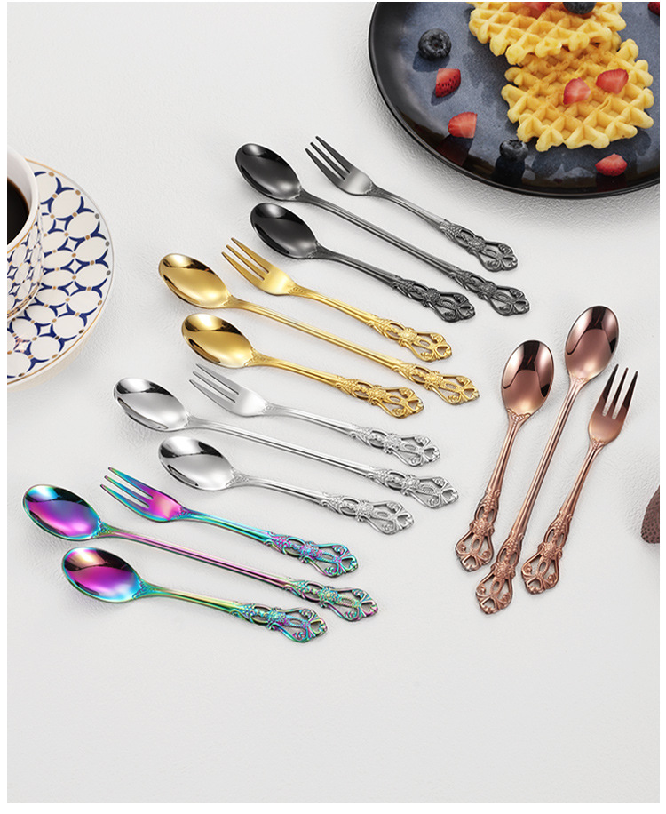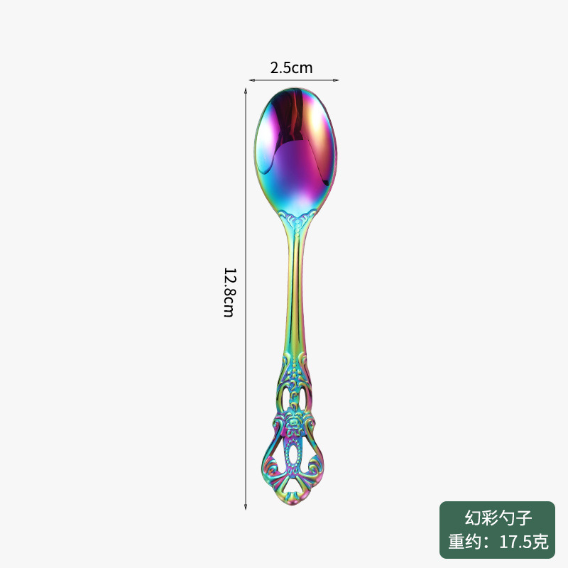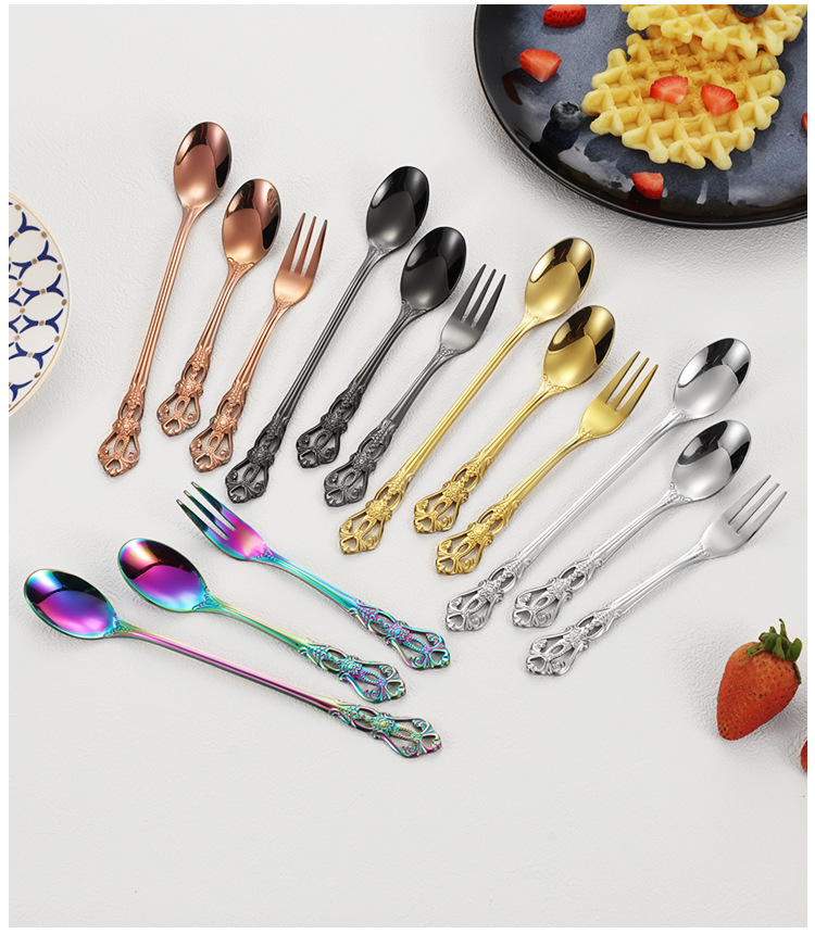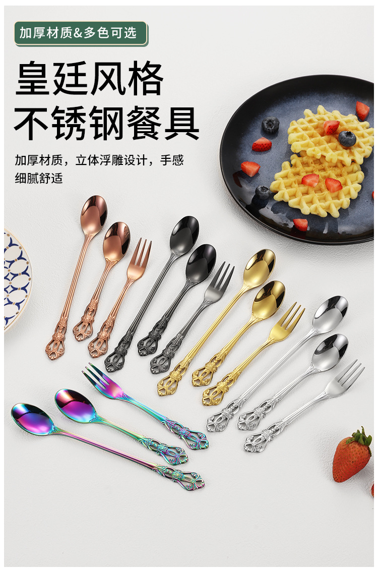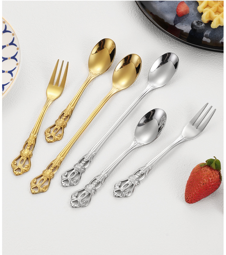 크로스보더 황정 스테인리스 스푼 레트로 레터링 긴 손잡이 아이스크림 스푼 커피 스푼 믹싱 스푼 과일 포크 식기