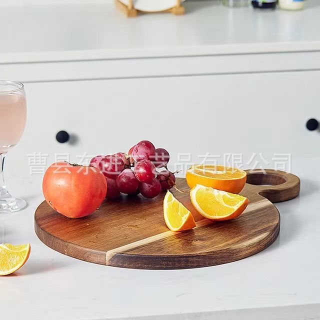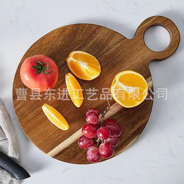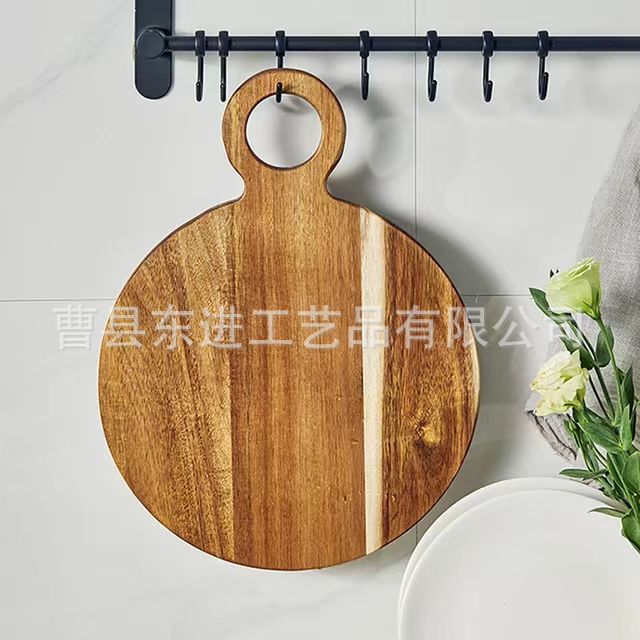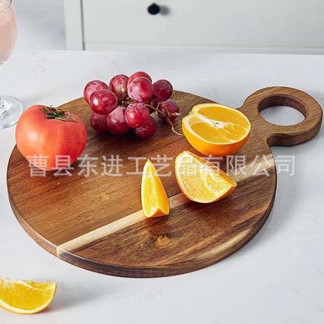 핸들 라운드 치즈 보드 주방 커팅 보드 나무 치즈 보드 나무 치즈 보드 아카시아 나무 빵 보드 간단한 단단한 나무 도마스토어 가기