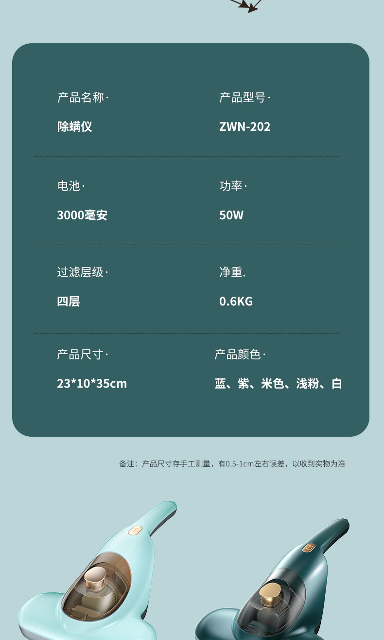 Acarizer 자외선 살균기 가정용 침대 진드기 제거 유물 진공 청소기 침대 흡입 작은 진드기 제거