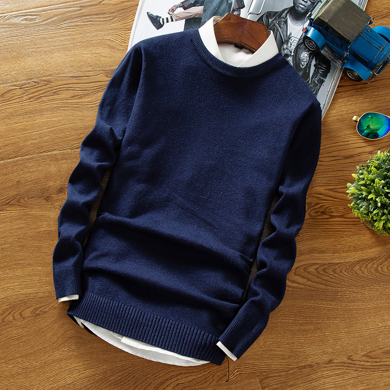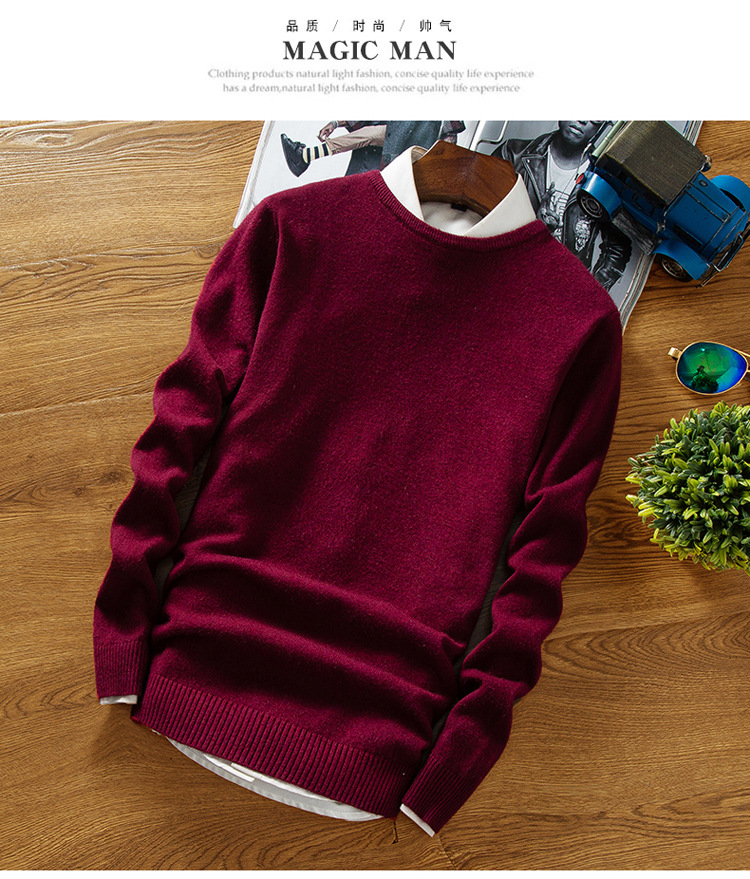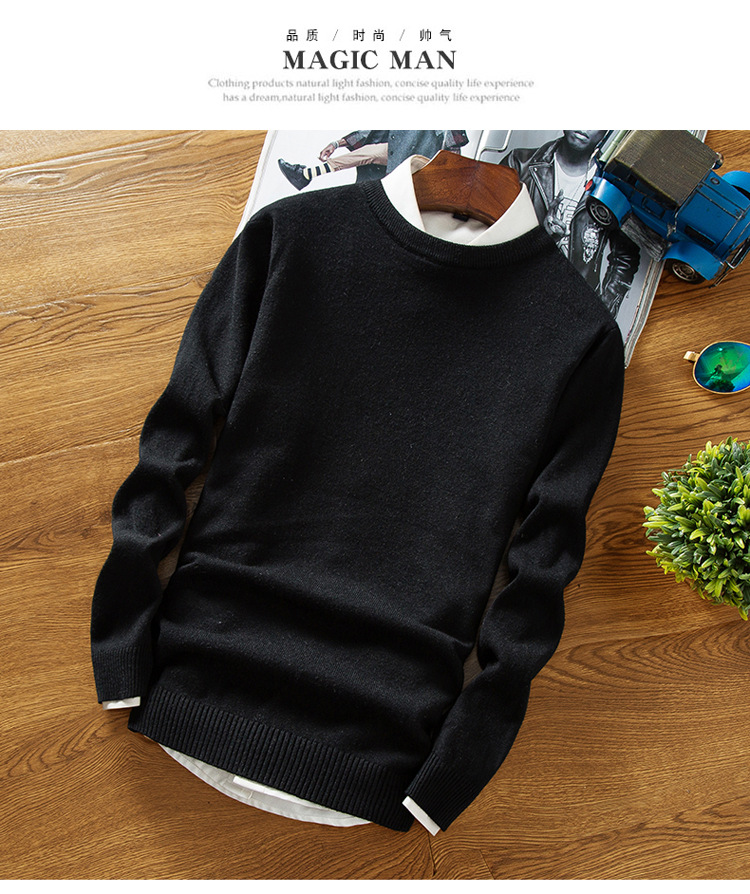 겨울 새로운 남자의 단색 라운드 넥 슬림 핏 스웨터 니트웨어 플러스 사이즈 패션 트렌드 캐주얼 베이스 셔츠스토어 가기
