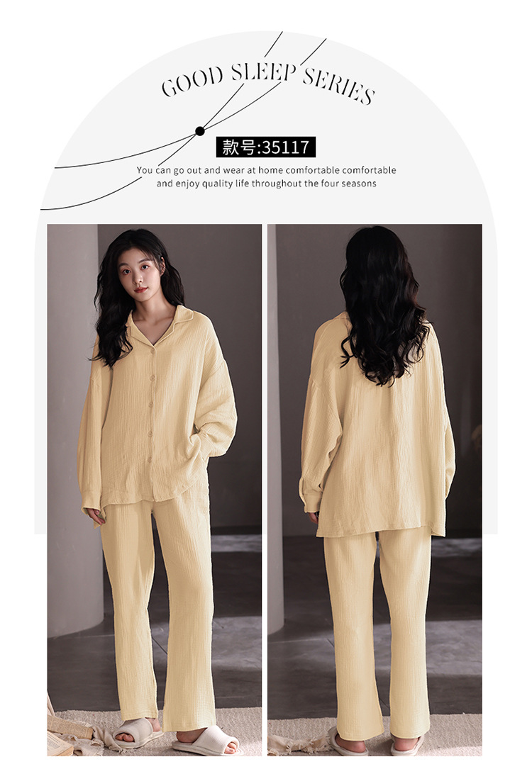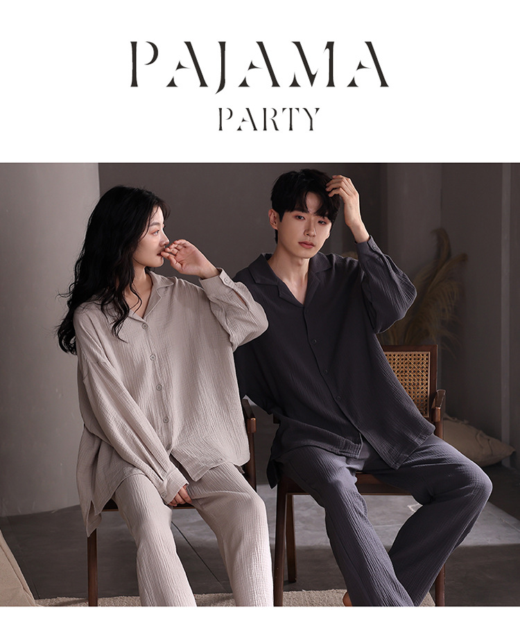 2025 봄 새 커플 잠옷 여성 긴팔 남성 가을 새로운 크레페 정장 코튼 옷깃 카디건 대형스토어 가기