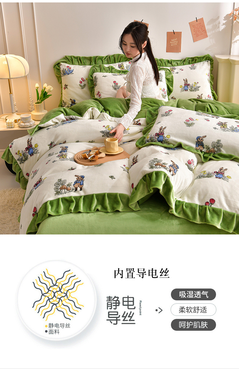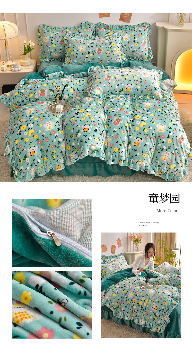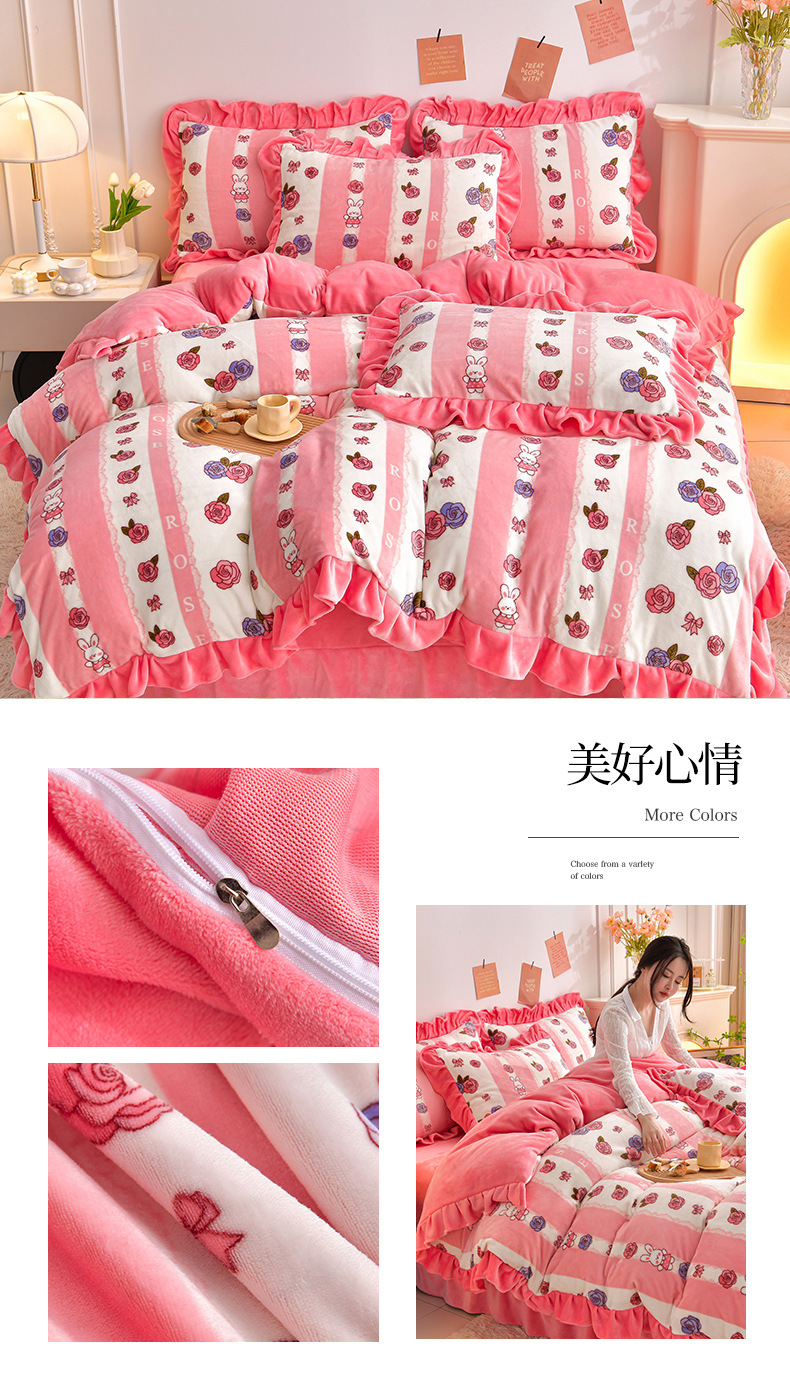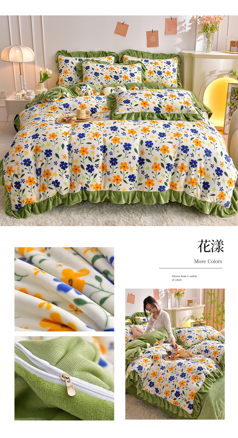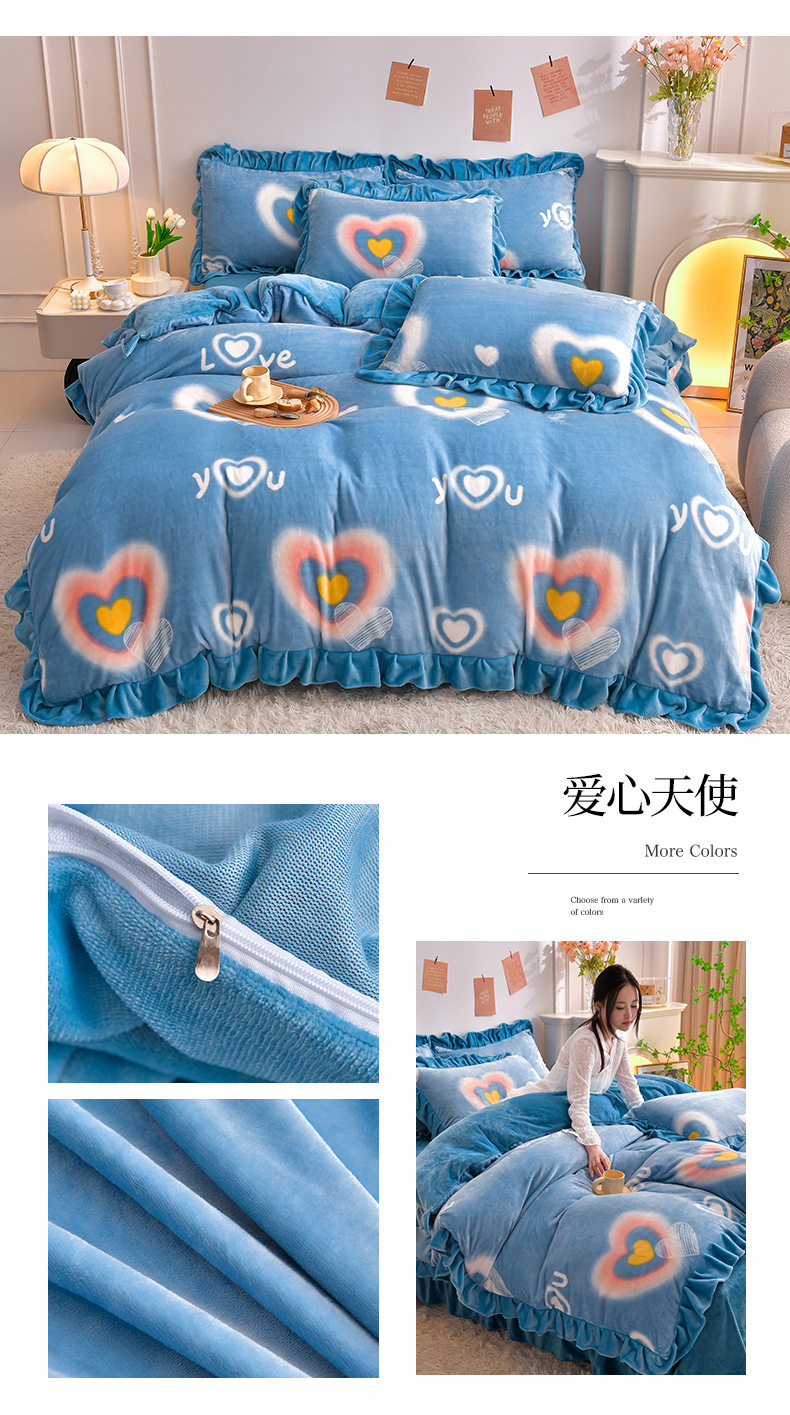 공장 도매 레이스 밀크 벨벳 4 종 세트 두꺼운 가을과 겨울 폭발 키트 공주 바람 침구 벨벳 4 종 세트스토어 가기