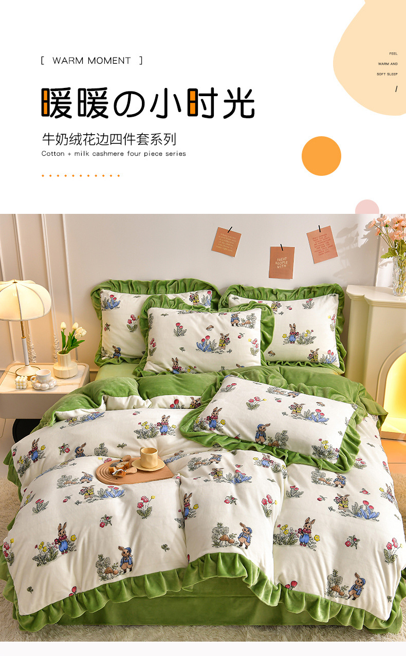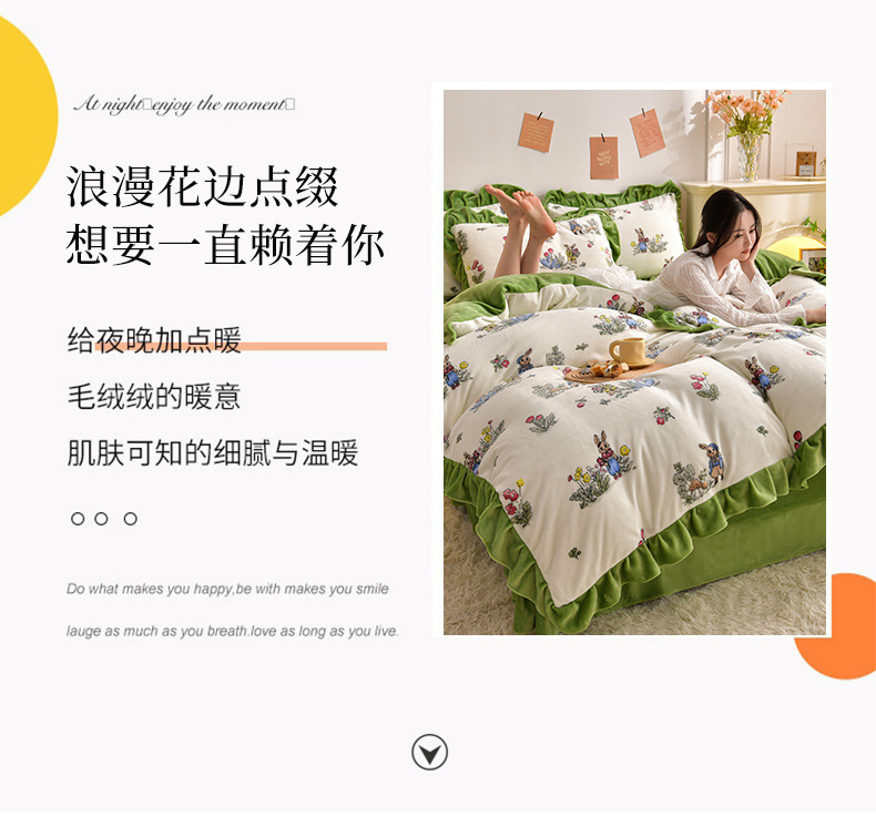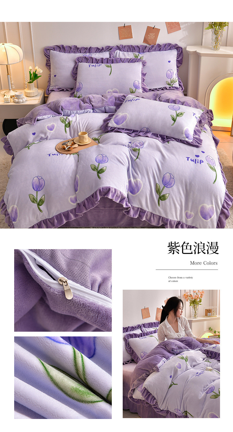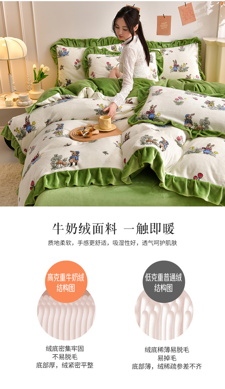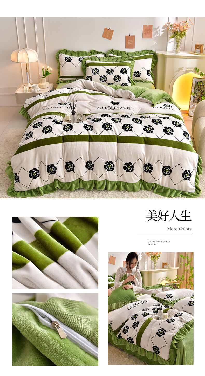공장 도매 레이스 밀크 벨벳 4 종 세트 두꺼운 가을과 겨울 폭발 키트 공주 바람 침구 벨벳 4 종 세트스토어 가기
