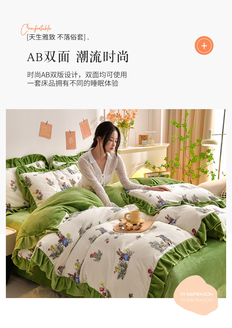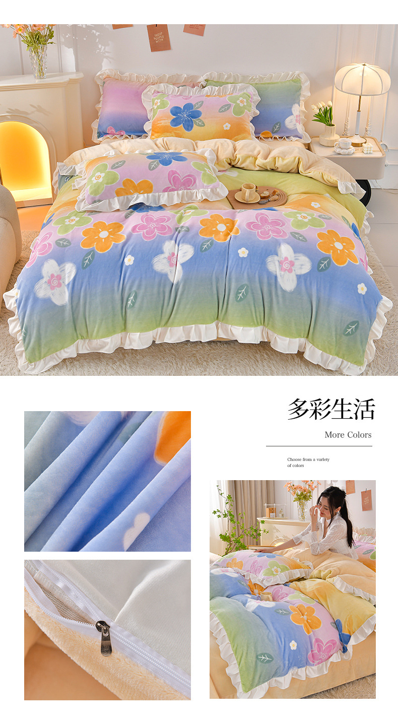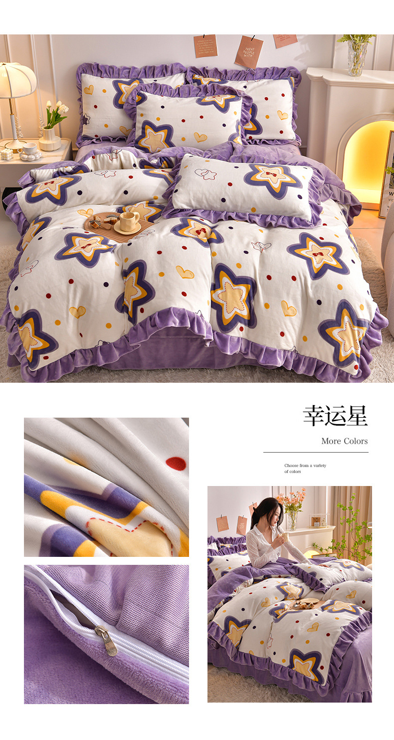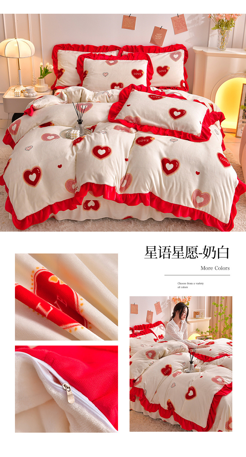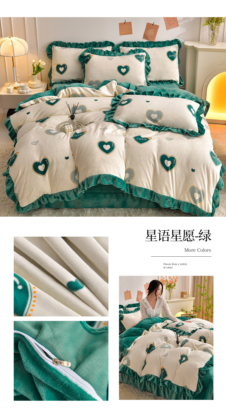 공장 도매 레이스 밀크 벨벳 4 종 세트 두꺼운 가을과 겨울 폭발 키트 공주 바람 침구 벨벳 4 종 세트스토어 가기