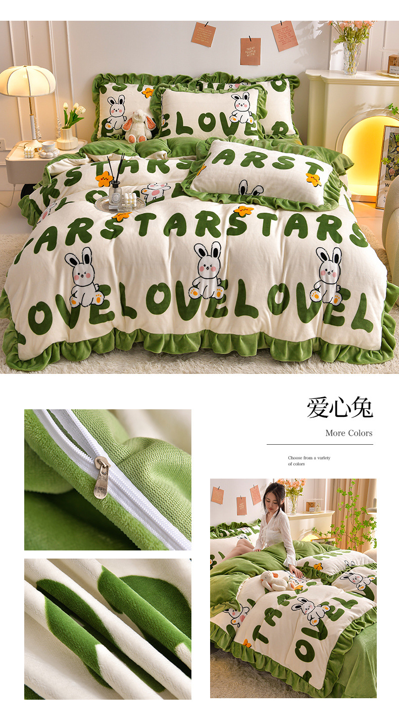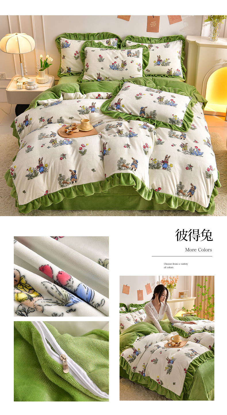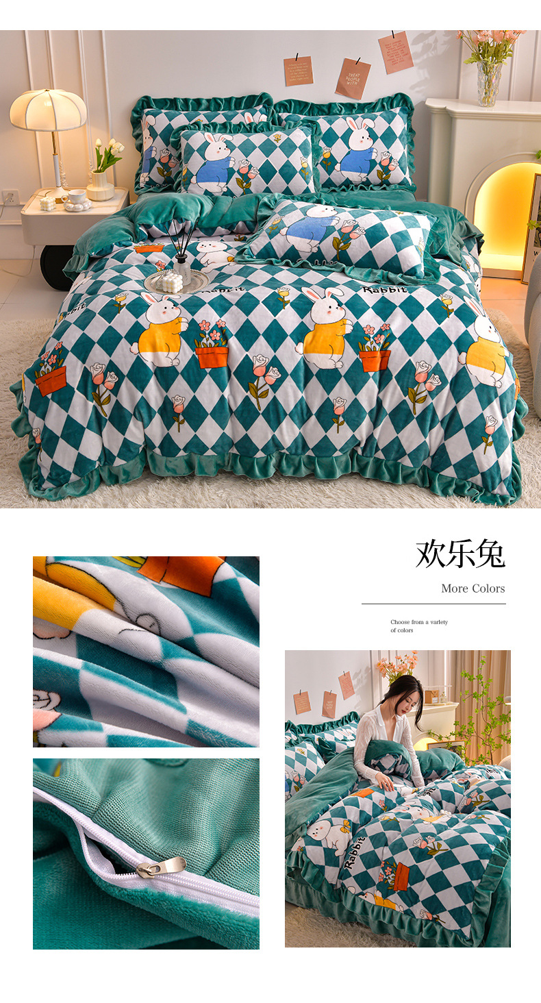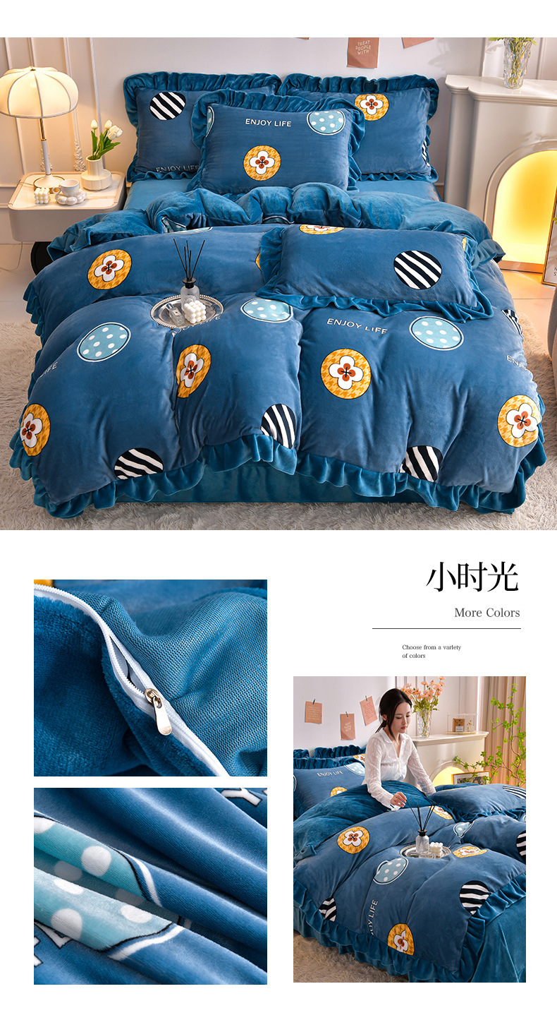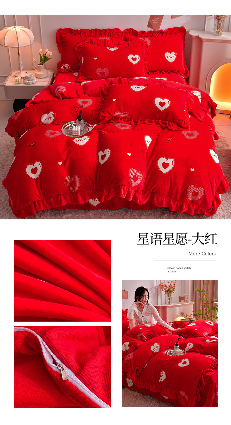 공장 도매 레이스 밀크 벨벳 4 종 세트 두꺼운 가을과 겨울 폭발 키트 공주 바람 침구 벨벳 4 종 세트스토어 가기