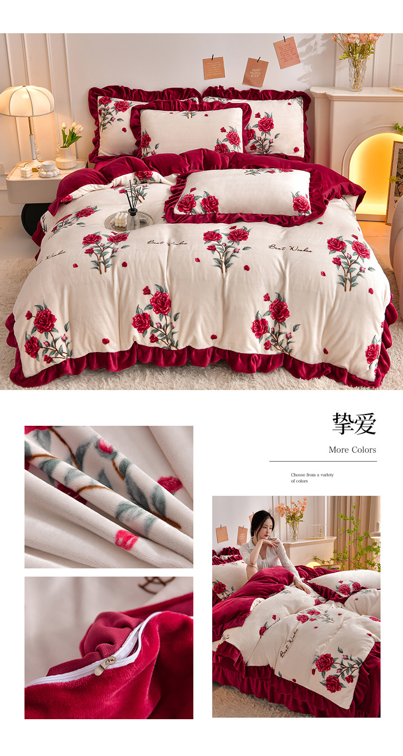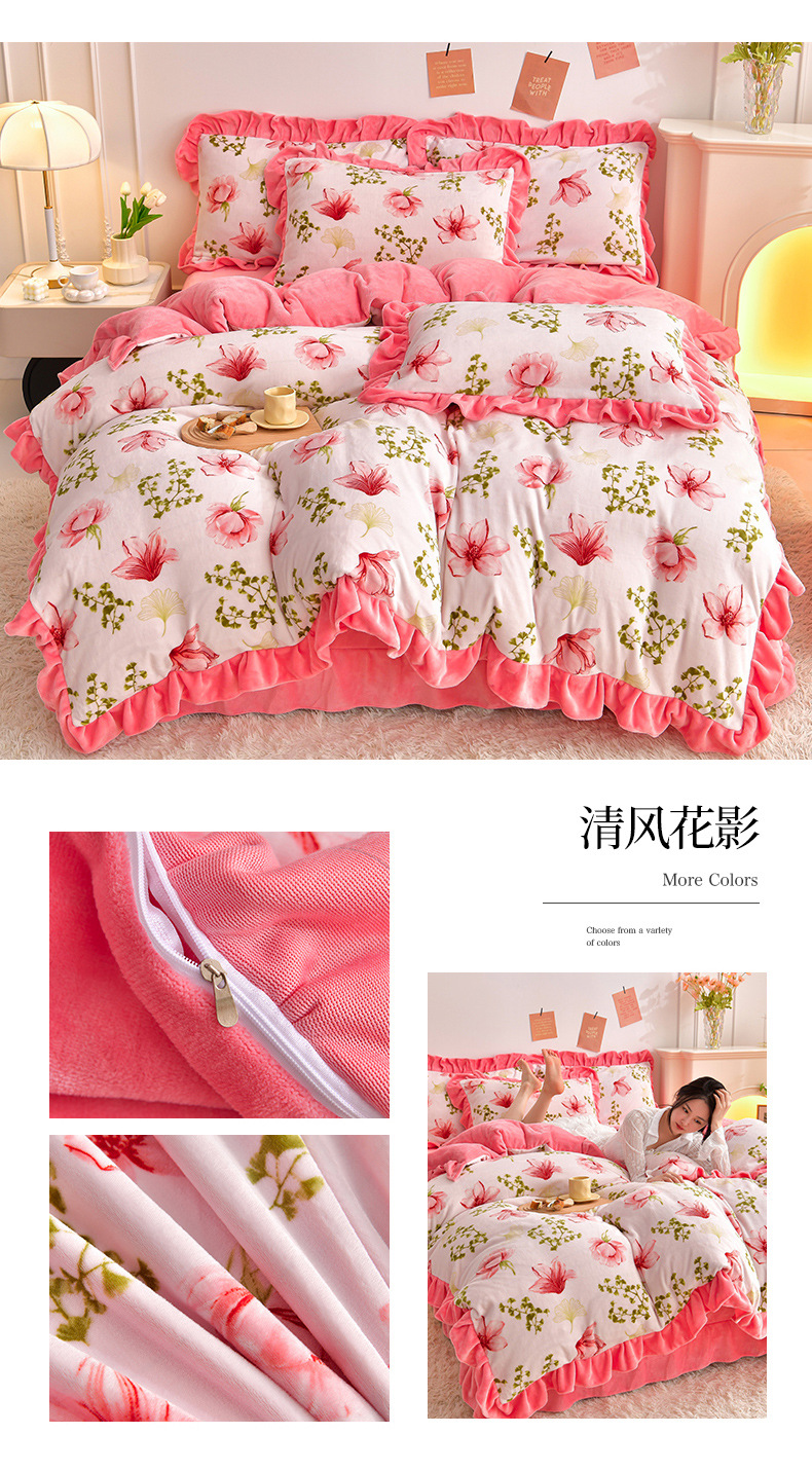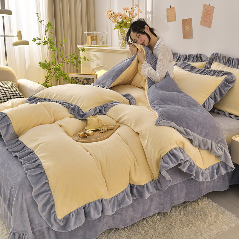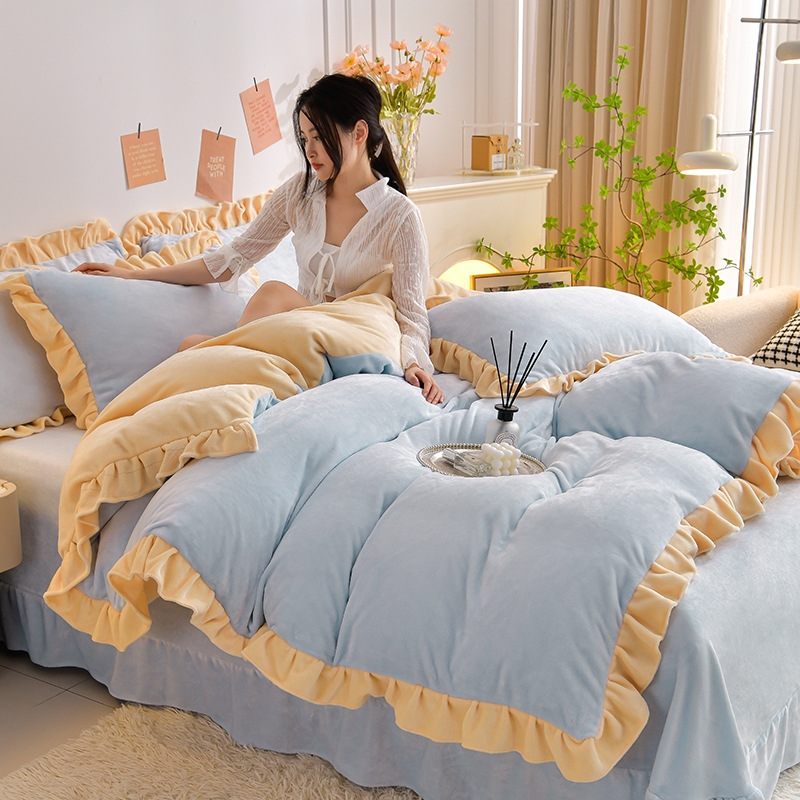 공장 도매 레이스 밀크 벨벳 4 종 세트 두꺼운 가을과 겨울 폭발 키트 공주 바람 침구 벨벳 4 종 세트