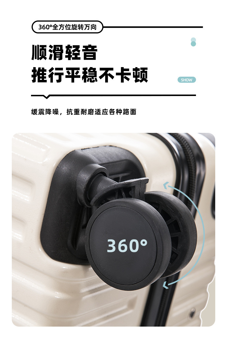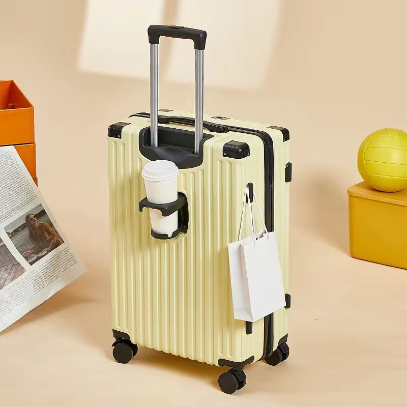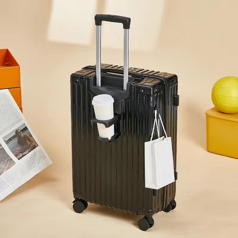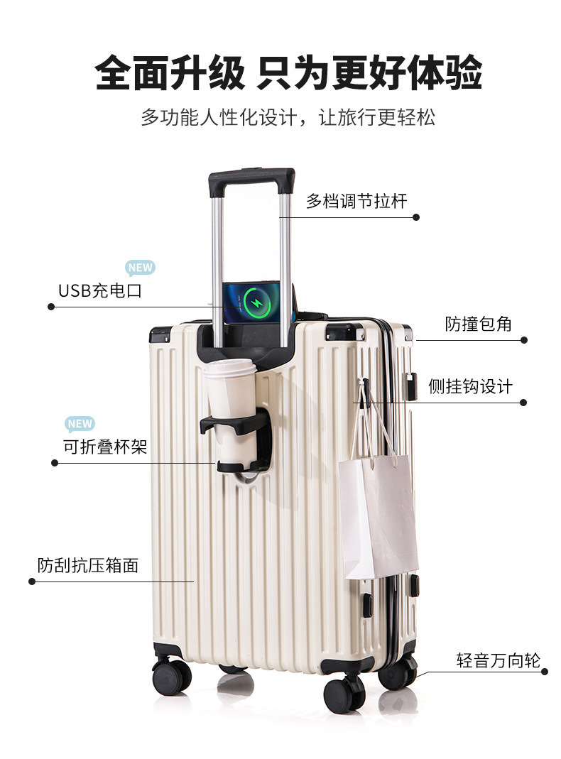 수하물 케이스 물 컵 홀더 가방 USB 충전 포트 트롤리 케이스 음소거 범용 휠 암호 상자 가방 후크 상자