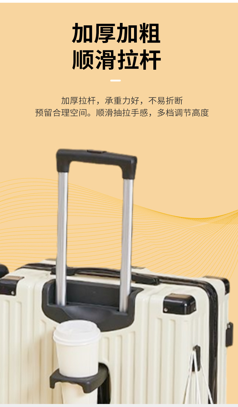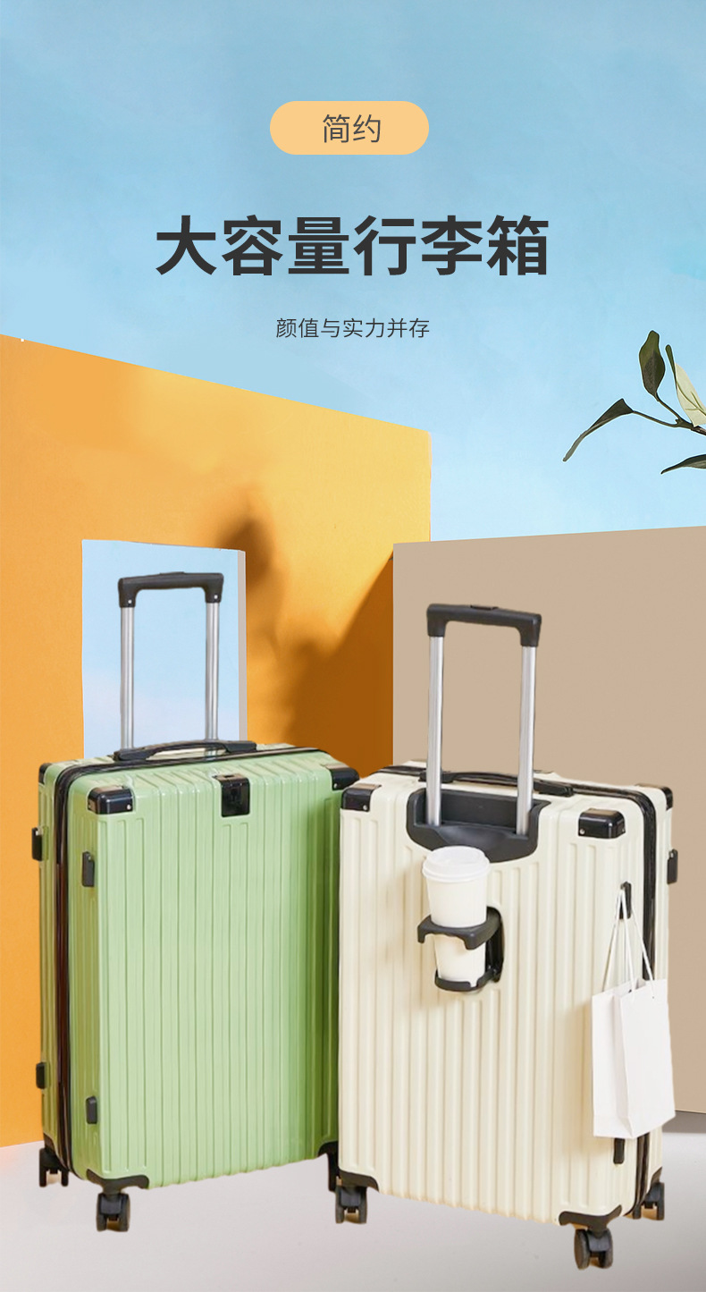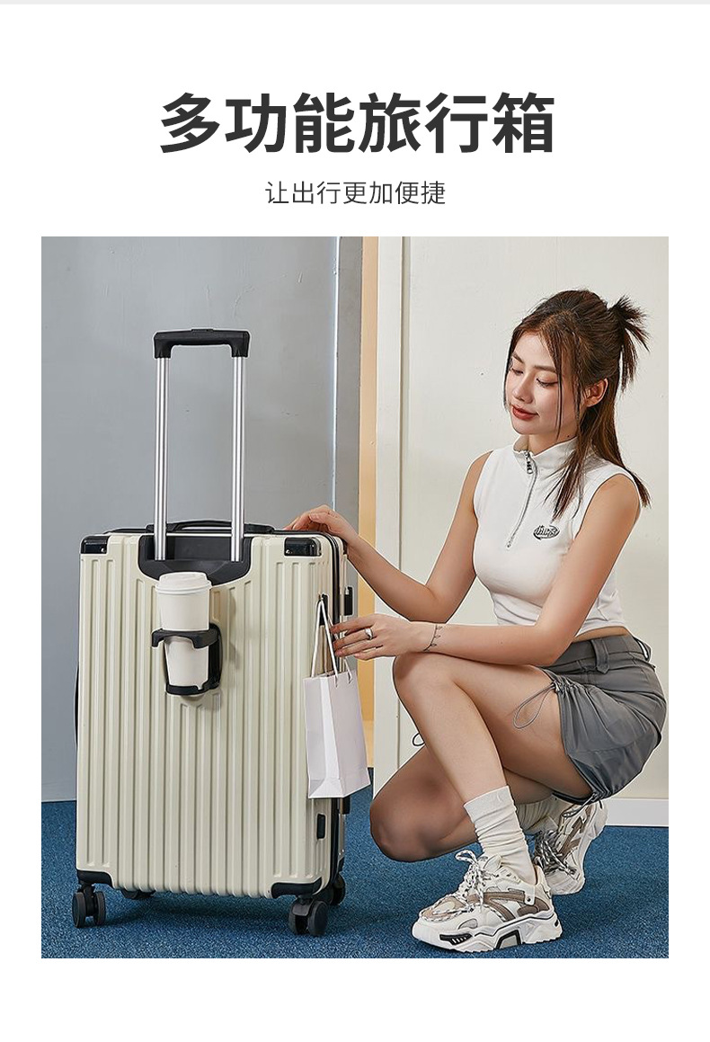 수하물 케이스 물 컵 홀더 가방 USB 충전 포트 트롤리 케이스 음소거 범용 휠 암호 상자 가방 후크 상자스토어 가기