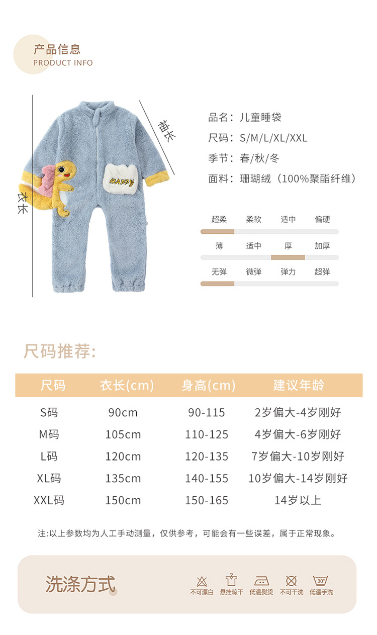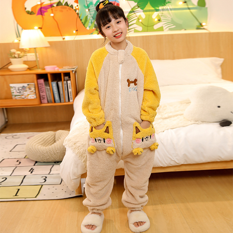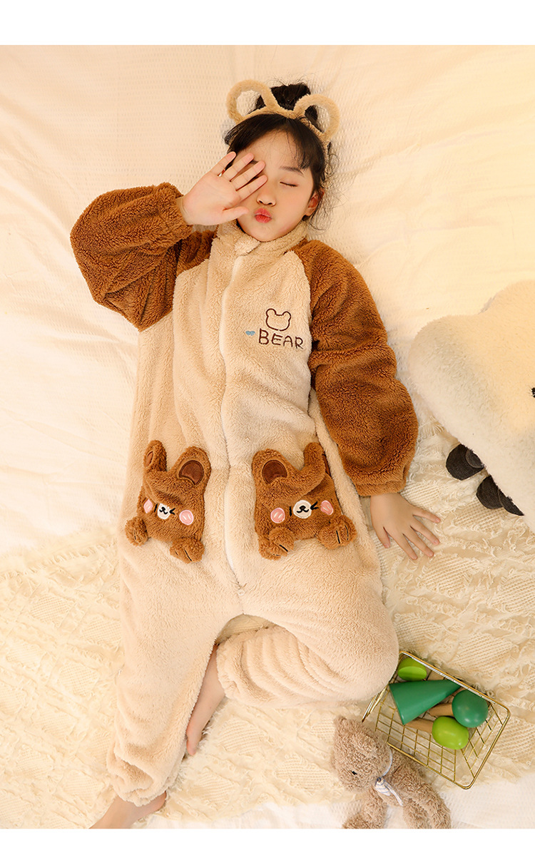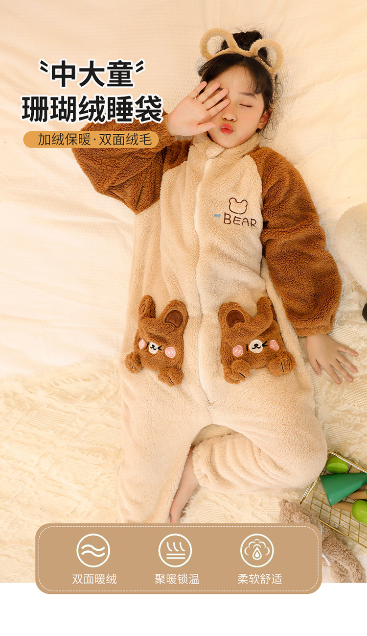 어린이 플란넬 침낭 대형 어린이 가을과 겨울 두꺼운 아기 소년의 산호 양털 킥 방지 잠옷스토어 가기