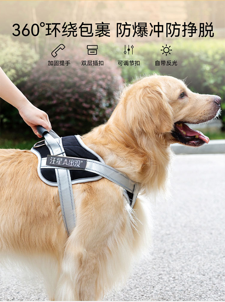 애완 동물 중형 및 대형 개 폭발 방지 벨크로 개 가슴 스트랩 큰 개 골든 리트리버 견인 로프 걷는 밧줄스토어 가기
