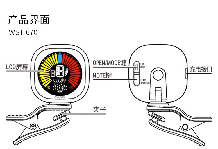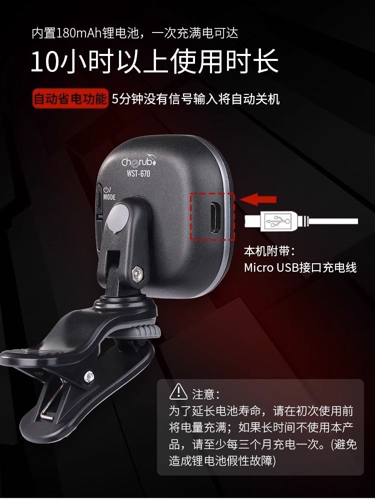 리틀 엔젤 607 기타 튜너 충전식 전문 우쿨렐레 바이올린 자동 특수 튜너