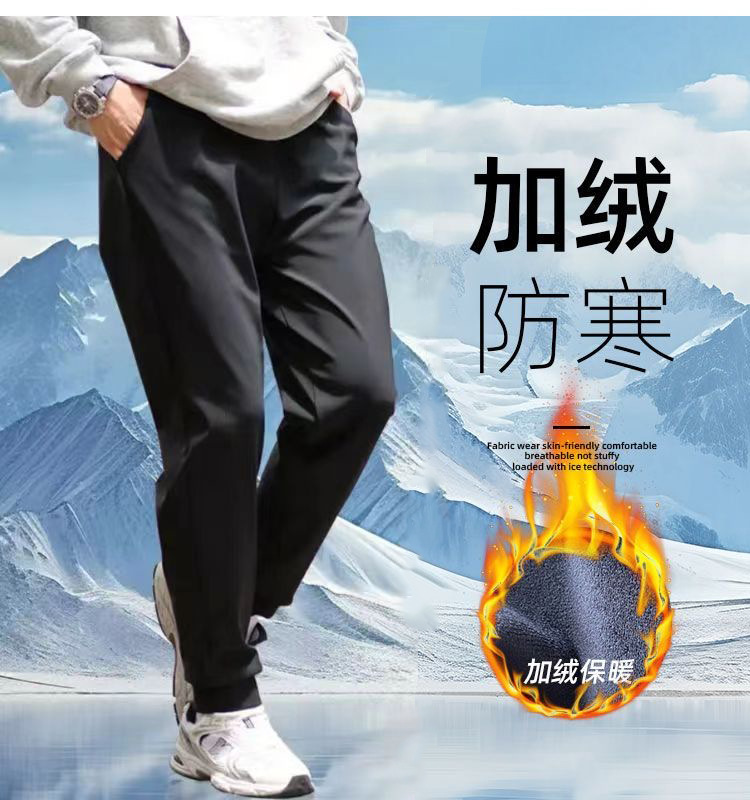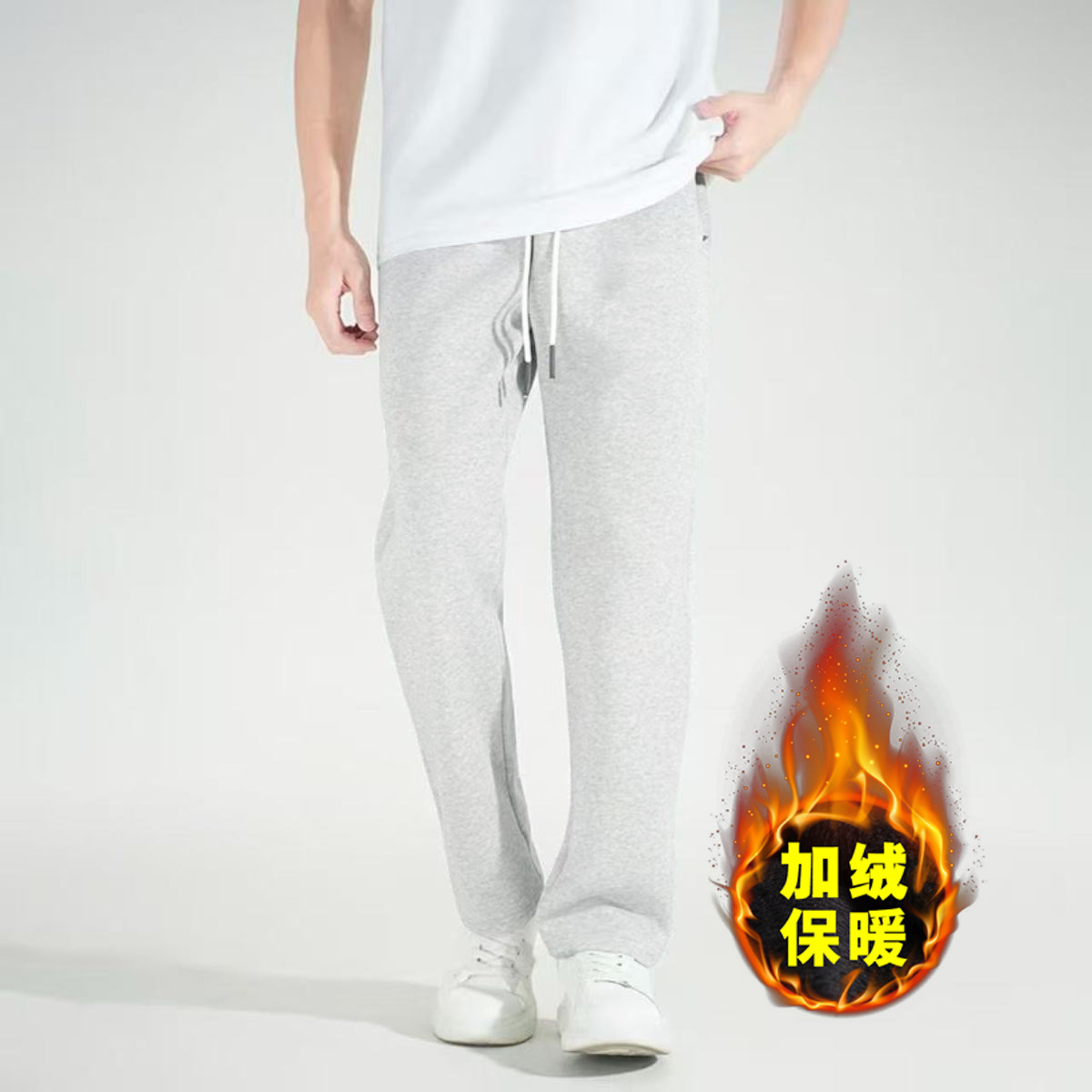 플리스 안감 두꺼운 일자핏 가을 겨울 남성 캐주얼 팬츠, 빅사이즈 슬림핏 스포츠 팬츠, 한국 스타일 트렌디 루즈핏 롱 팬츠
