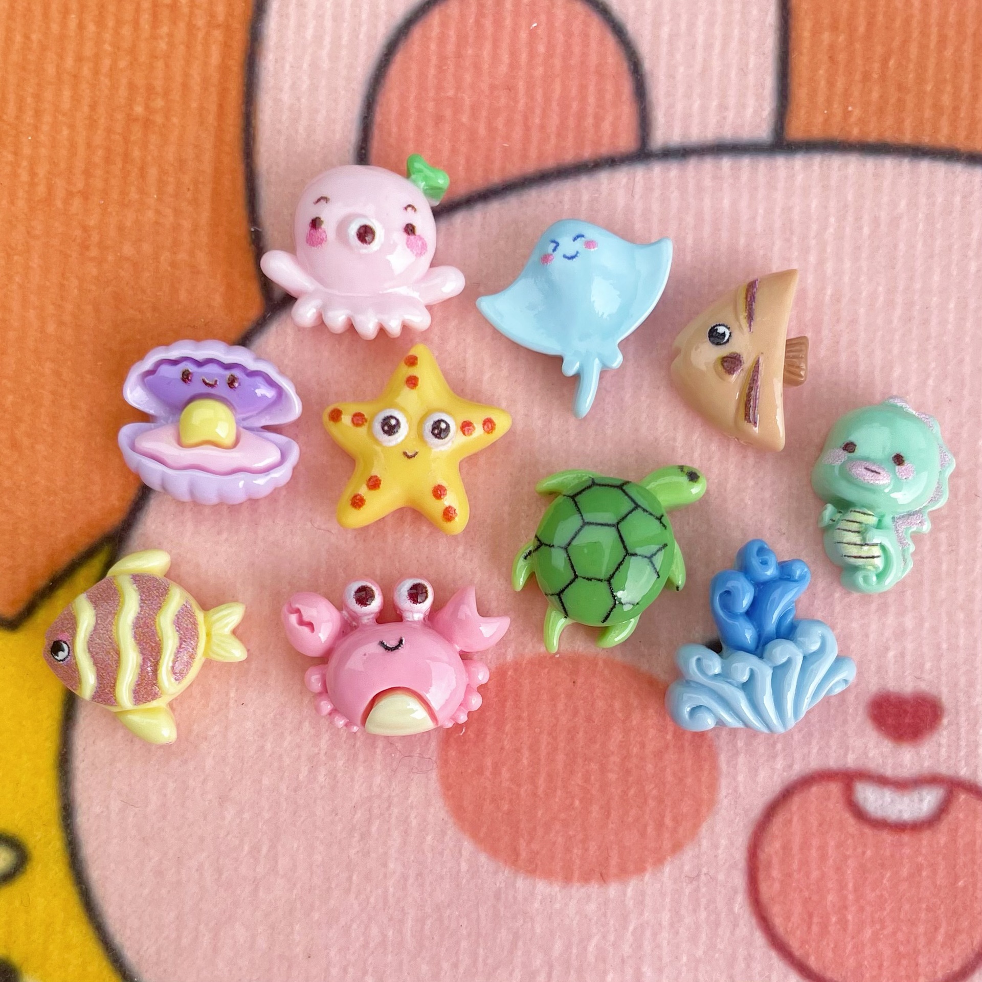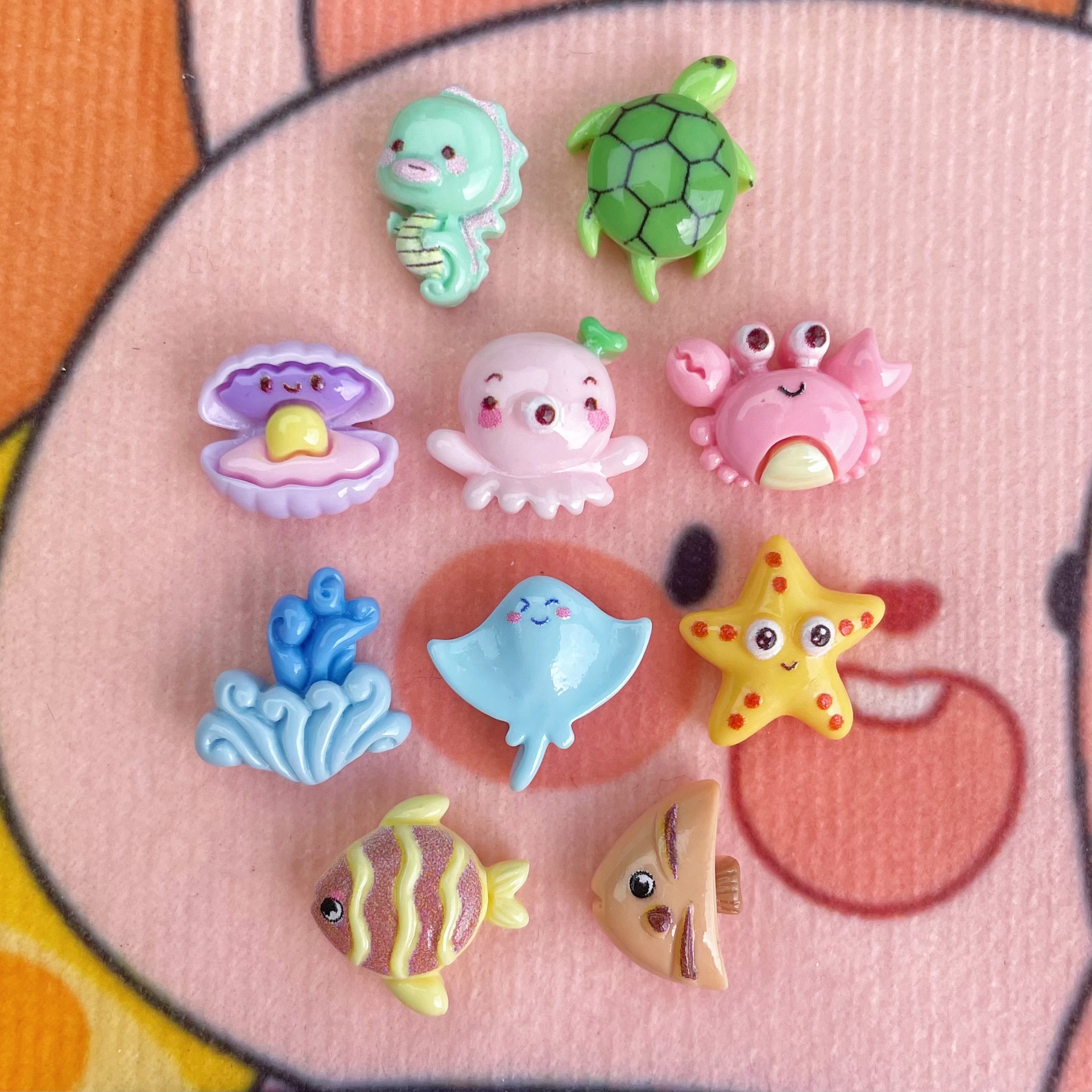 미니 스몰 사이즈 오션 시리즈 수지 액세서리 게 문어 불가사리 만화 헤어 액세서리 패치 액세서리 휴대 전화 케이스 우유스토어 가기