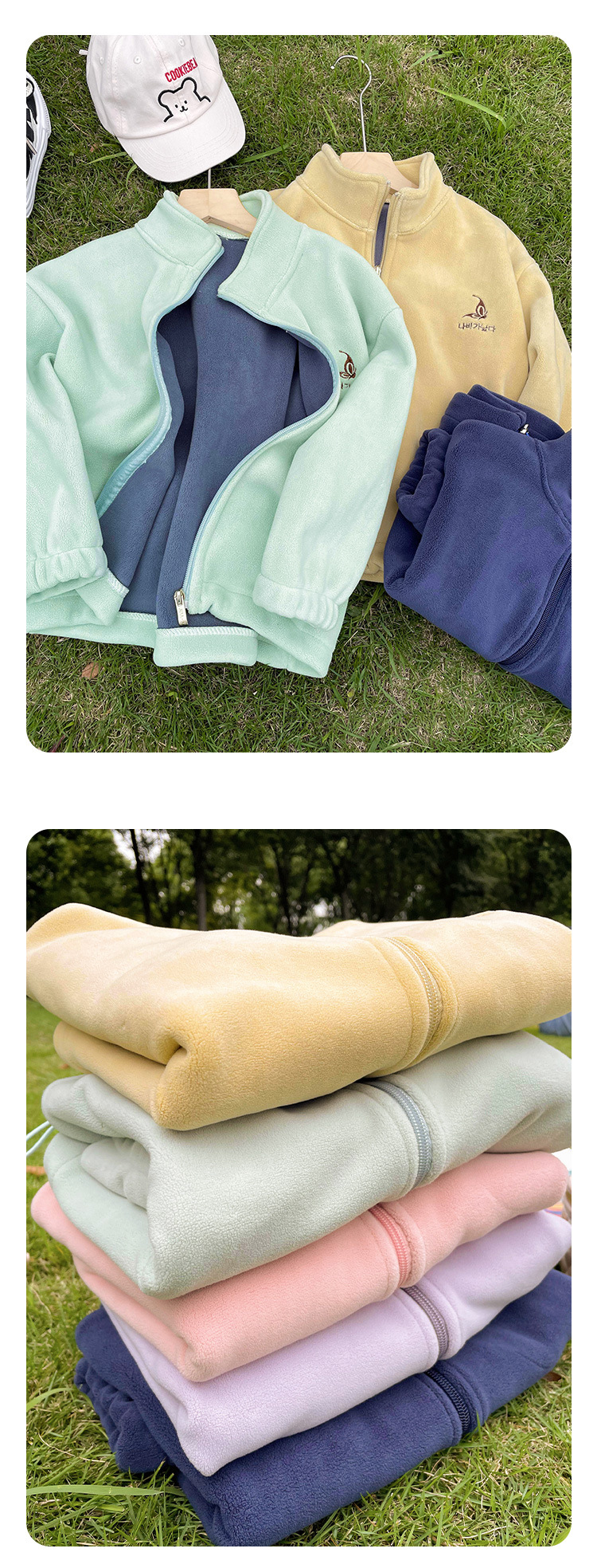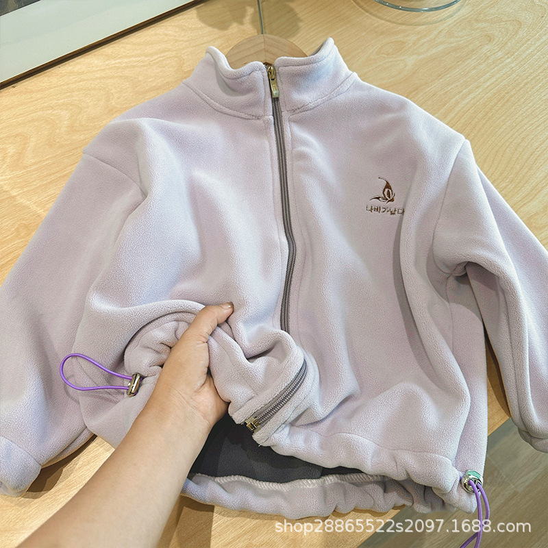 바늘 거리 Olli 벨벳 폭발적인 가을과 겨울 어린이 양면 벨벳 재킷 방풍 따뜻한 기모 지퍼 모든 경기 운동복스토어 가기